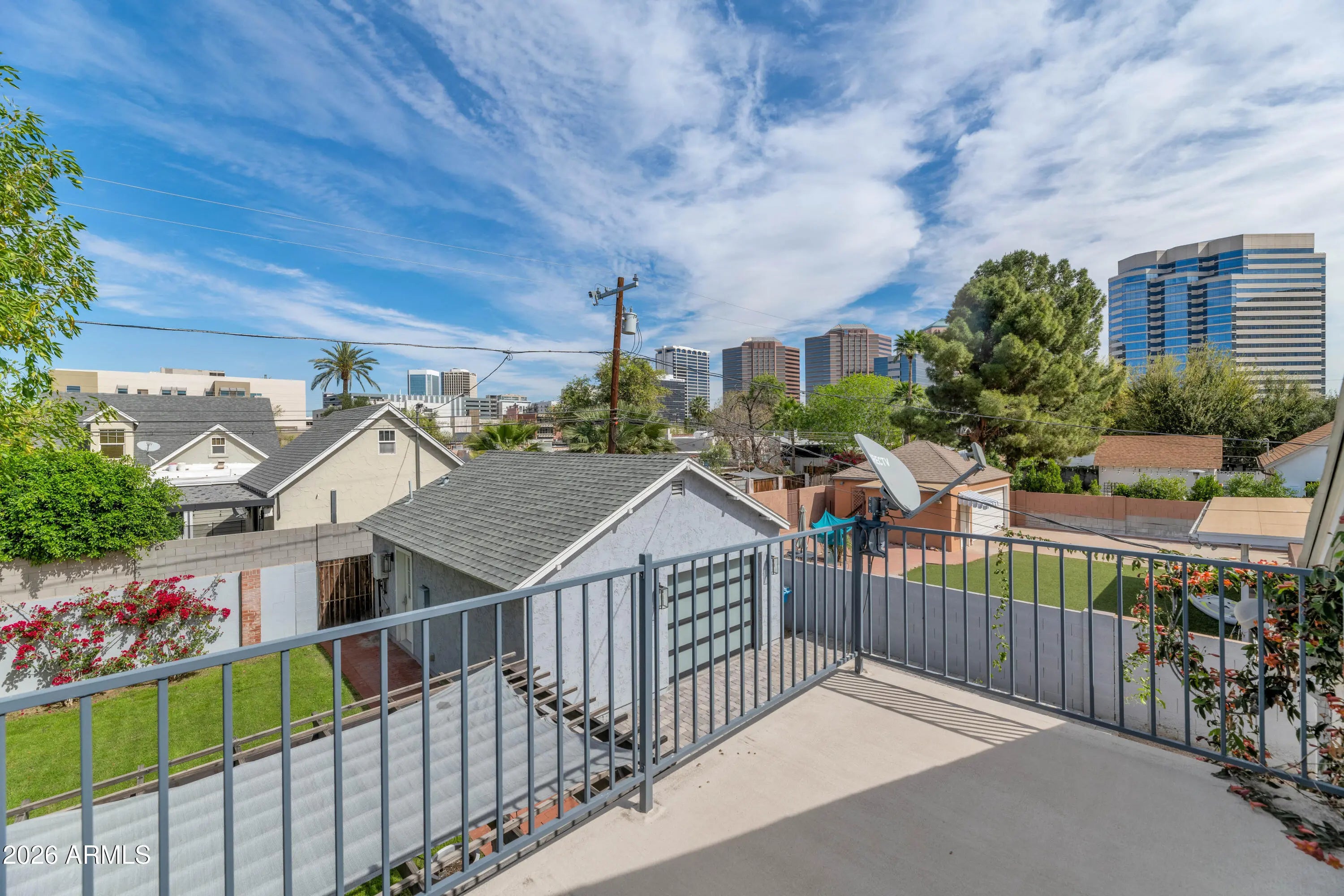Charming historic home in the heart of Midtown Phoenix. Full of character, the home features a wood burning fireplace, an upstairs balcony with city views, and a kitchen with granite countertops, a gas cooktop and oven, and pantry storage. The property offers exceptional flexibility with a finished basement and a detached casita with its own bathroom, ideal for a guest space, home office, gym, or studio. The backyard features grassy areas and a pergola covered patio, creating a great space for outdoor gatherings. Located on a cul-de-sac just minutes from St. Joseph's Hospital, Barrow Neurological Institute, and Phoenix Children's Hospital, with easy access to Midtown and Downtown dining, concerts, sports, entertainment and Sky Harbor Airport.