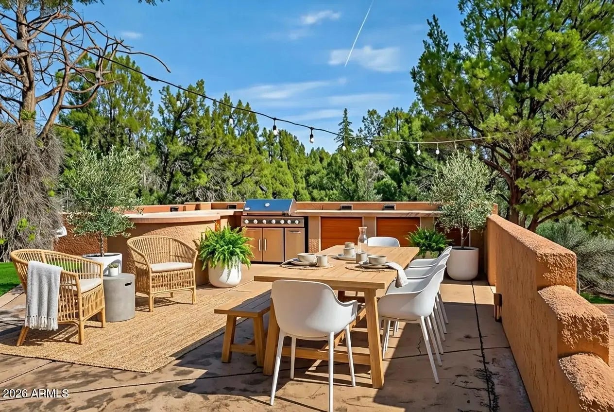 Discover a rare blend of seclusion and versatility on this stunning 1.2-acre estate. Nestled behind a lush canopy of mature trees with no HOA, this property offers a level of privacy and freedom seldom found in the area. Spanning 2,670 sq ft, the residence features 4 bedrooms plus 3 flexible bonus rooms--perfect for a dedicated home office, creative studio, or fitness suite. The intelligent floor plan offers two distinct living levels, each with a private entrance. The upper level shines with a recently renovated chef's kitchen, while the lower level features a convenient kitchenette. Whether used as one expansive residence or divided for multigenerational living or rental potential, the layout is seamless. Outside, enjoy an alfresco lifestyle with a dedicated outdoor kitchen framed by iconic red rock views. This isn't just a home; it's a private retreat designed for your unique vision.