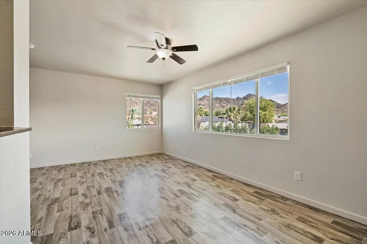 ONE MONTH FREE! Enjoy incredible mountain views from this beautifully updated 2 bedroom, 1 bathroom apartment located in a quiet gated community in the desirable Sunnyslope area. This well maintained community offers a peaceful setting with convenient access to nearby hiking, restaurants, and neighborhood amenities. This unit features laminate flooring throughout, ceiling fans, and an open living and dining area filled with natural light. The modern kitchen includes updated appliances and a butcher block breakfast bar that opens to the main living space. Residents will also enjoy the convenience of in unit laundry. Private patios provide a comfortable outdoor space, many with stunning mountain views that create a serene backdrop right outside your home.