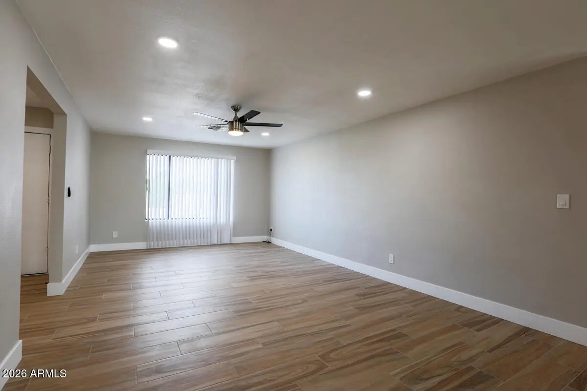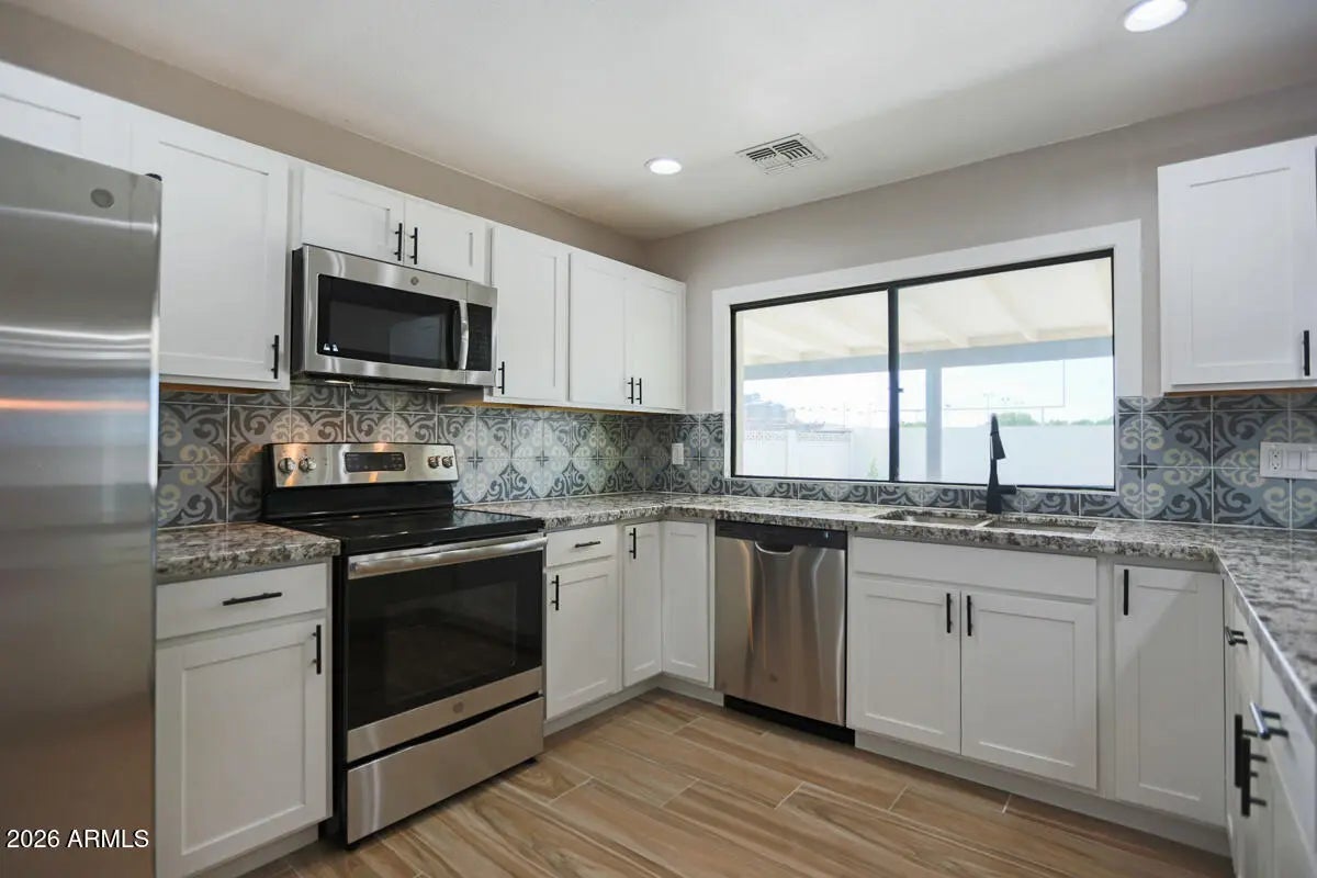 Beautifully renovated 5 bed, 3 bath Tempe home with no detail overlooked! This spacious home features an open floor plan, wood-look tile flooring, and a stunning kitchen with stainless steel appliances, granite countertops, white shaker cabinets, and modern lighting. Bathrooms are fully updated with tile showers and custom vanities, and the primary suite offers dual closets. Upgrades throughout include updated lighting, sinks, cabinet hardware, mirrors, and ceiling fans. Enjoy the massive backyard with a huge covered patio, Pebble Tec pool, and grassy area--perfect for entertaining. Pool and landscaping service included! Conveniently located near ASU, parks, shopping, dining, and freeway access. Rare updated Tempe pool home in a prime location! Lease end date to be 7/25/27.
