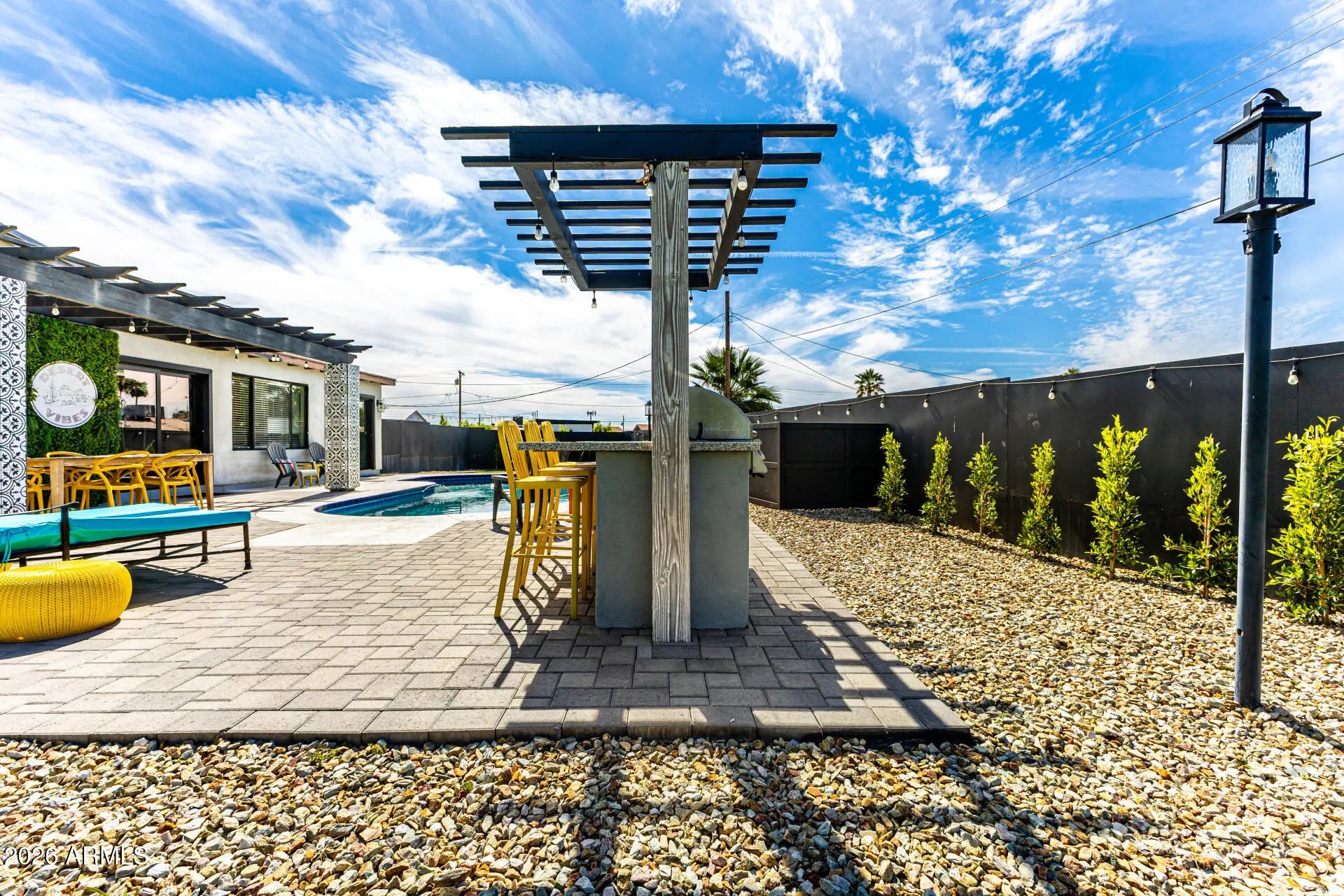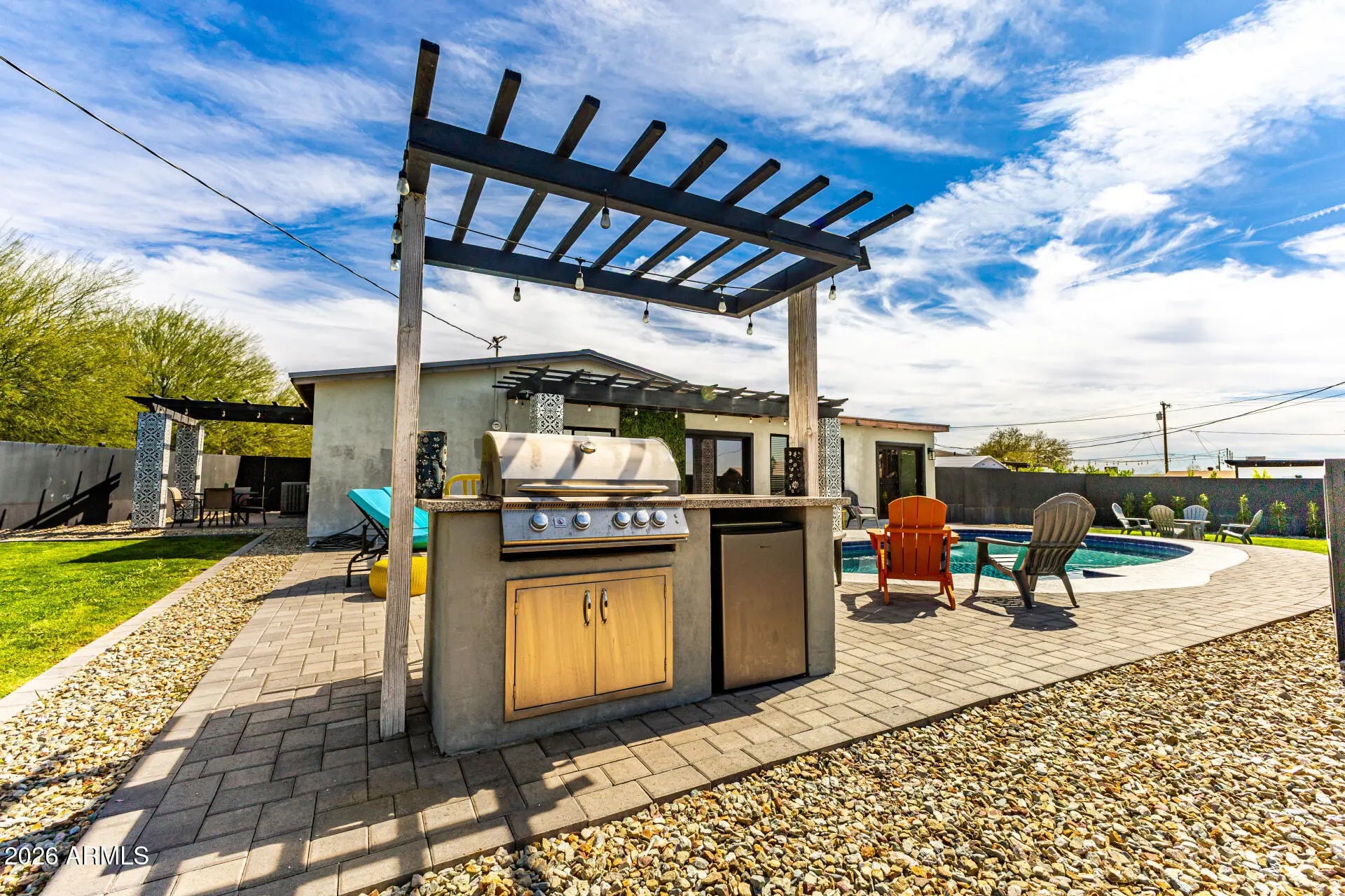 This beautifully updated 4 bedroom, 2 bathroom home sits on an oversized cul-de-sac lot and offers the perfect combination of comfort, functionality, and Scottsdale lifestyle. The open concept floor plan is designed for effortless living and entertaining, featuring oversized tile flooring, custom lighting, and abundant natural light throughout. At the heart of the home is a bright kitchen with quartz countertops and stainless steel appliances flowing seamlessly into the living and dining areas. Dual pane sliders and windows create a natural indoor outdoor connection while overlooking the backyard retreat. The home features four spacious bedrooms, each with views of the sparkling pebble-tech diving pool, including a private primary suite complete with double vanities and a thoughtfully designed layout. Step outside to a backyard designed for Arizona living, complete with a built-in BBQ and bar, manicured lawn space, and inviting pool area perfect for relaxing or entertaining. Additional highlights include a standing seam metal roof with a lifetime warranty, custom designed driveway and epoxy garage with remote access and hexagon lighting. Currently operated as a successful vacation rental, the home also offers excellent potential for investors or those seeking a second home opportunity. Conveniently located with quick access to the Loop 101 and Loop 202, the home is just minutes from Scottsdale Fashion Square, Tempe Marketplace, Mesa Riverview, and the dining, entertainment, and nightlife of Old Town Scottsdale. It is also a short walk to the Scottsdale Greenbelt, offering miles of walking and biking paths, parks, and outdoor spaces perfect for family activities and recreation. Baseball fans will appreciate being close to Sloan Park, home of the Chicago Cubs spring training, and Scottsdale Stadium, where the San Francisco Giants play. This property delivers the ideal blend of location, lifestyle, and investment potential in one of Scottsdale's most convenient areas.