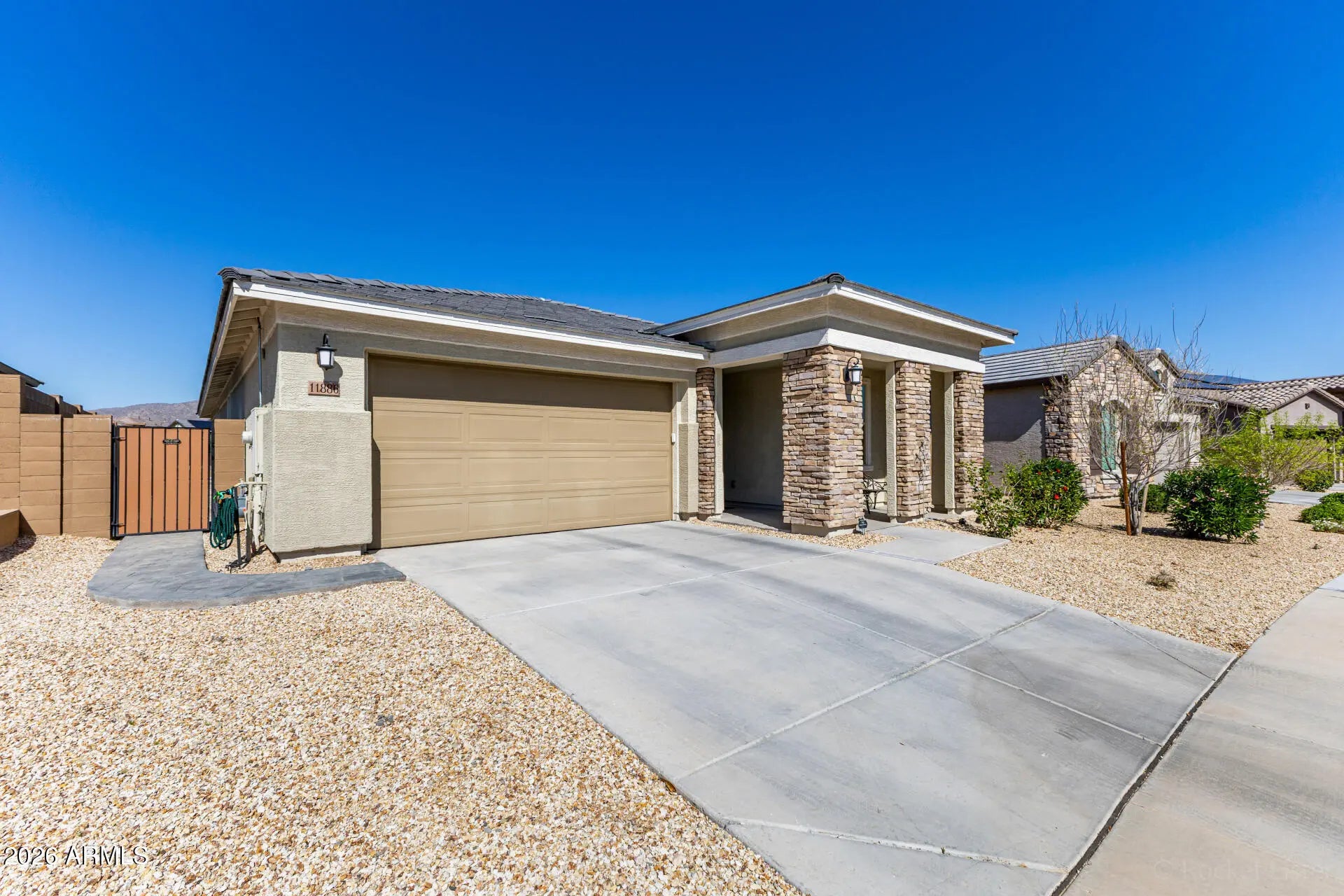 Discover this gorgeous single-story home in desirable Zanjero Trails! Featuring 4 bedrooms, 3 bathrooms, and a 2-car garage, this home offers an open floor plan ideal for entertaining and everyday living. Inside you'll find wood-look flooring, contemporary lighting, abundant natural light, and neutral tones throughout. The kitchen features shaker cabinets, tile backsplash, quartz countertops, stainless steel appliances, a walk-in pantry, and a large island perfect for casual dining. The spacious primary suite includes a walk-in closet and a bathroom with double sinks. Enjoy the backyard with two covered patios, low-maintenance artificial turf, and an above-ground spa included with the home--perfect for relaxing or entertaining.