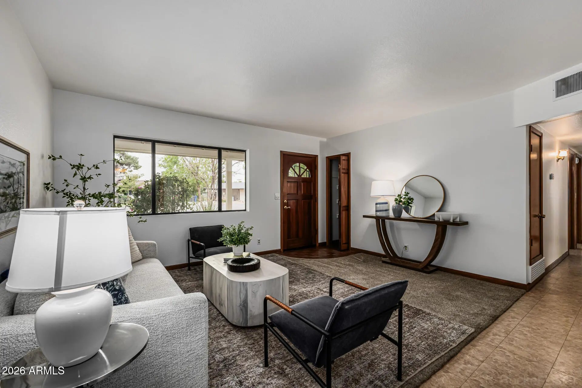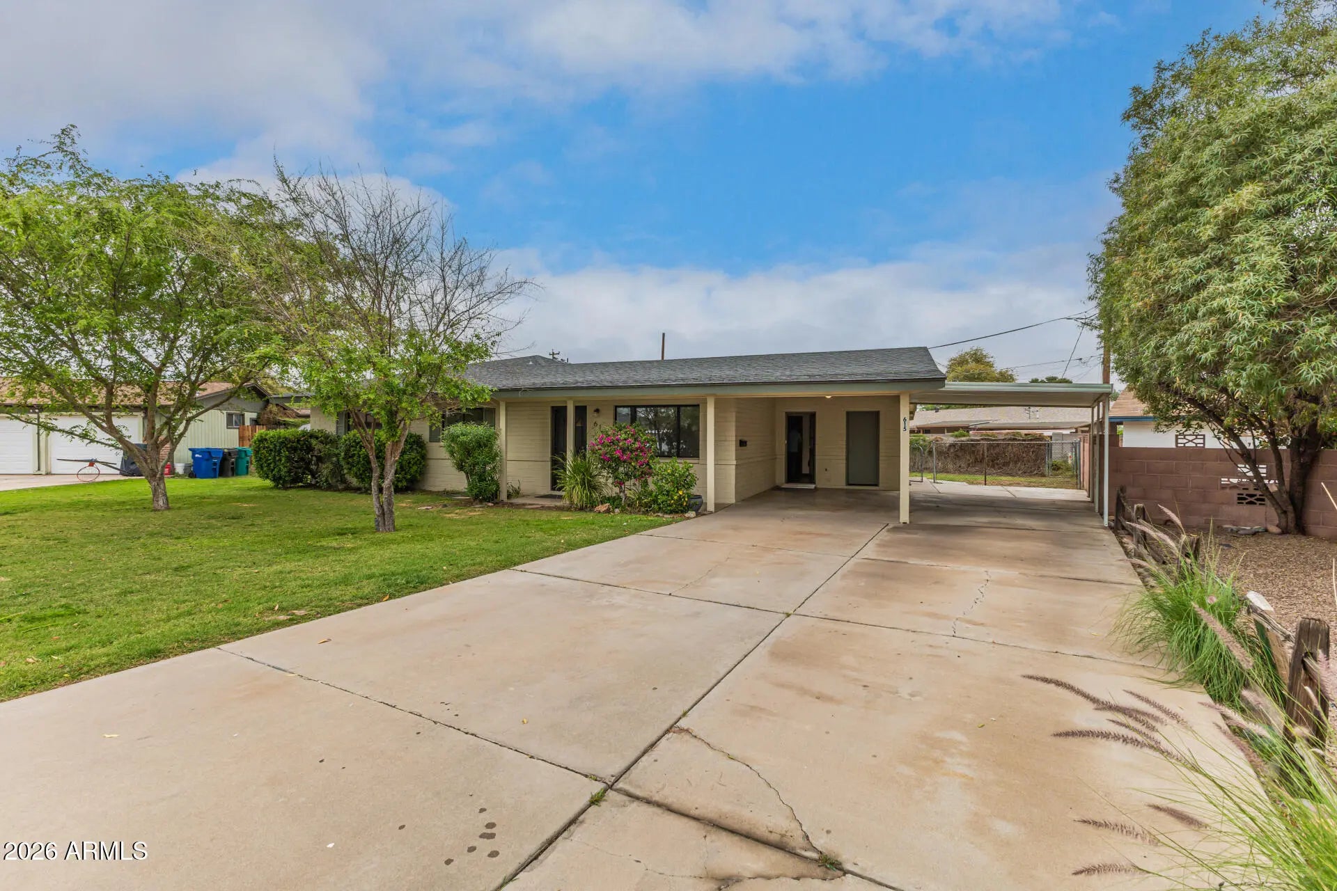 Discover this charming single-level home at 615 N. Freestone Circle in Mesa, AZ 85203, perfect for families seeking a versatile property in a quiet, desirable neighborhood near popular parks and schools. This flexible layout can function as a spacious 5-bedroom, 3-bathroom home or as a 3-bedroom, 2-bathroom main house with a separate 2-bedroom, 1-bathroom apartment in the back--ideal for multi-generational living, guests, or a rental income opportunity. The bonus apartment features its own separate entrance for added privacy and convenience. Nestled in the desirable Freestone Terrace community, this property offers easy proximity to Pioneer Park with its playgrounds, splash pad, and picnic areas, as well as Riverview Park featuring climbing towers, zip lines, and urban lakes--all within a 10-minute drive in your car. Boasting a spacious 0.26-acre lot with privacy views and no rear neighbors, the backyard is a private oasis complete with a fenced yard, low-maintenance landscaping, covered patio, and room for a potential pool or outdoor kitchen--ideal for outdoor living and entertaining. Recent upgrades include a new roof installed in 2015, updated HVAC system from 2020, and energy-efficient windows, ensuring low maintenance and comfort year-round. Specifics like the east-facing kitchen capturing sunrise views add to the appeal, making this 2,066 sq ft gem with 5 bedrooms and 3 baths (built in 1960) a must-see for buyers seeking feature-rich homes near parks and schools in Mesa.