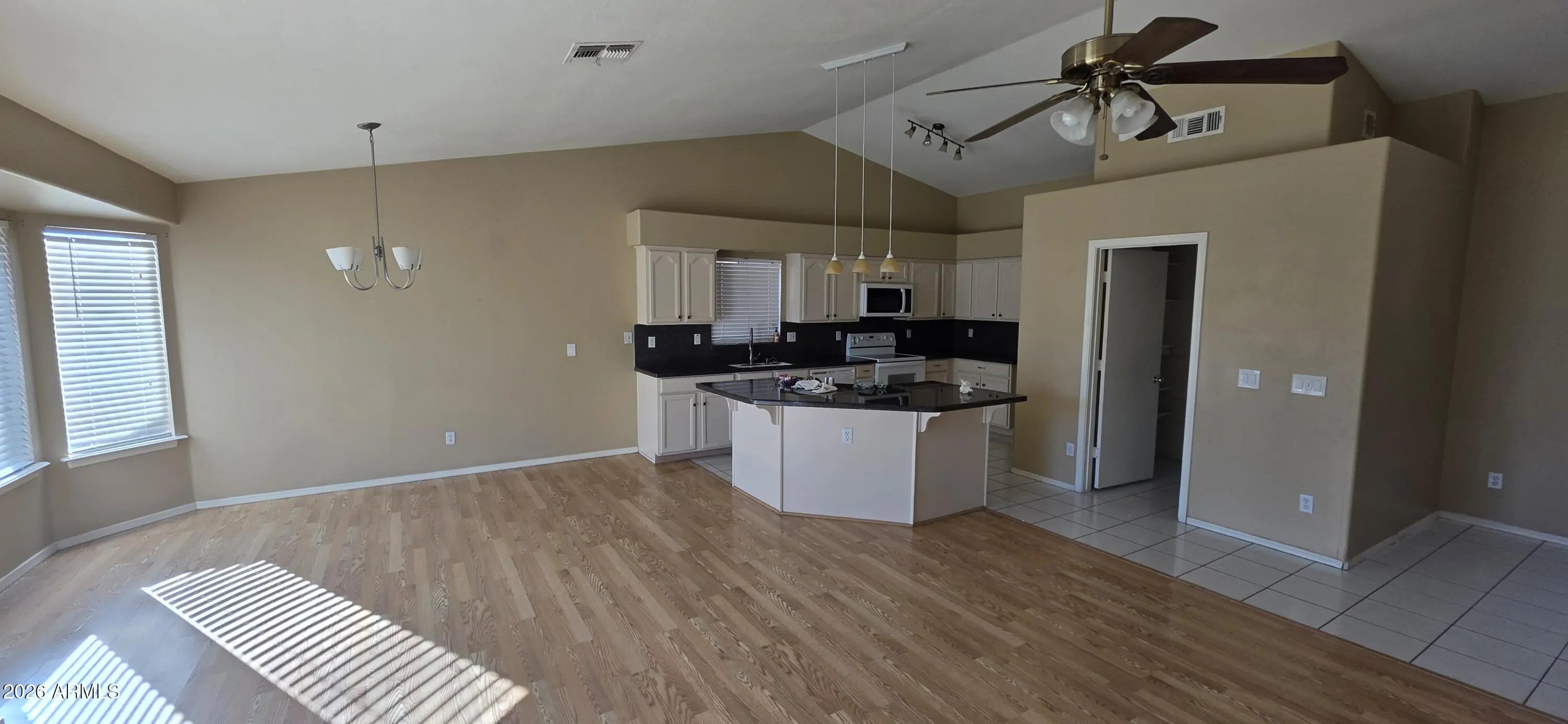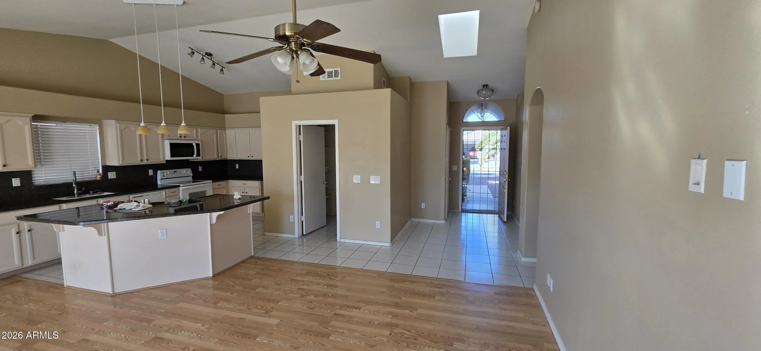 Sought after area - quiet, clean Peoria location in the heart of the Northwest Valley, close to major shopping, dining, sporting venues, and great schools. As you walk into this open, airy home that feels much larger than the sf. Immediately you'll notice the soaring vaulted ceiling, fireplace and open floorplan. Kitchen is open to all living areas, and features a huge island and granite counters. Sliding glass doors lead to nice sized backyard with a mix of grass and desert landscape. Home will be leased with all appliances (Refrigerator and Washer/Dryer to be installed after photos). Reach out now to see if this great home is still available!