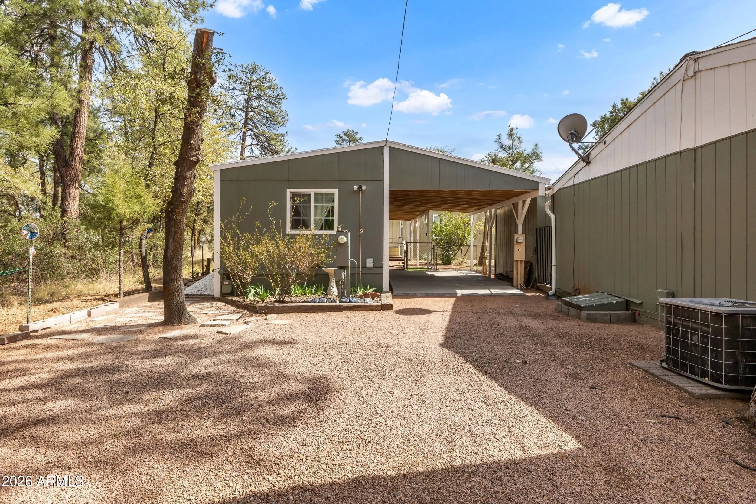 Rare three unit opportunity in Payson ideal for a buyer seeking to live in one home while generating income from the others to offset ownership expenses. Situated on a 17,000 square foot lot at approximately 5,000 feet elevation, the property includes three detached manufactured homes on a quiet cul de sac surrounded by mature trees. Unit A: 1 bd, 1 ba with newer HVAC, LVP flooring, stainless appliances, W/D, shed, and covered carport. Unit B: 3 bd, 2 ba with remodeled primary bath, laminate floors, dual pane windows, central heat/air, mini splits, W/D, yard, shed, and shared garage. Unit C: 3 bd, 2 ba with vaulted ceilings, remodeled primary bath, central heat/air, mini splits, tankless water heater, carport, and shared garage. Conveniently located within walking distance to restaurants +