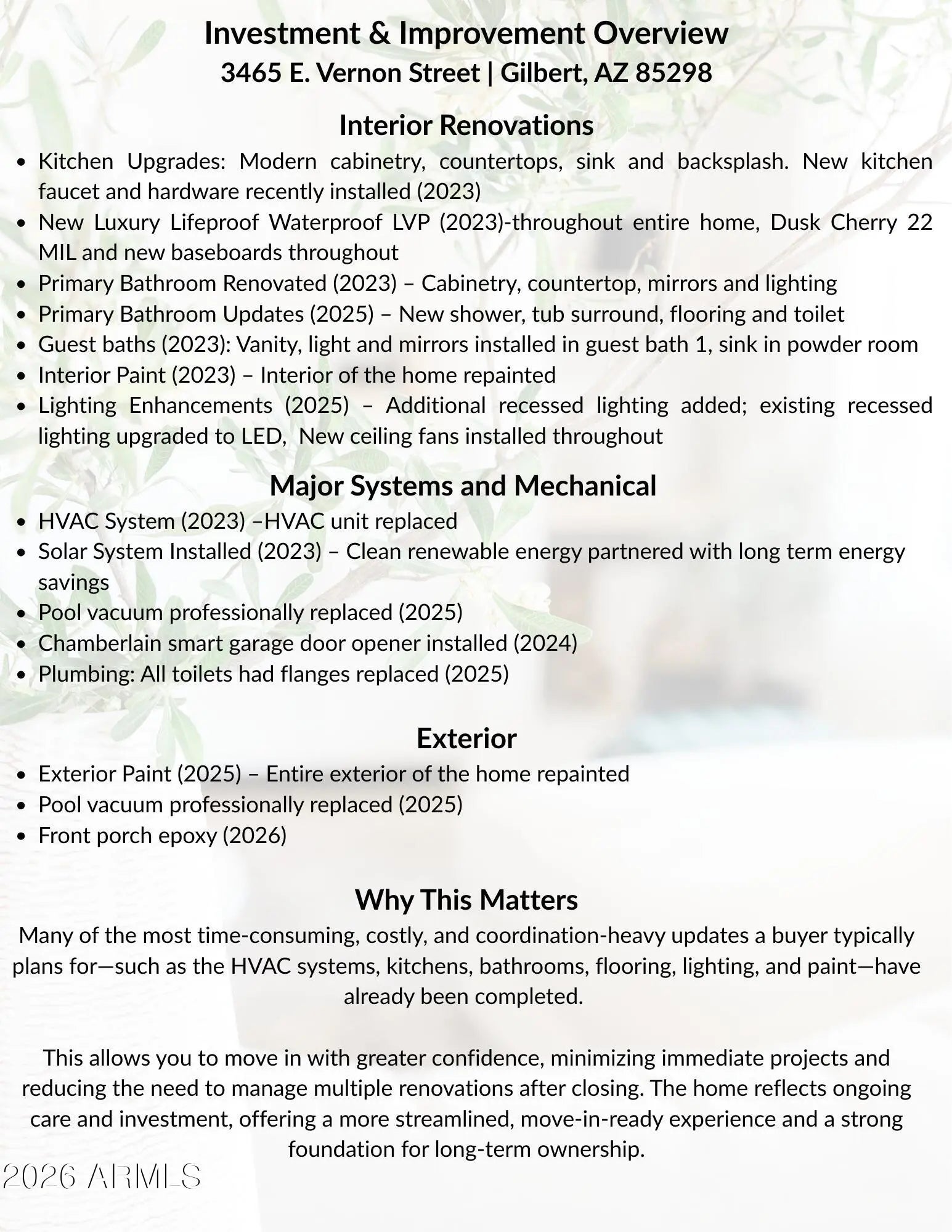 A rare opportunity in the coveted Seville Golf & Country Club community--this stunning fully renovated 6-bedroom home blends modern design with exceptional livability. The interior has been completely reimagined with curated finishes, abundant natural light, and a bright spacious kitchen featuring highly upgraded countertops. Spa-inspired baths, luxury waterproof flooring throughout, and designer lighting including West Elm fixtures create a polished yet welcoming feel. Upstairs, a wide flexible loft and landing offer the perfect space for a study area, homeschool setup, or creative workspace. Outside, enjoy a private backyard with a sparkling pool and serene courtyard for relaxing mornings or evening conversations. Nearby Schools Choices are Endless: The area is served by highly rated school options or this home also offers the ideal home school space. Seville: The Seville community offers nearby parks, walking paths, and a welcoming neighborhood environment that residents appreciate. Residents enjoy access to optional memberships at the Seville Golf & Country Club, where championship golf, a beautiful clubhouse overlooking the course, fitness facilities, tennis, pickleball, resort-style pools, and a full water park create a vibrant community atmosphere. The setting is framed by expansive desert skies and distant mountain views that make Arizona evenings especially memorable. Experience Gilbert: Just minutes away, Gilbert continues to earn national recognition for its quality of life. From the lively restaurants and events in Downtown Gilbert to the shopping, dining, and entertainment at San Tan Village, the area offers an ideal balance of convenience, recreation, and community connection. Renovated homes with six true bedrooms are exceptionally rare in the area. Opportunities like this--combining generous space, thoughtful updates, and the lifestyle offered--do not come along often.