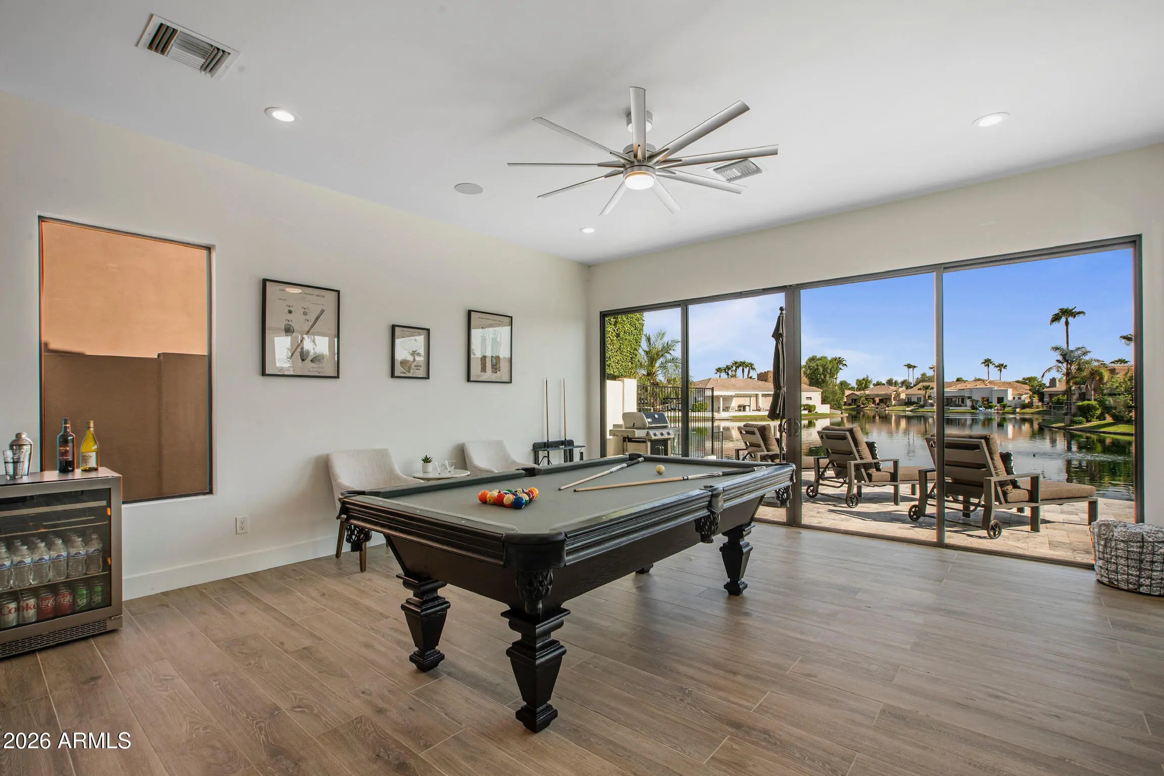 Enjoy lakefront living at its best in this gorgeous home in the highly sought-after lake community of Ocotillo East. From the kitchen to the baths to the landscaping, no expense was spared in updating this home. Large windows provide lake views from many of the rooms. The kitchen is sure to delight any chef with it's plethora of cabinets, quartz countertops, large island with seating, and high-end appliances including a built-in fridge & stove with induction cooktop. The great room provides ample space for relaxing with a cozy fireplace. The master suite boasts a walk-in closet, double vanities, separate deep soaking tub & large walk-in shower. Step outside and take a dip in the negative edge heated pool and enjoy a panoramic view of the lake. Located in a great community with A+ Chandle schools and close to freeways, shopping and entertainment venues. This property has served as a fully functioning 5 star VRBO since 2019 with successful property manager in place. All furnishings are available on a separate bill of sale.
