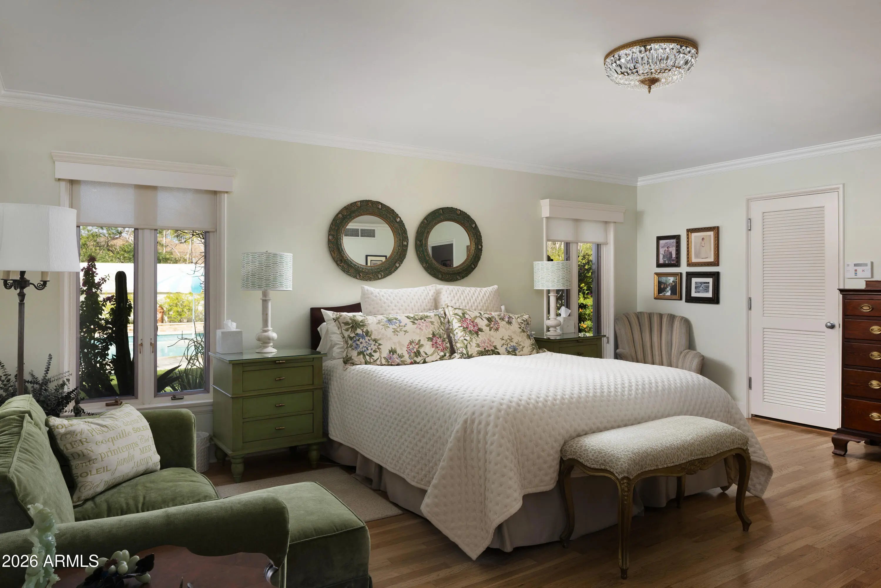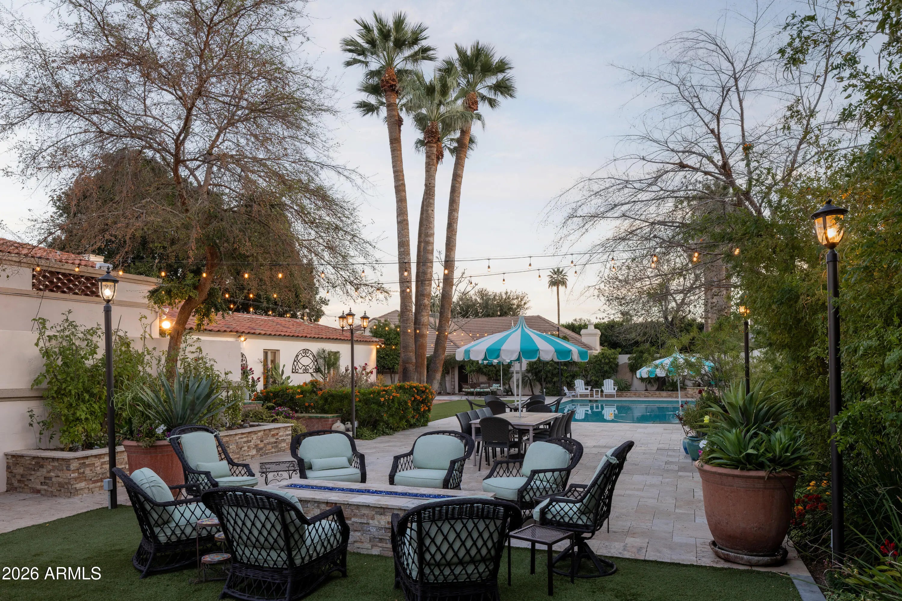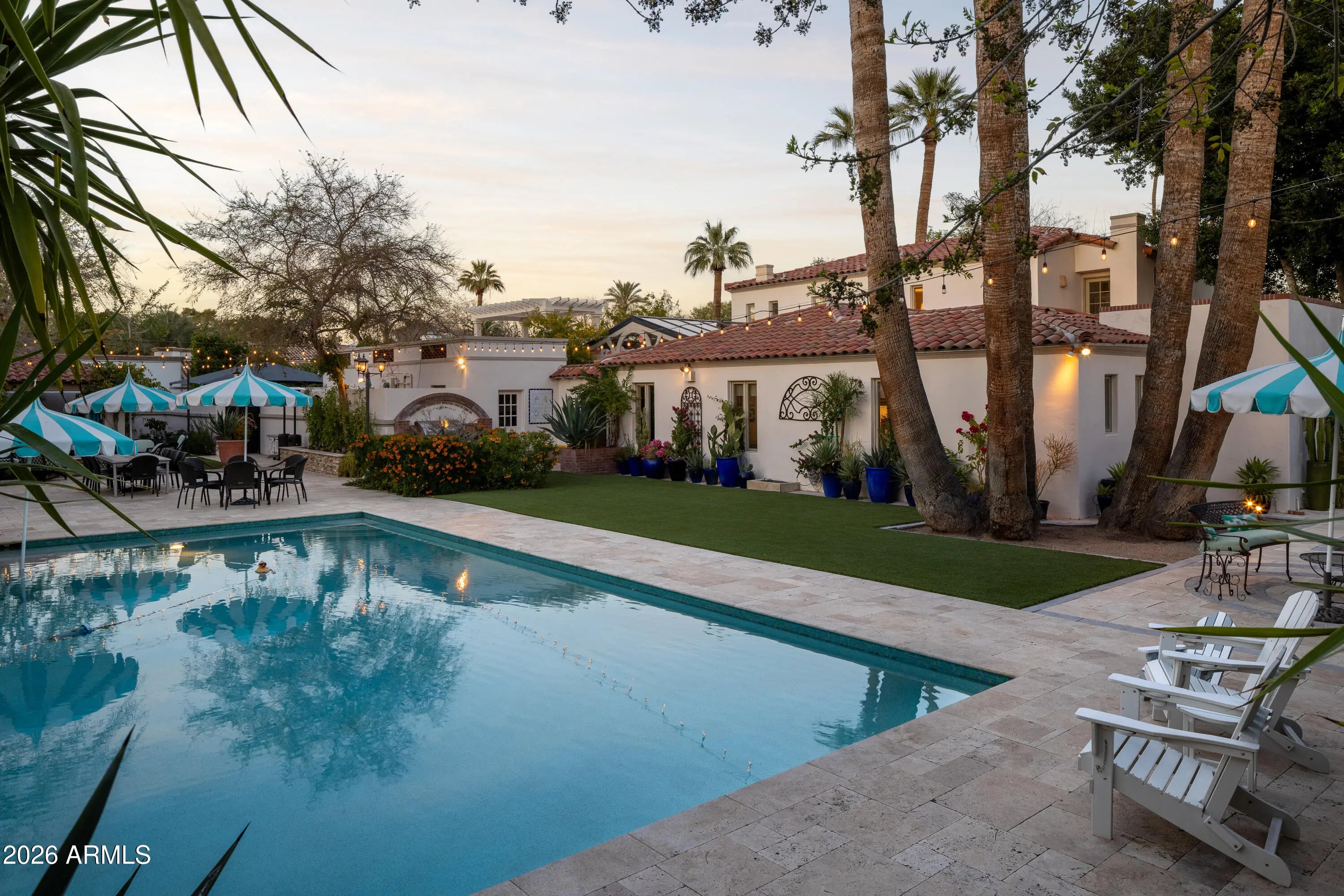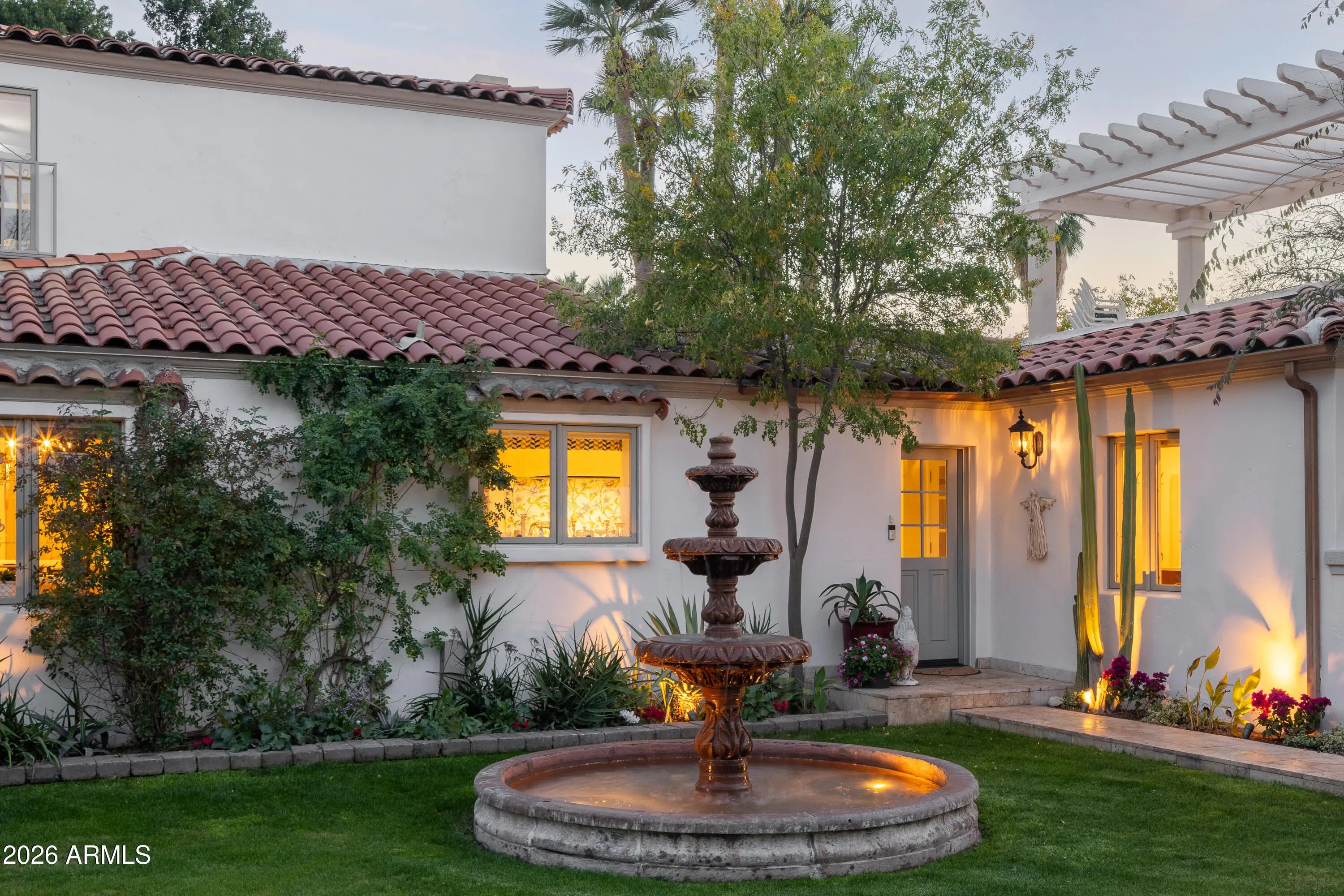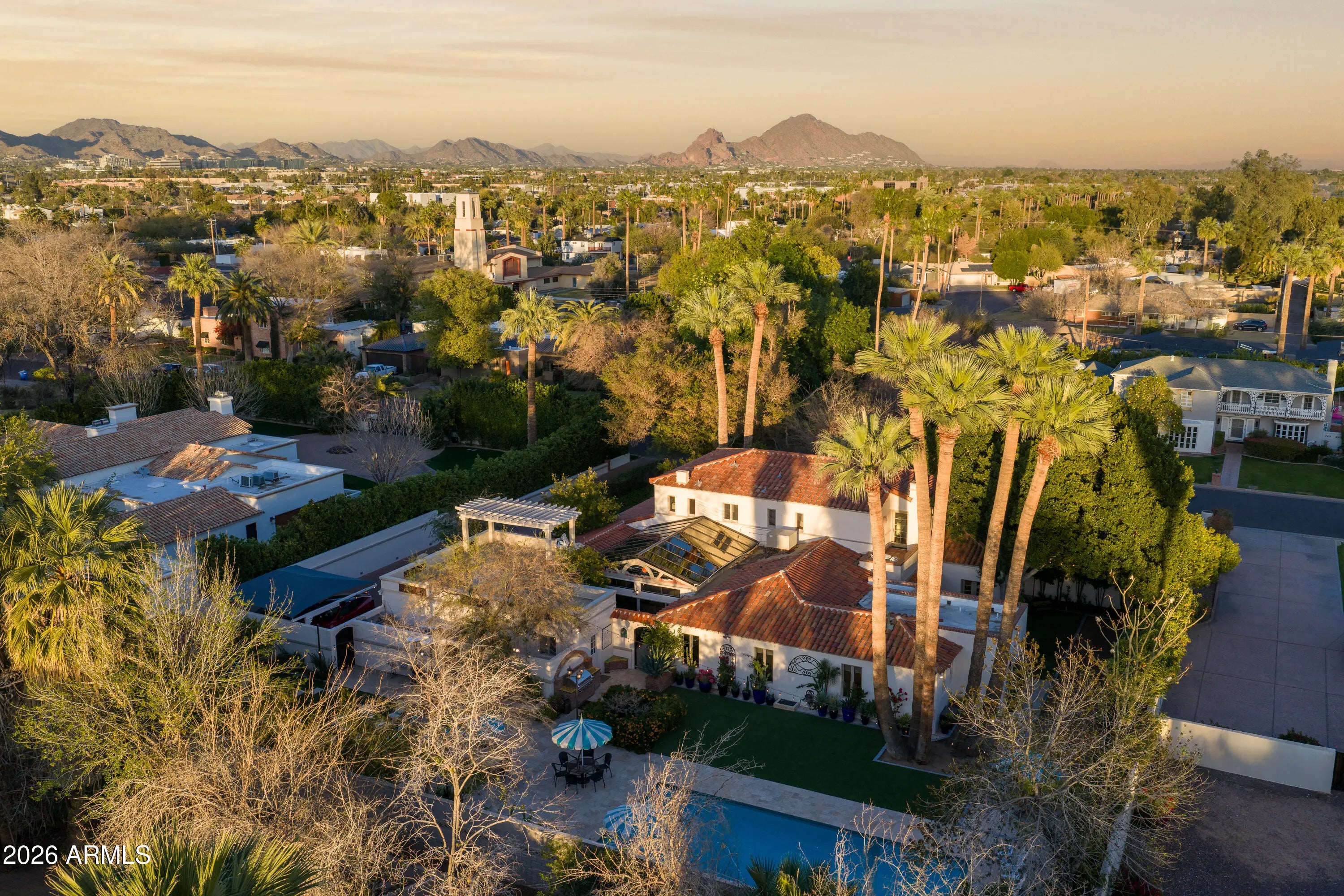 Located in the gated enclave adjacent to the Phoenix Country Club, Manor Drive has long been synonymous with gracious estates. This home, designed by acclaimed architect Ed Varney and built in the 1930s, remains as timeless today as it was nearly a century ago. The well-designed floor plan features a spacious, beautifully remodeled primary suite on the main floor, along with a secondary en-suite bedroom. At the heart of the home is a remodeled kitchen equipped with high-end appliances, custom cabinetry, a walnut-topped island, and abundant natural light. The main level also includes a formal dining room, a living room, and a cozy den. For entertaining, the conservatory offers a unique and elegant space highlighted by a glass ceiling.The upper level consists of two large bedrooms joined by a spacious Jack and Jill bathroom. The resort-style grounds feature a large pool, gazebo, artificial turf, bocce ball court, multiple fountains, and a fire pit, all surrounded by lush landscaping. A large laundry room, potting room, basement, and two-car garage complete this exceptional residence.