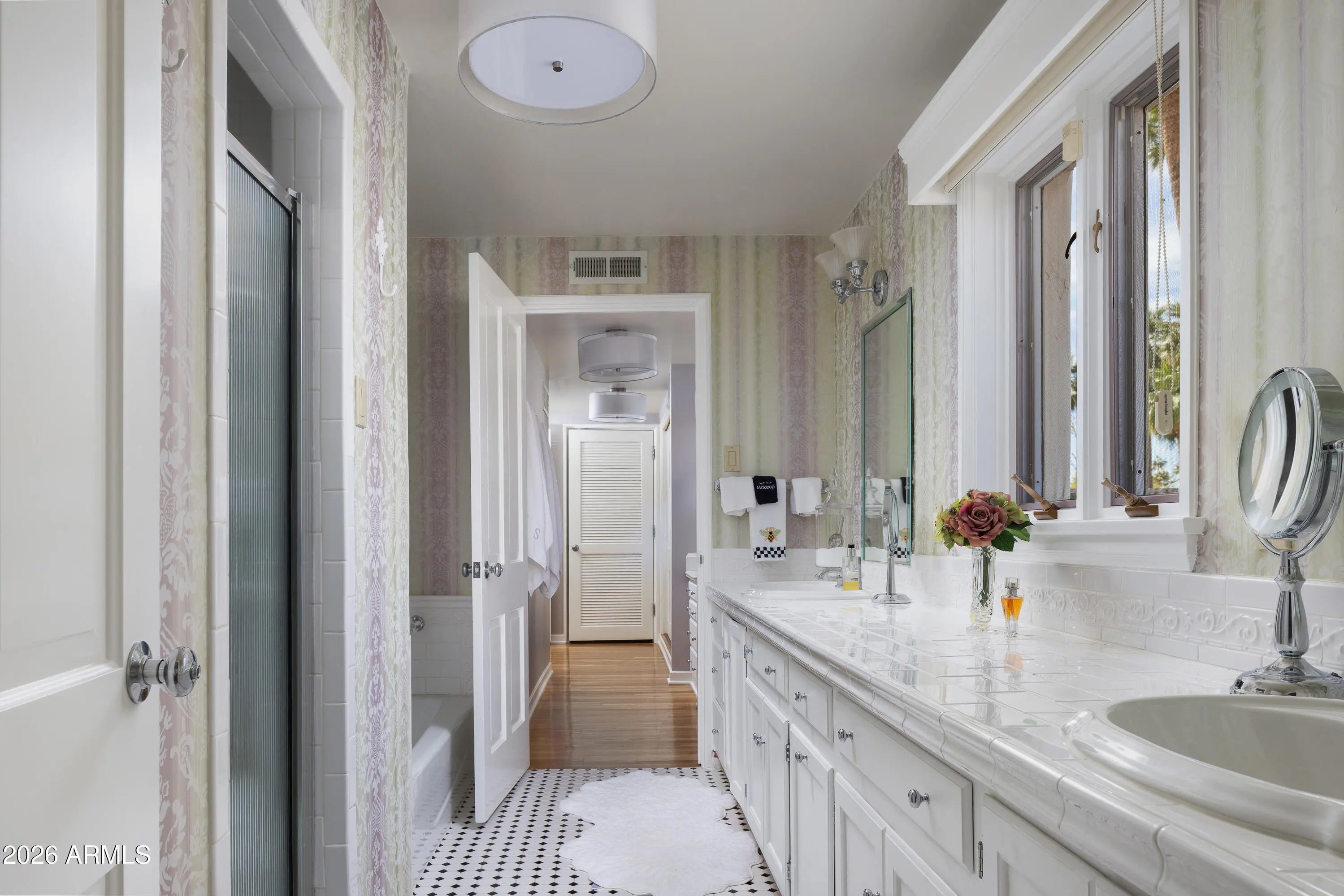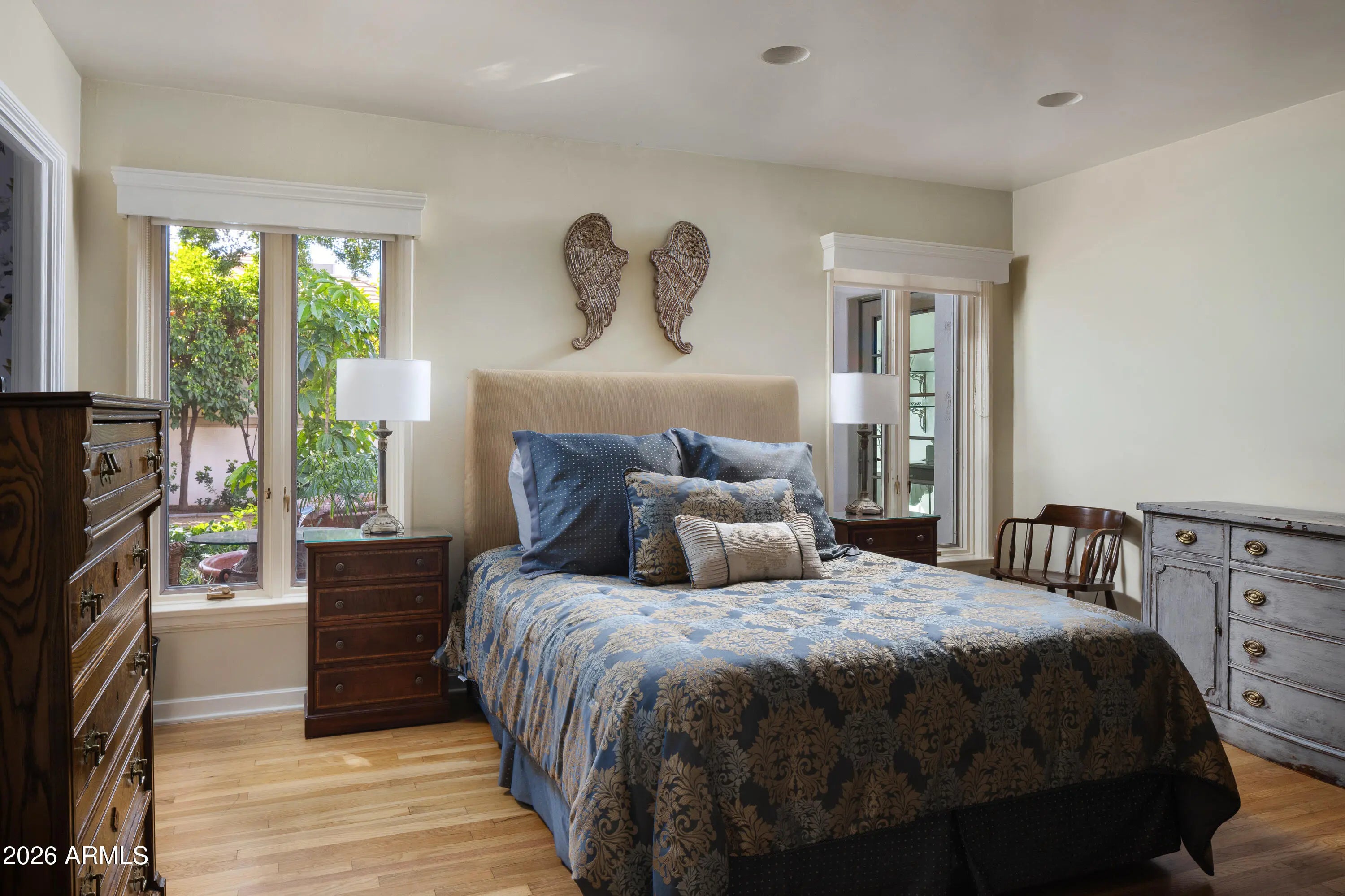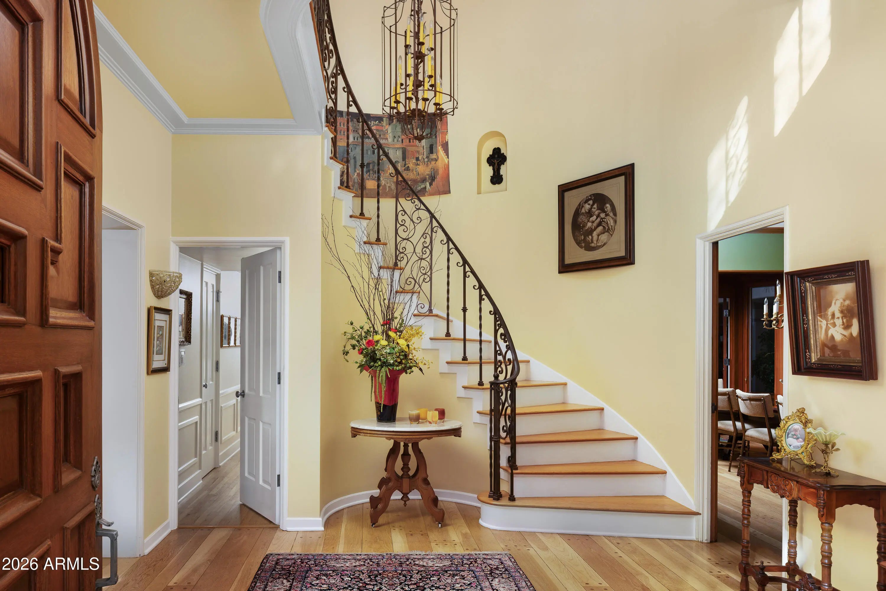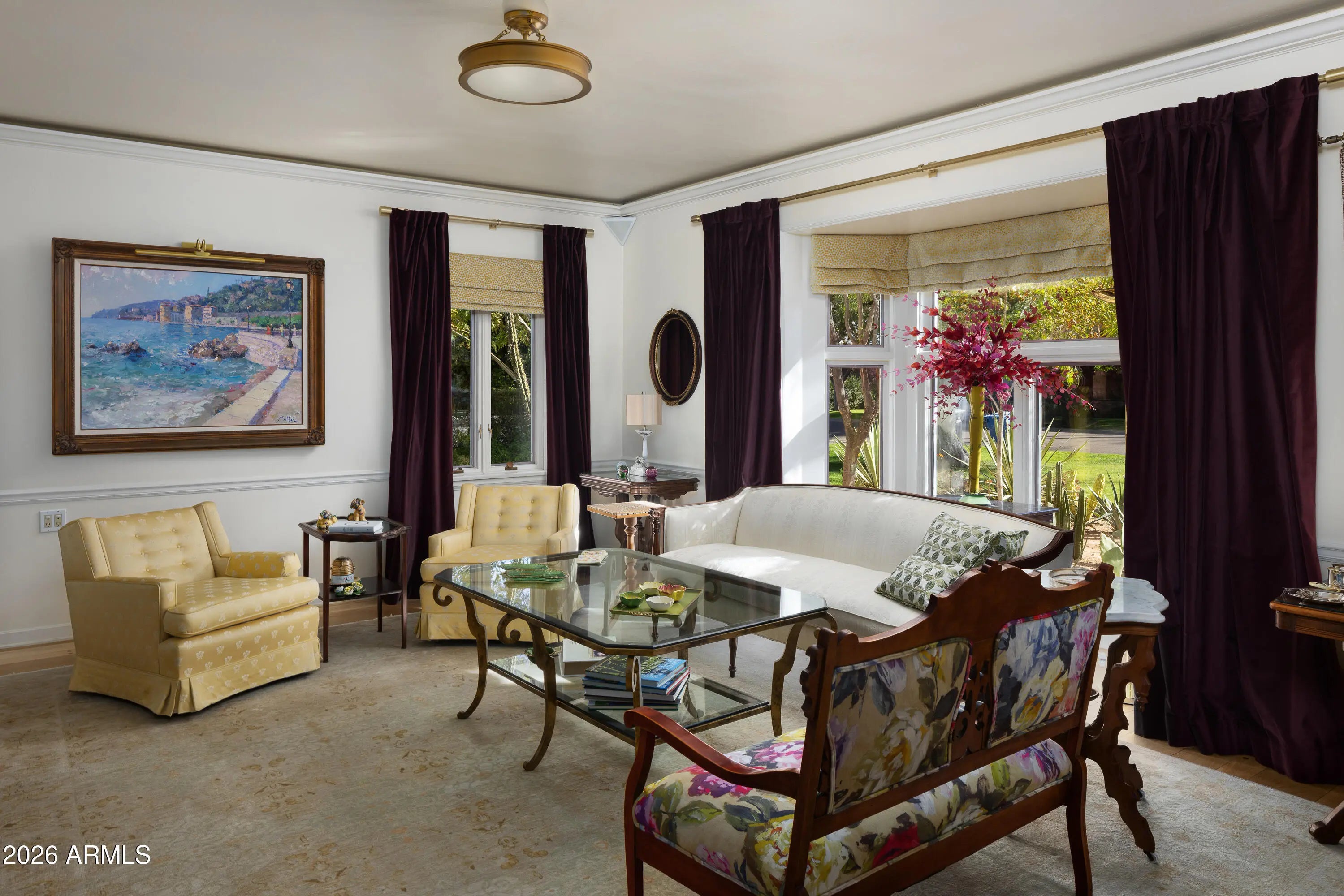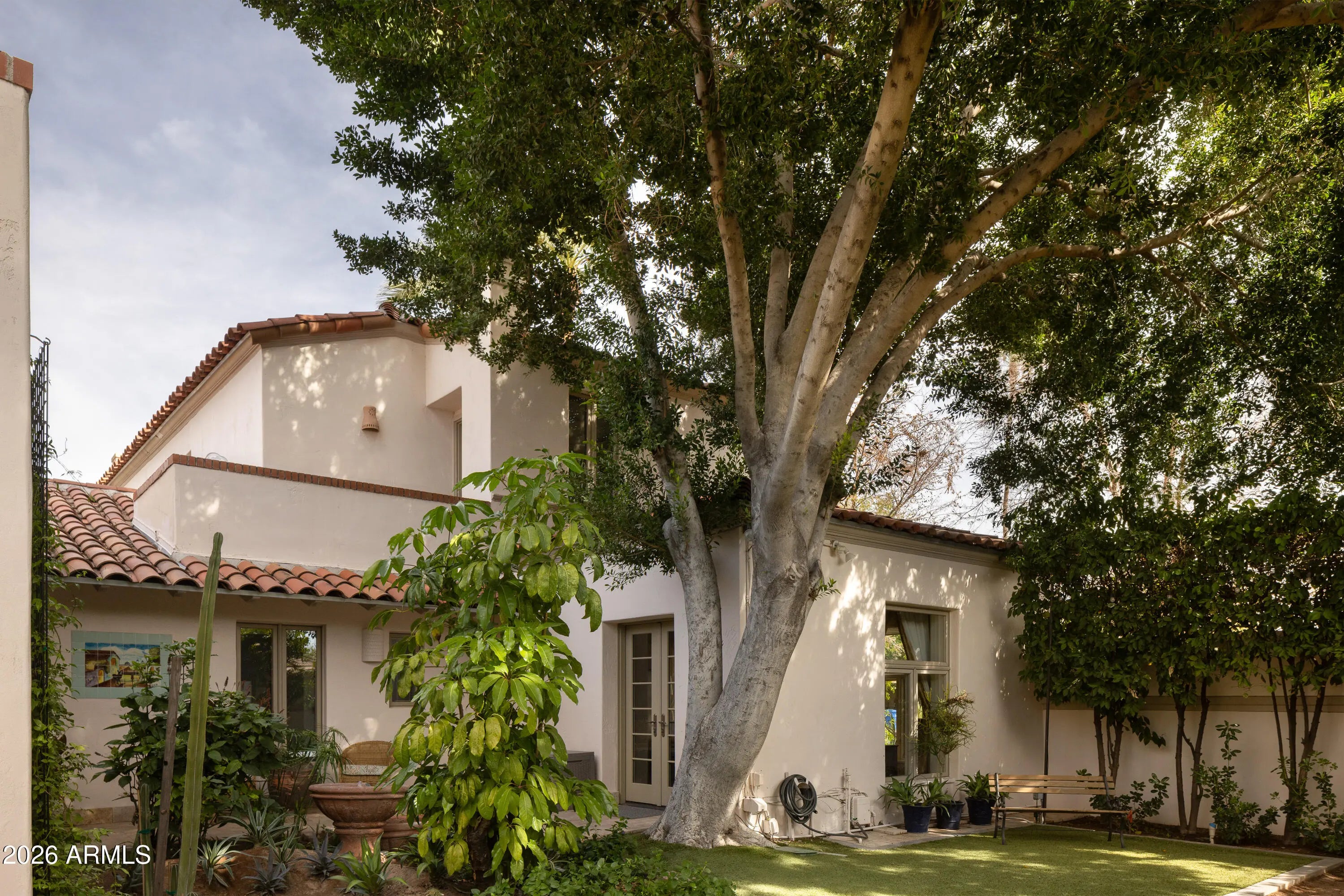 Located in the gated enclave adjacent to the Phoenix Country Club, Manor Drive has long been synonymous with gracious estates. This home, designed by acclaimed architect Ed Varney and built in the 1930s, remains as timeless today as it was nearly a century ago. The well-designed floor plan features a spacious, beautifully remodeled primary suite on the main floor, along with a secondary en-suite bedroom. At the heart of the home is a remodeled kitchen equipped with high-end appliances, custom cabinetry, a walnut-topped island, and abundant natural light. The main level also includes a formal dining room, a living room, and a cozy den. For entertaining, the conservatory offers a unique and elegant space highlighted by a glass ceiling.The upper level consists of two large bedrooms joined by a spacious Jack and Jill bathroom. The resort-style grounds feature a large pool, gazebo, artificial turf, bocce ball court, multiple fountains, and a fire pit, all surrounded by lush landscaping. A large laundry room, potting room, basement, and two-car garage complete this exceptional residence.