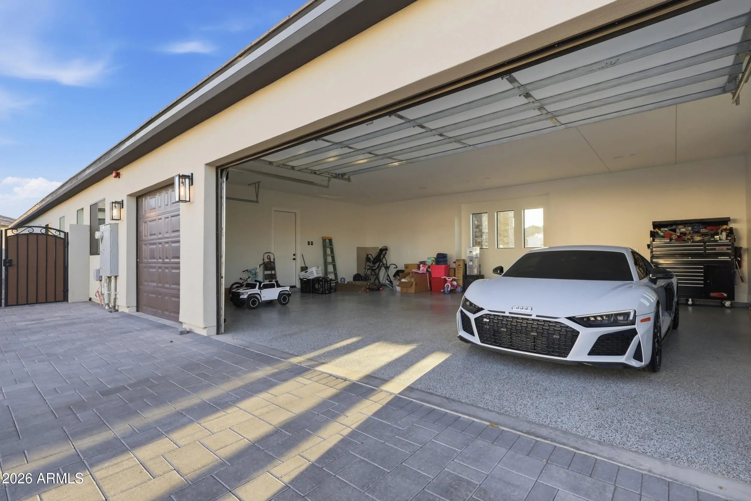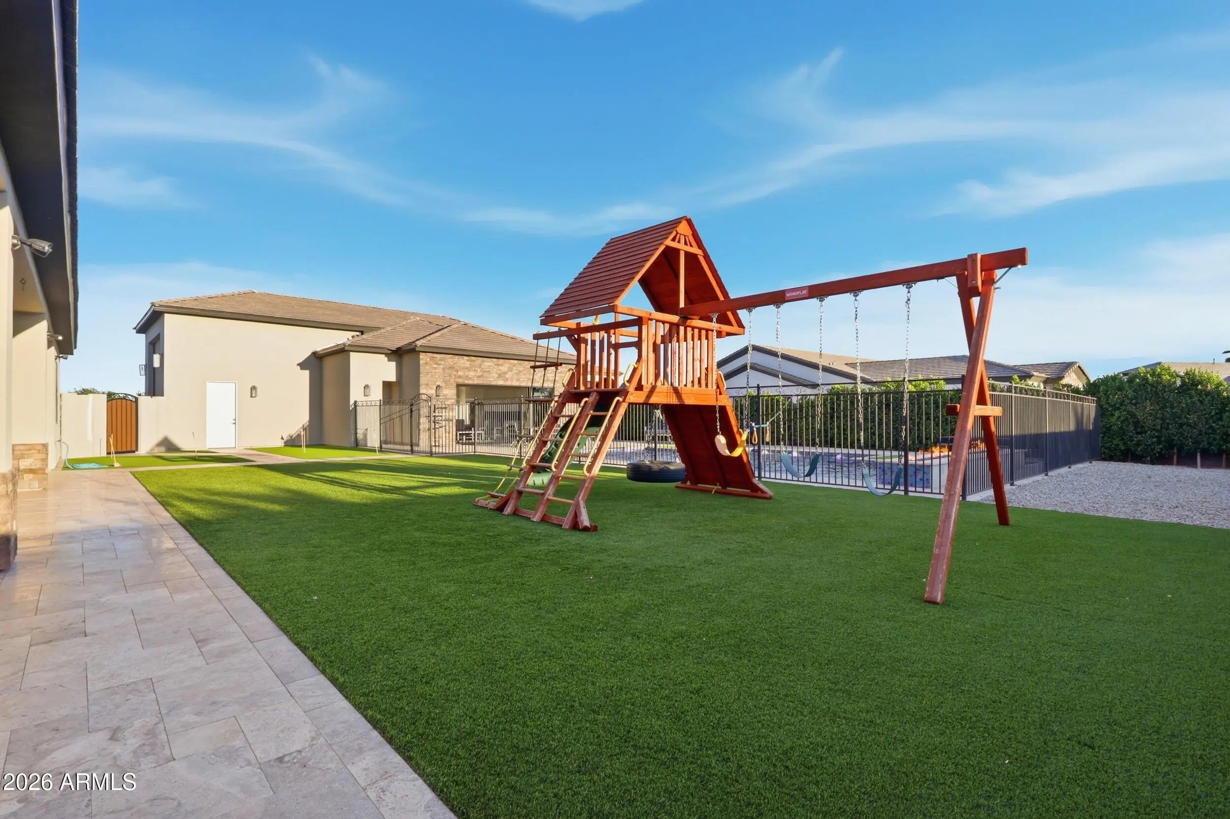 Tucked inside a gated Litchfield Park community, this custom home brings space, quality, and a lifestyle. Thoughtfully designed with a split floor plan, open great room, and a chef's kitchen with an oversized island. The primary suite feels like a private retreat with a spa-style bath, plus a flexible bonus space for an office or gym. Step outside to a resort-style backyard with a pool that can be heated or chilled, turf, covered patio, and pool house. Parking for 10+ cars plus a 22x50 RV garage with 16 ft ceilings. Built with 6'' spray foam walls and 10'' ceilings. Minutes from beautiful golf courses and hikes. As well as tons of shopping, dining, and close freeway access!