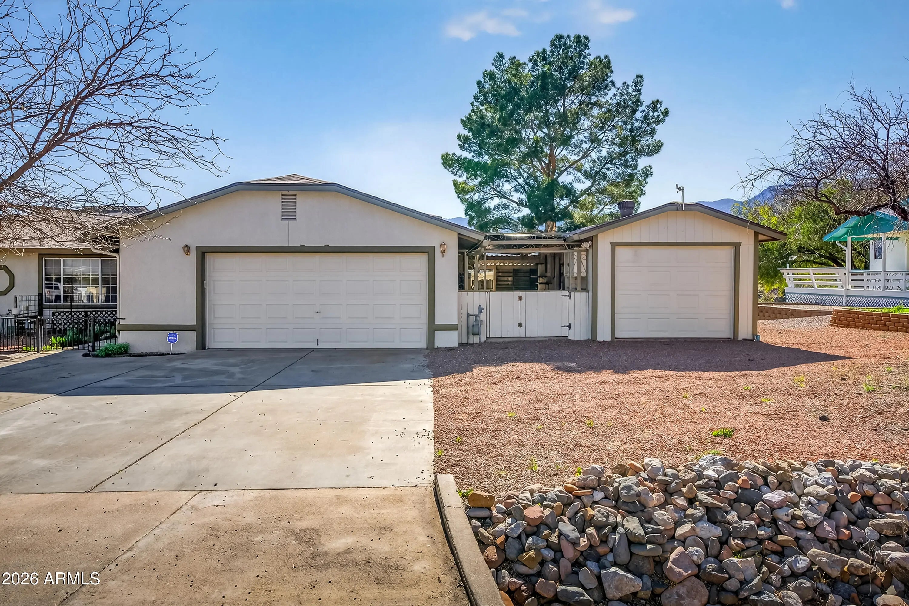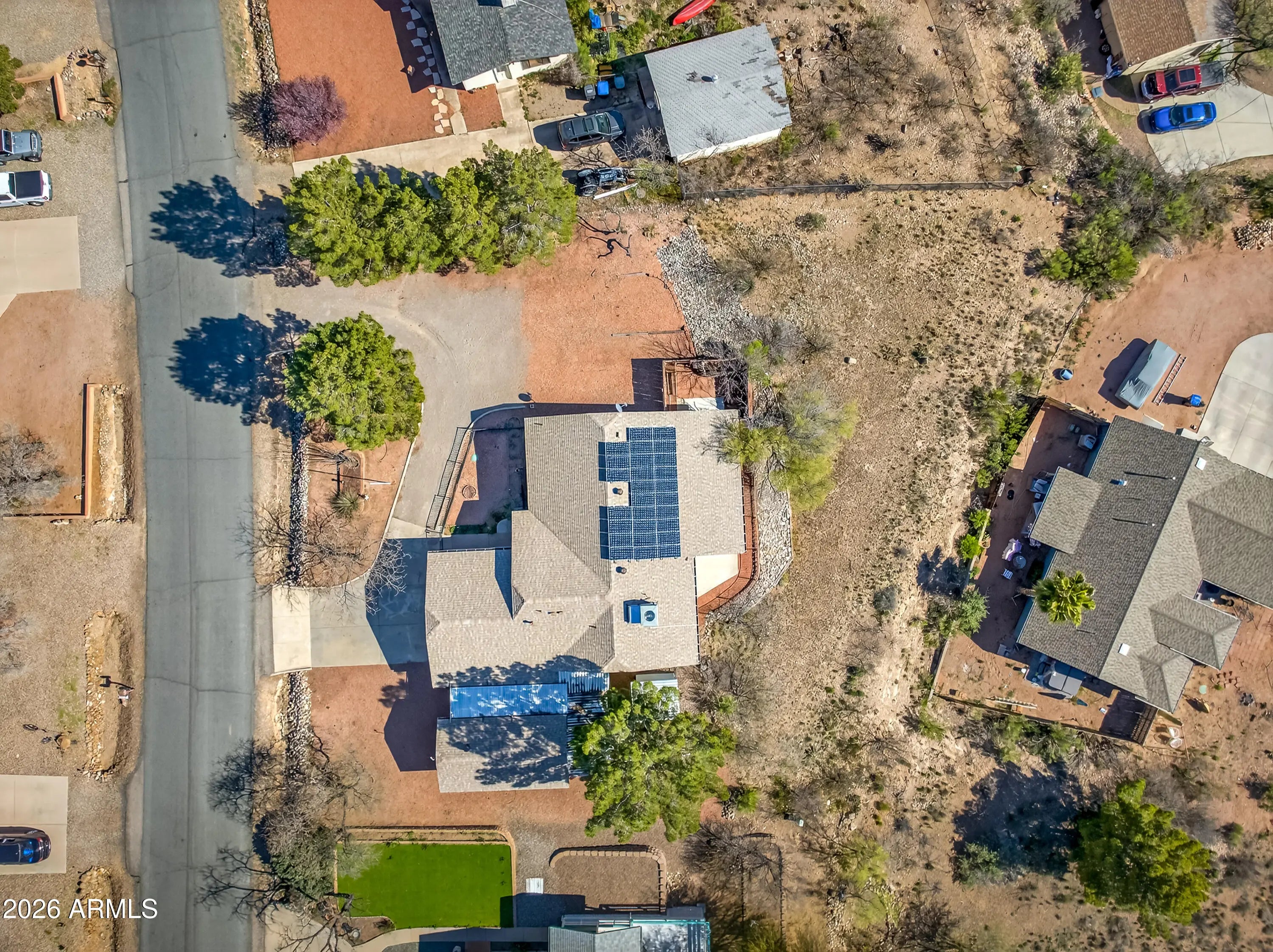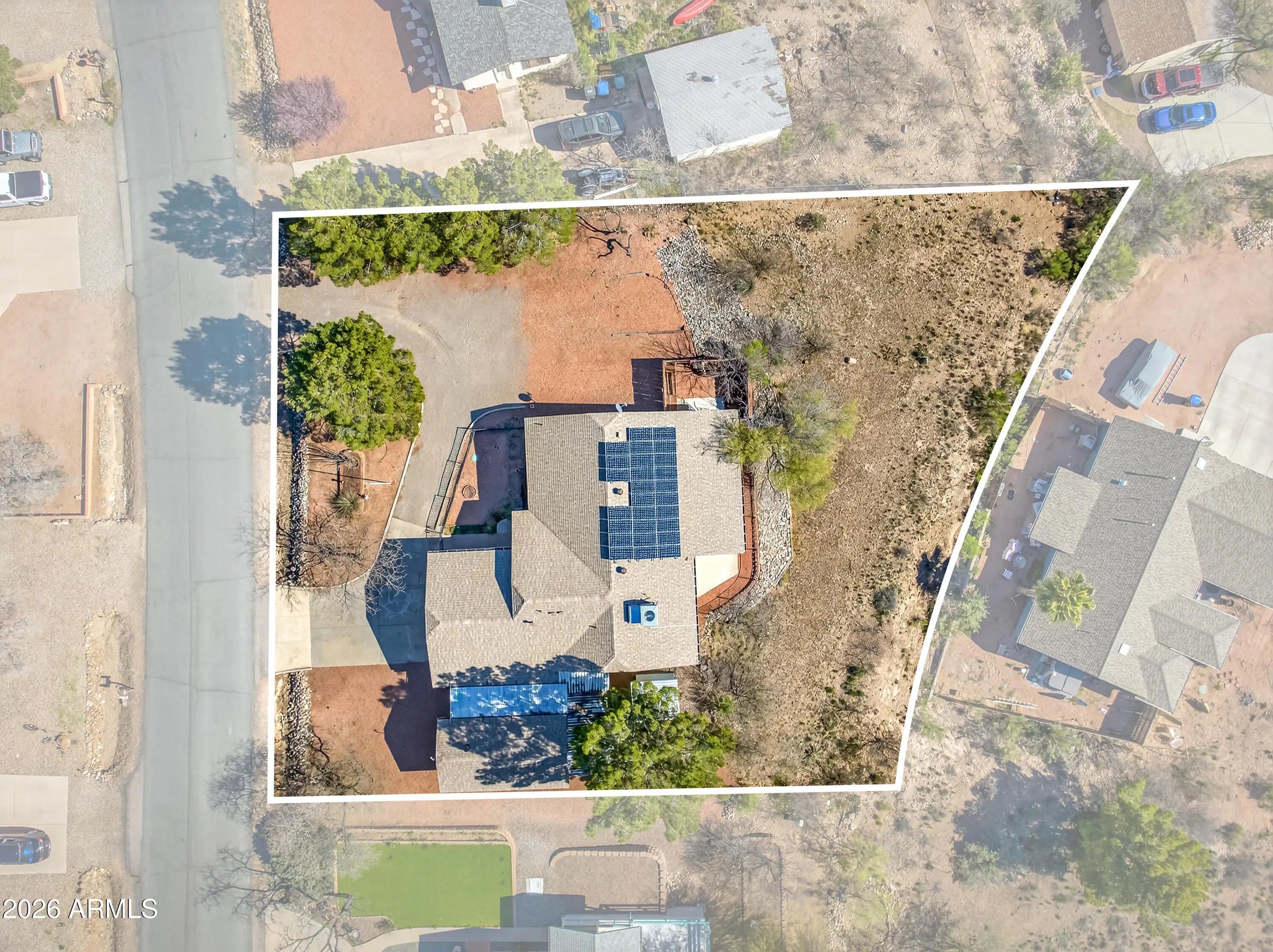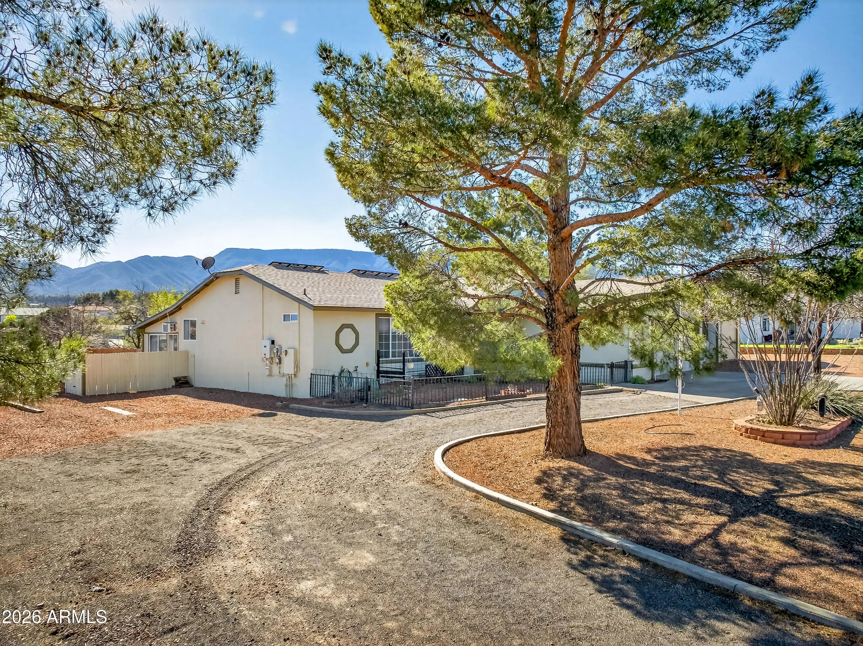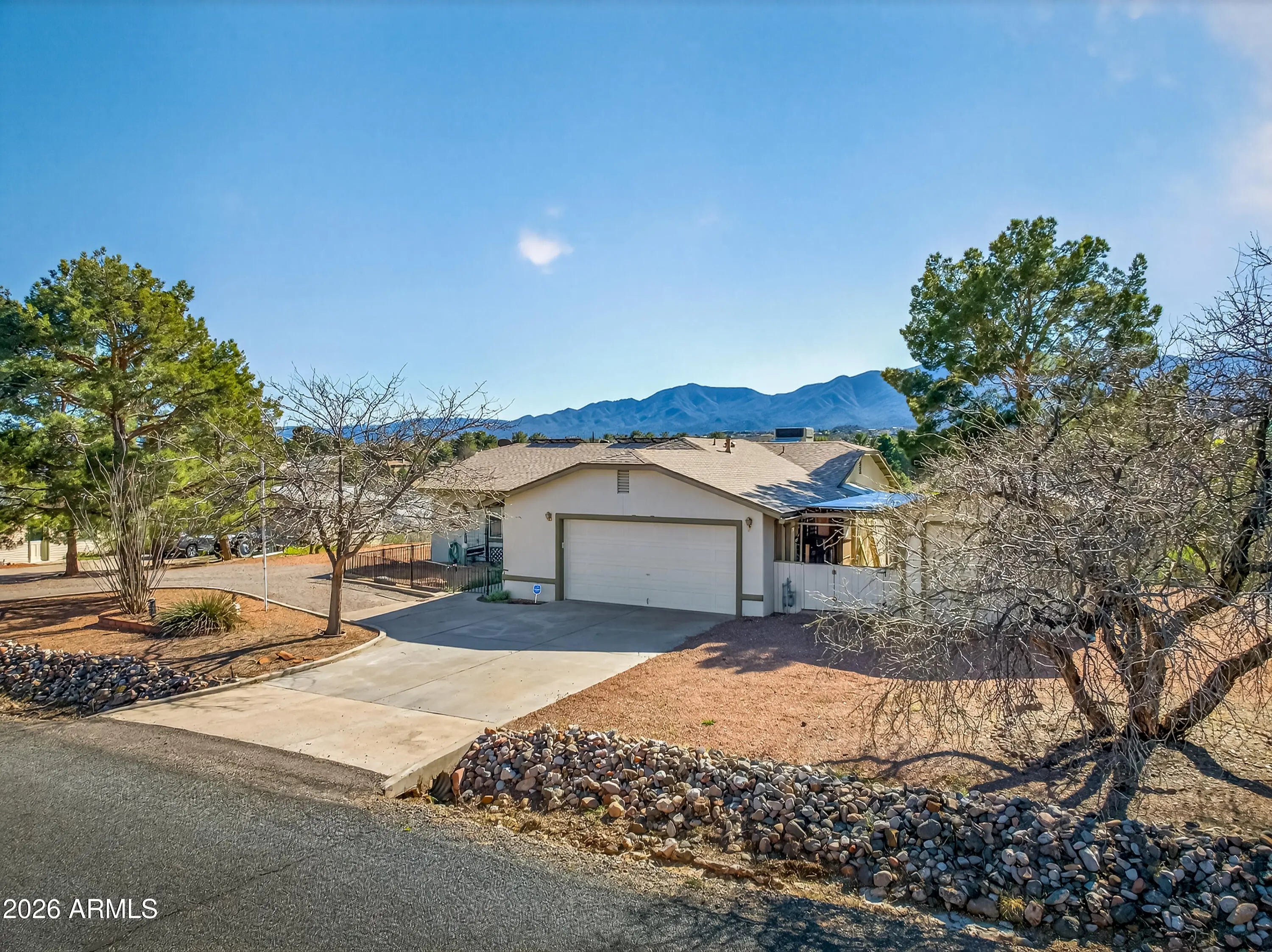 Enjoy magnificent, unobstructed views from this well-maintained 3-bedroom, 2-bath home set on a generous .41-acre lot. Offering 1,510 square feet of comfortable living space, plus the AZ room, this property combines practical upgrades with outdoor space and versatility that is increasingly hard to find. The home has been thoughtfully maintained with major improvements already completed, including a new roof in 2023, exterior paint in 2025, and a rebuilt garage door in 2025. Comfort and efficiency are enhanced by a 2021 air conditioning system paired with a whole-house air filtration system. Additional features include reverse osmosis water filtration and instant hot water at the kitchen sink. Energy costs remain low thanks to the leased solar system Beyond the attached garage, the property includes an additional 288 sq ft garage/workshop space--ideal for hobbies, storage, or projects. The spacious lot also offers RV-friendly features including a dump station and electric power connection. With sweeping views, ample outdoor space, valuable system upgrades, and room for vehicles, equipment, or recreational toys, this property presents a rare opportunity for comfortable living with practical functionality.