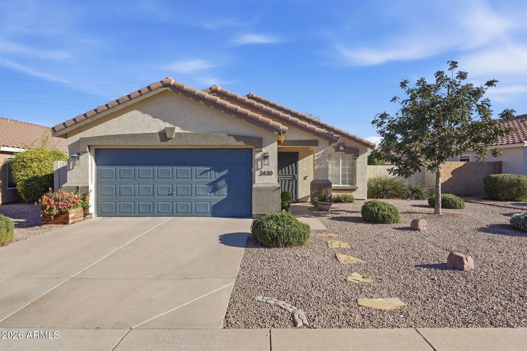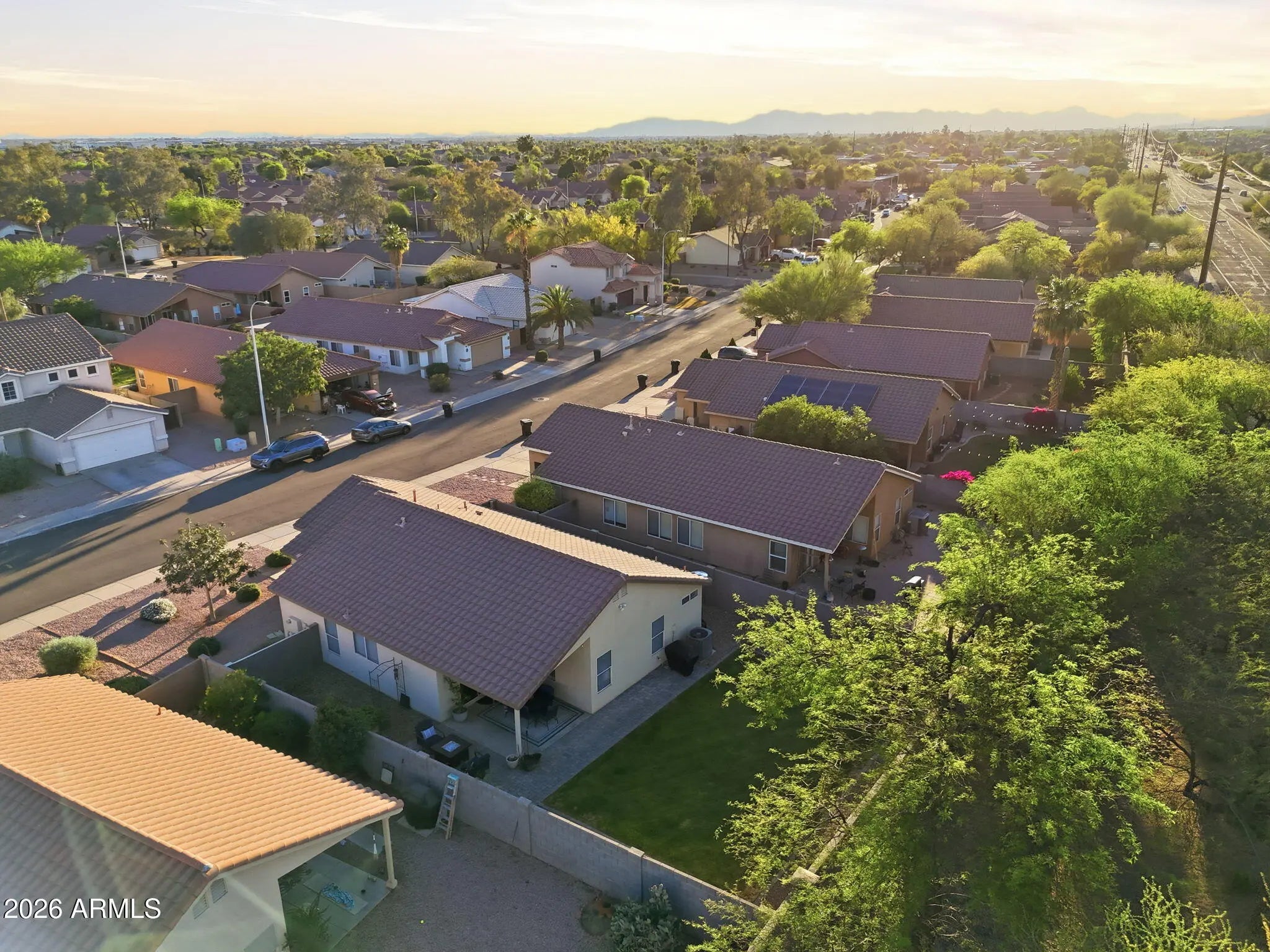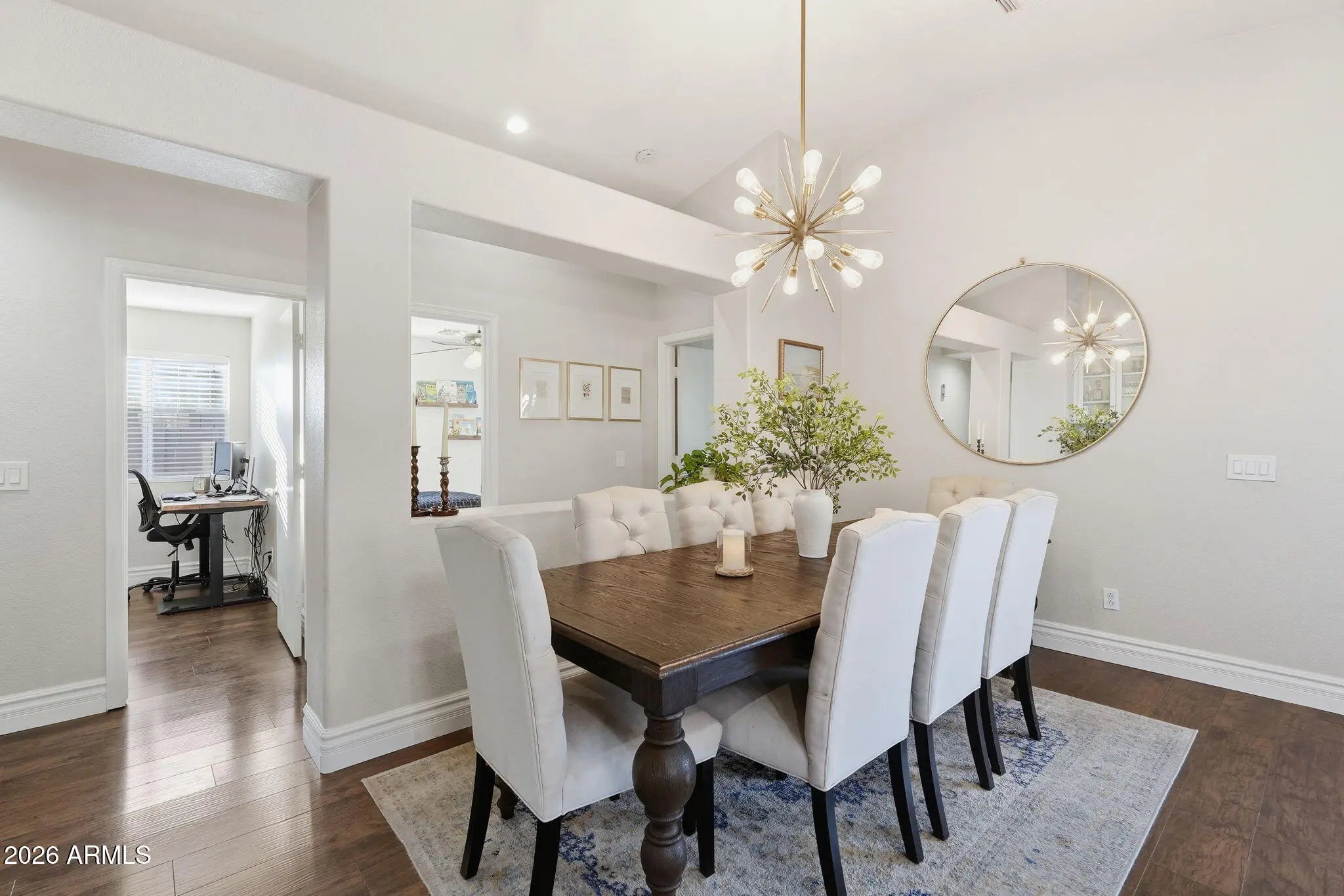 Stylishly updated and move-in ready, this thoughtfully maintained home offers modern finishes, comfortable living spaces, and an incredibly convenient East Valley location. Inside, vaulted ceilings and wood-look luxury vinyl plank flooring create a bright and open feel, while upgraded baseboards, adjustable LED canned lighting with dimmable switches, and updated fixtures add a polished touch throughout. The kitchen has been refreshed with painted white cabinetry, Whirlpool stainless steel appliances, a kitchen island, and an added bar area with additional cabinetry--perfect for extra storage and entertaining. The dining space is highlighted by a beautiful gold chandelier, creating a warm and inviting space for everyday meals or hosting guests. Both bathrooms have been tastefully... remodeled. The primary bathroom feels spa like with an upgraded vanity, marble shower with glass enclosure, and updated tile flooring. Step outside to a backyard designed for relaxing and easy entertaining, complete with a covered patio, bistro lighting, outdoor TV, added pavers, real grass with automatic watering, and a garden on drip irrigation ready for someone with a green thumb. With no neighbors directly behind, the yard offers a sense of privacy and open space. Major system updates provide peace of mind, the AC unit was replaced in July 2020 and the water heater was replaced in August 2024. Ideally located less than half a mile from Chandler-Gilbert Community College--which is also home to the popular Gilbert Farmers Market featuring 100+ vendors every Saturday--and just minutes from the 202 Freeway for easy commuting. You'll also enjoy the prime location with all of your everyday conveniences being less than 10 minutes away including all of the great dining, shopping and entertainment located at SanTan Village, Downtown Gilbert, and Downtown Chandler.
