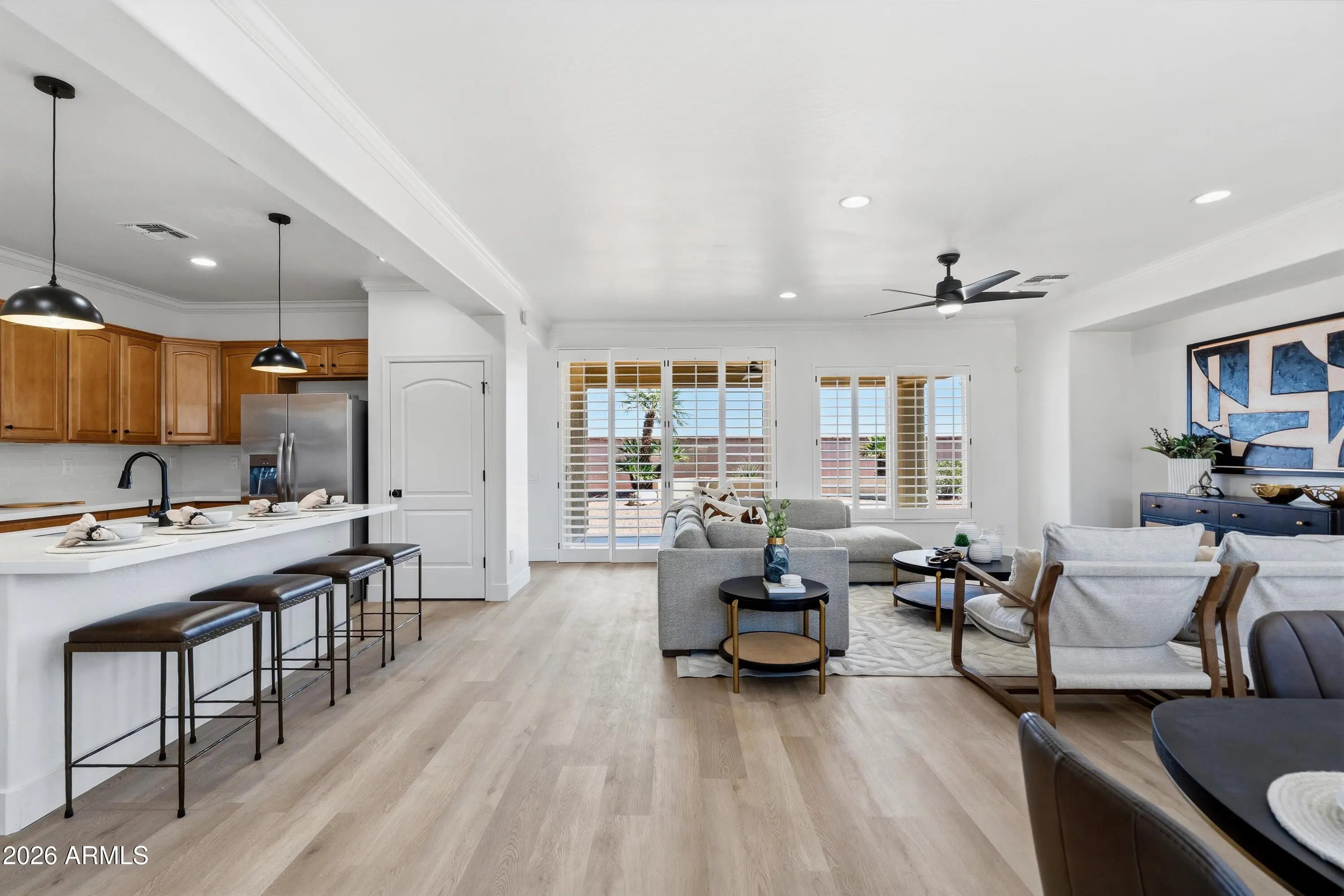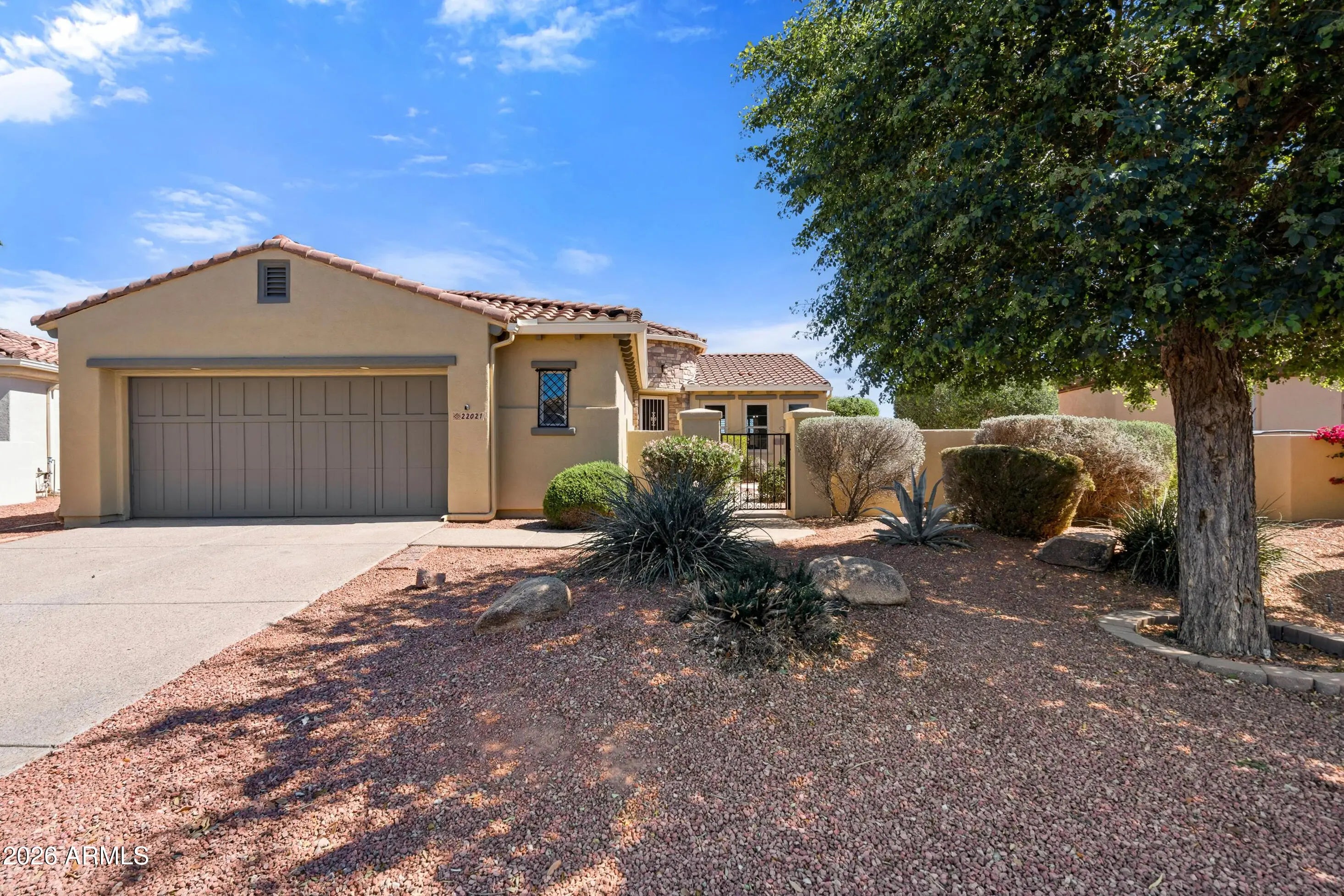 Completely reimagined from top to bottom with beauty brought to life! Warm, modern updates welcome you home to this inviting home in a 45+ guard gated community! This fully renovated 3-bed, 2-bath home has major updates including a new roof, fresh paint inside and out, stylish new LVP floors throughout, kitchen and bathroom cabinets & countertops, all new lighting, fans, fixtures and more! The kitchen is a spacious standout with a large, beautiful island with breakfast bar, brand new stainless steel appliances and tremendous natural east-facing light out back. Step outside to your own private low-maintenance desert landscape yard! Community pool, gym, spa, golf club and sport courts. This home is truly the perfect blend of comfort and value!
