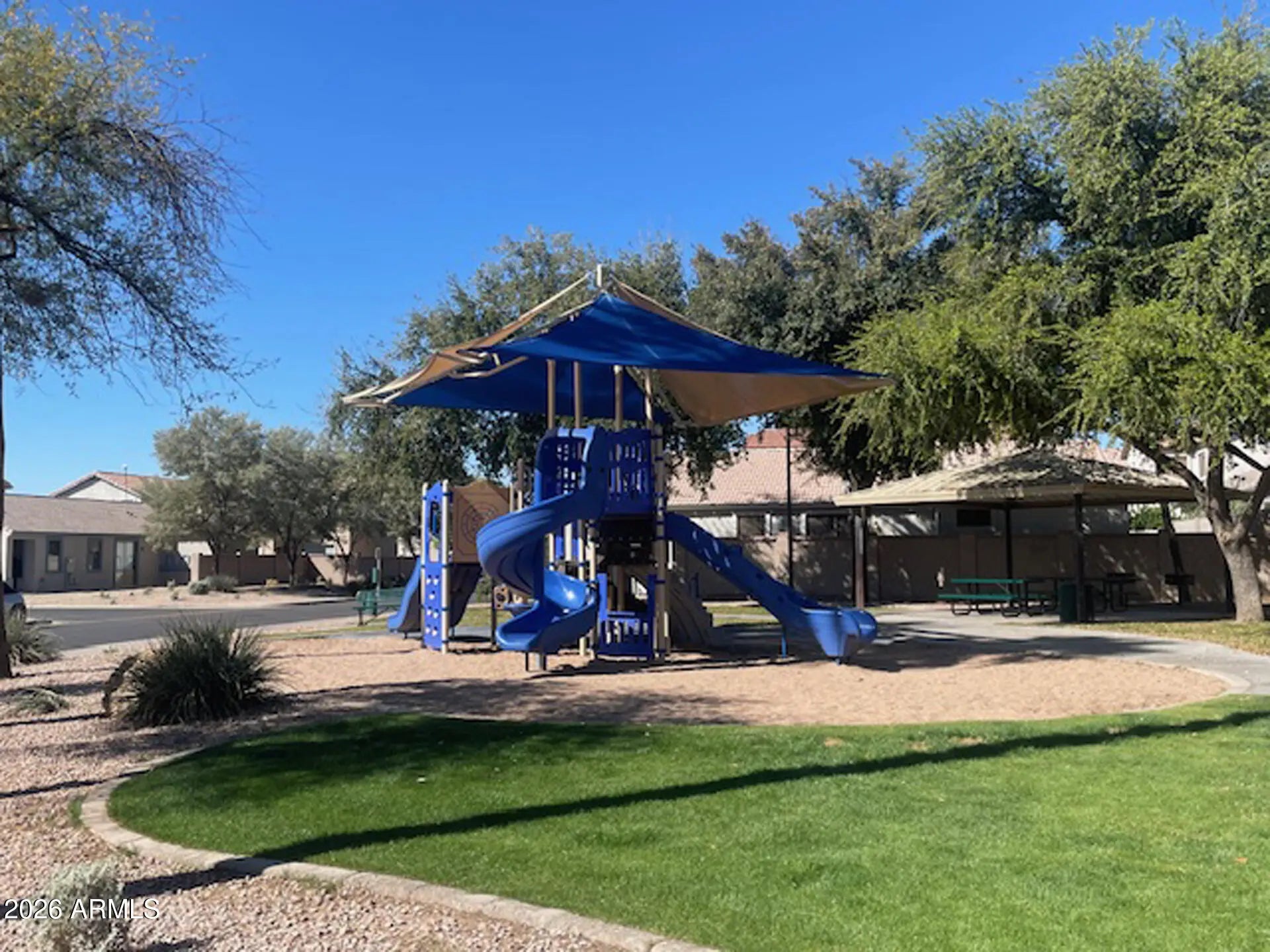 Beautiful single-story home in the charming Amador community! Located close to great schools, restaurants, and shopping, this quiet neighborhood is a small enclave of tiled roof homes with several of its own park areas which include a playground and a basketball court! The front yards are all maintained by the HOA. This particular home features 3 bedrooms and 2 baths, an open floor plan, and a xeriscaped, low maintenance yard with lots of potential to make it your own. All appliances are included. This move in ready home offers the perfect balance of suburban tranquility but also offers an easy commute with freeway access just minutes from the US-60 and Loop 202. Don't miss the chance to own this charming East Mesa home in such a great location!