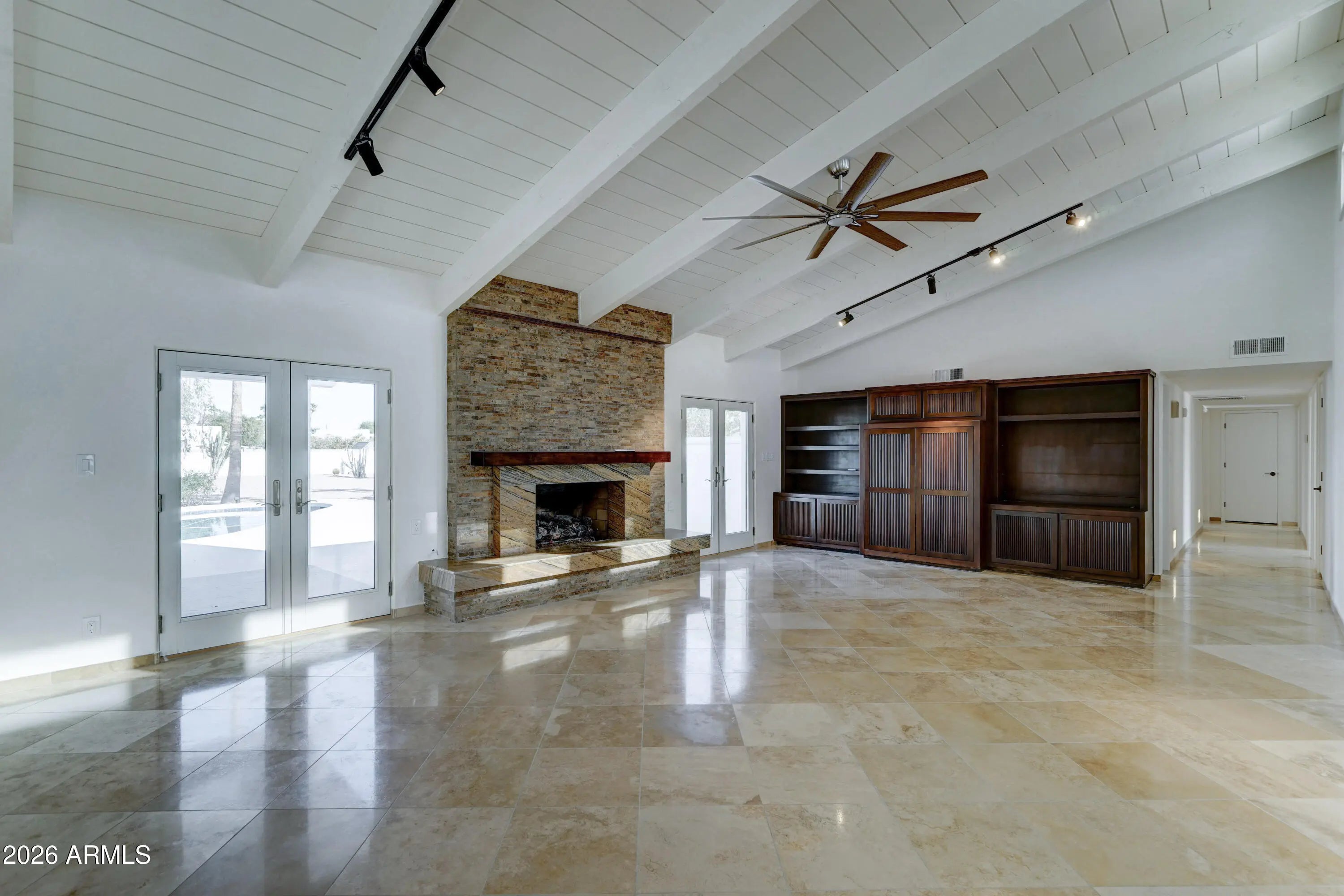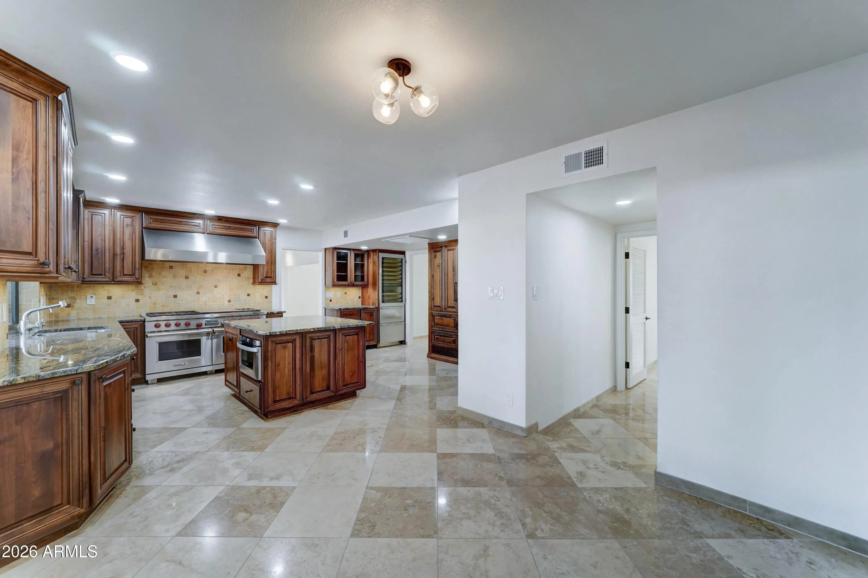 Incredible new building opportunity!! OR move-in tomorrow & enjoy this light, bright & airy 1 level--/5 bedroom-2.5 bathroom remodeled home featuring beautiful travertine stone floors throughout the main living areas of the home & a highly upgraded chef's kitchen w/ island in this coveted Paradise Valley location! Vaulted ceiling in the great room w/ a beautiful stone & marble fireplace that shows off the fabulous travertine stone floors! The chef's kitchen features a top of the line Sub-Zero/ Wolf appliance pkg that includes a Wolf duel fuel gas range w/ double full-sized ovens, 2 Sub-Zero refrigerators each w/ lg. freezer drawers + a 30 bottle Sub-Zero wine cooler! This dream kitchen also features a custom cabinet pkg & custom designer granite slab counter-tops!
