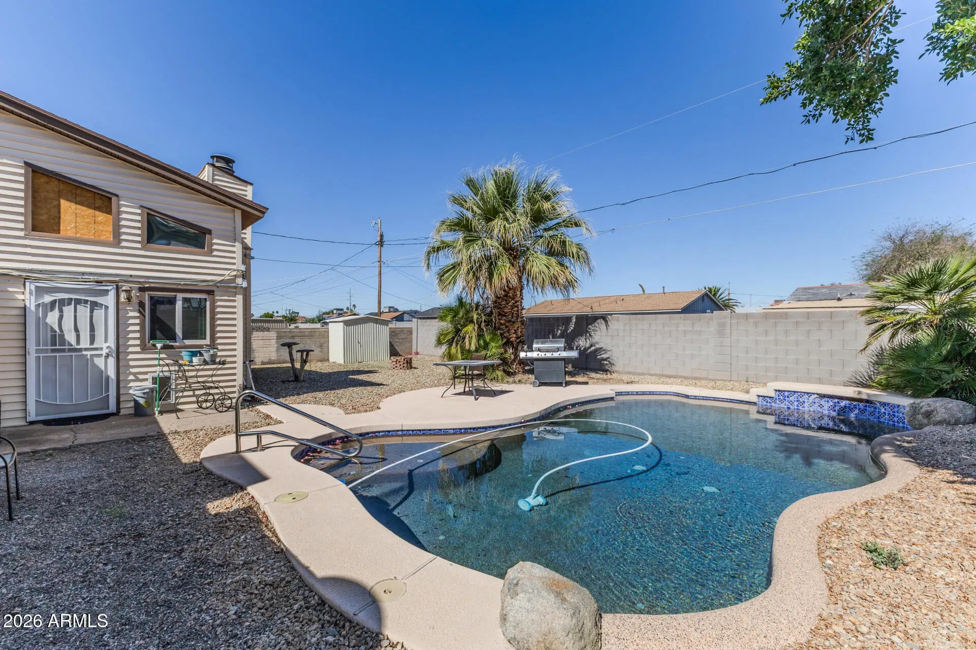 SHORT SALE! Fantastic home with POOL in a great Phoenix location! Providing 3 beds + loft, 2 baths, carport space, & a low-care landscape. The interior showcases tons of natural light, a designer palette, tile & wood-look floors in common areas, and carpet in bedrooms. Functional floor plan featuring a formal living room and a separate family/dining room with a vaulted ceiling & a fireplace. The kitchen boasts SS appliances, granite counters, tile backsplash, recessed lighting, ample wood cabinetry, and an island w/breakfast bar. Main bedroom has a private bathroom w/tiled shower. PLUS! There is a loft upstairs, perfect for a media area, office, or lounge. Enjoy the spacious backyard with multiple seating areas, storage shed, fire pit, & a sparkling pool! SOLAR PANELS are added perks.