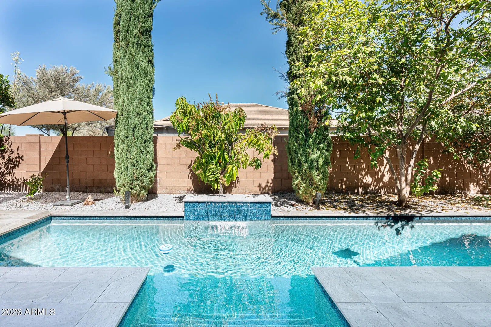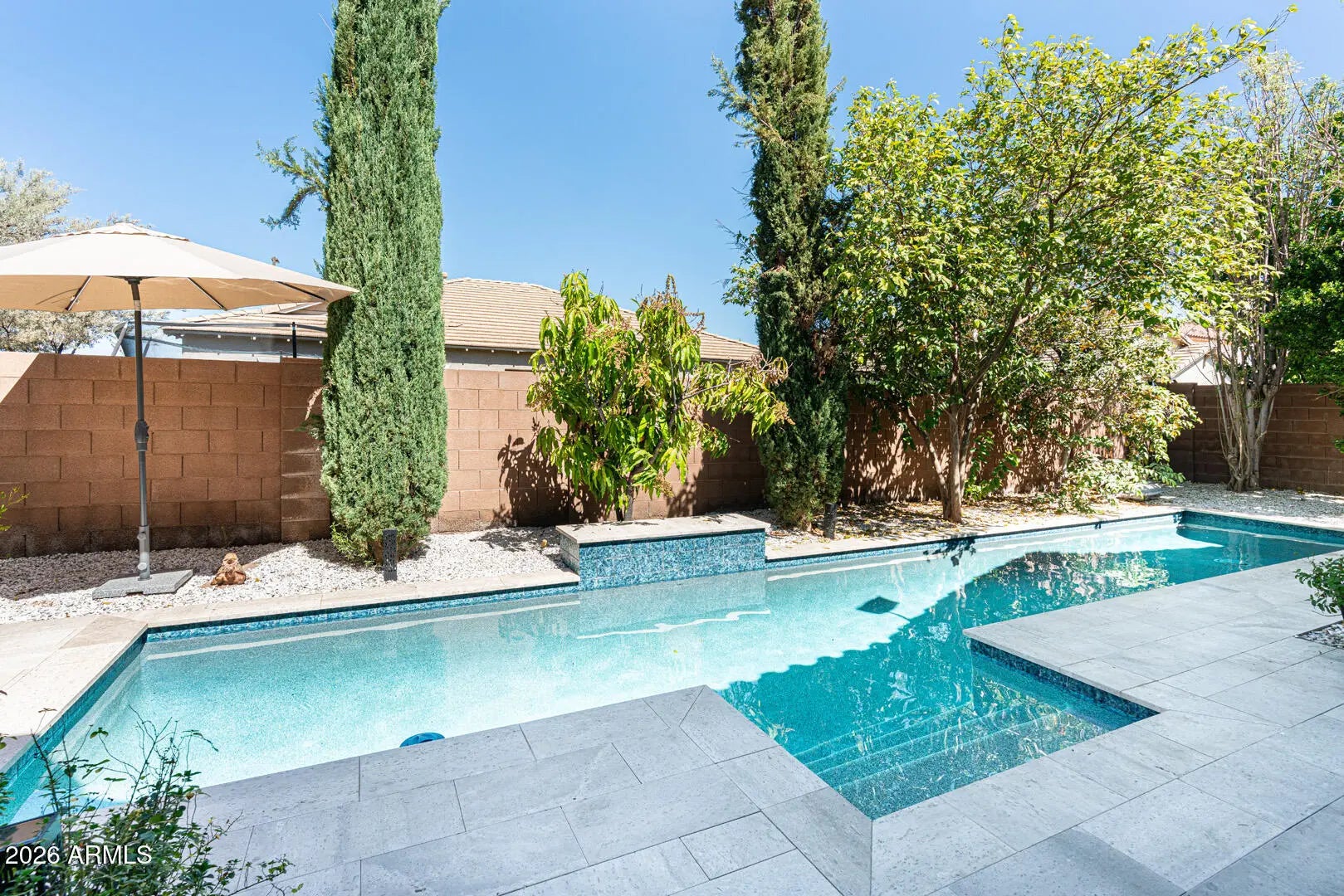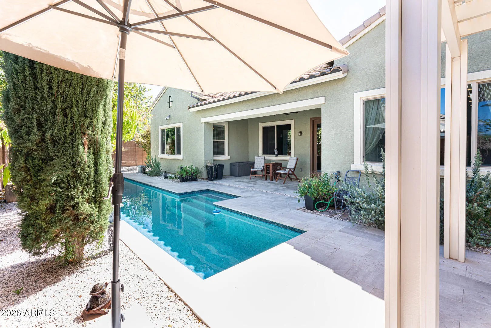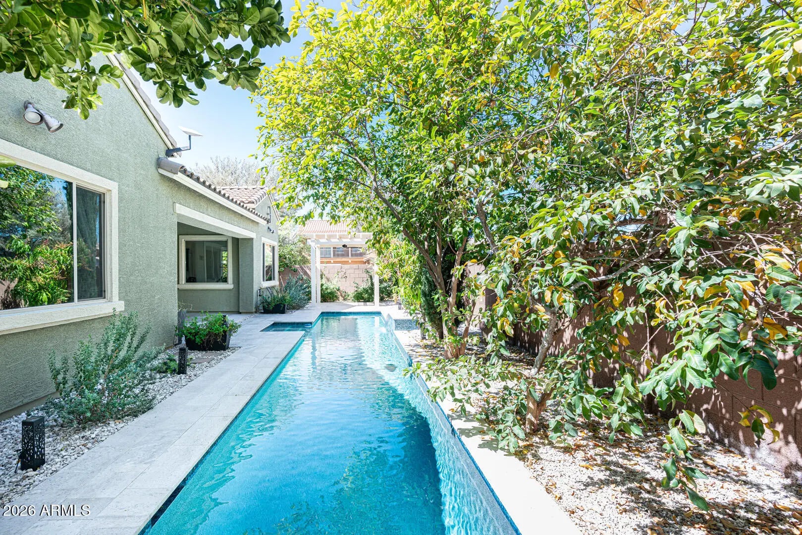 This is the kind of backyard buyers dream about. Step outside and you'll find a 36' x 6' lap pool installed in 2024, perfect for starting the morning with energizing laps or unwinding with a peaceful evening swim. Surrounding the pool, lush landscaping creates a private and inviting atmosphere where Arizona outdoor living truly shines. Just steps away, a pergola with fan and lighting offers a shaded retreat -- the perfect place to relax with a good book, host friends, or simply enjoy the beauty of the backyard oasis. Inside, the home offers generous living space designed for flexibility and comfort. With plenty of room to spread out, the layout easily accommodates everyday living, entertaining guests, or creating the ideal work-from-home office or creative space. Bathrooms have been refreshed with new faucets, adding a subtle modern touch. For added confidence, the seller is providing a home warranty at closing. Located in an area experiencing exciting growth, this property offers both space and opportunity -- making it an excellent choice for buyers seeking comfort, lifestyle, and long-term potential.