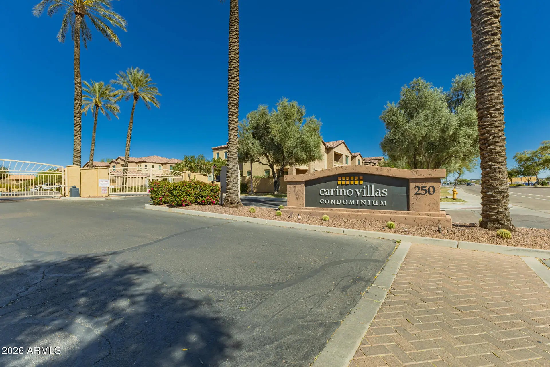 **FORMER BUILDER MODEL ** Welcome to Carino Villas Condominiums, located in the heart of South Chandler. This beautifully maintained, single-level condo (2-bed, 2-bath, private one-car garage) features a premium unit location offering excellent energy efficiency and convenient proximity to the community pool, spa, mailboxes, and greenbelt area. Step inside to a bright and inviting great room featuring abundant LED lighting, an open floor plan, and 20-inch tile flooring. Sound system (receiver, sound bar, and surround/rear speakers) is included, perfect for movie nights or relaxing at home to music anytime. The well-appointed kitchen showcases slab granite countertops, soft-close white shaker cabinets, electric cooktop, built-in microwave, reverse osmosis system, and your choice of eat-i dining with built-in bench seating or breakfast bar-style seating. The primary suite offers a dual-sink vanity, walk-in shower, private water closet with bidet-equipped toilet, and a large walk-in closet. Additional highlights include a front security screen door, motorized blinds, ceiling fans, and covered patio. Residents enjoy the benefits of a gated community with pool and heated spa, while the HOA provides excellent value by covering water, sewer, trash, security monitoring, and more. Ideally located near freeways, golf, shopping, dining, and medical services, this home offers comfort, convenience, low-maintenance living and resort-style comfort in one of South Chandler's most desirable locations.