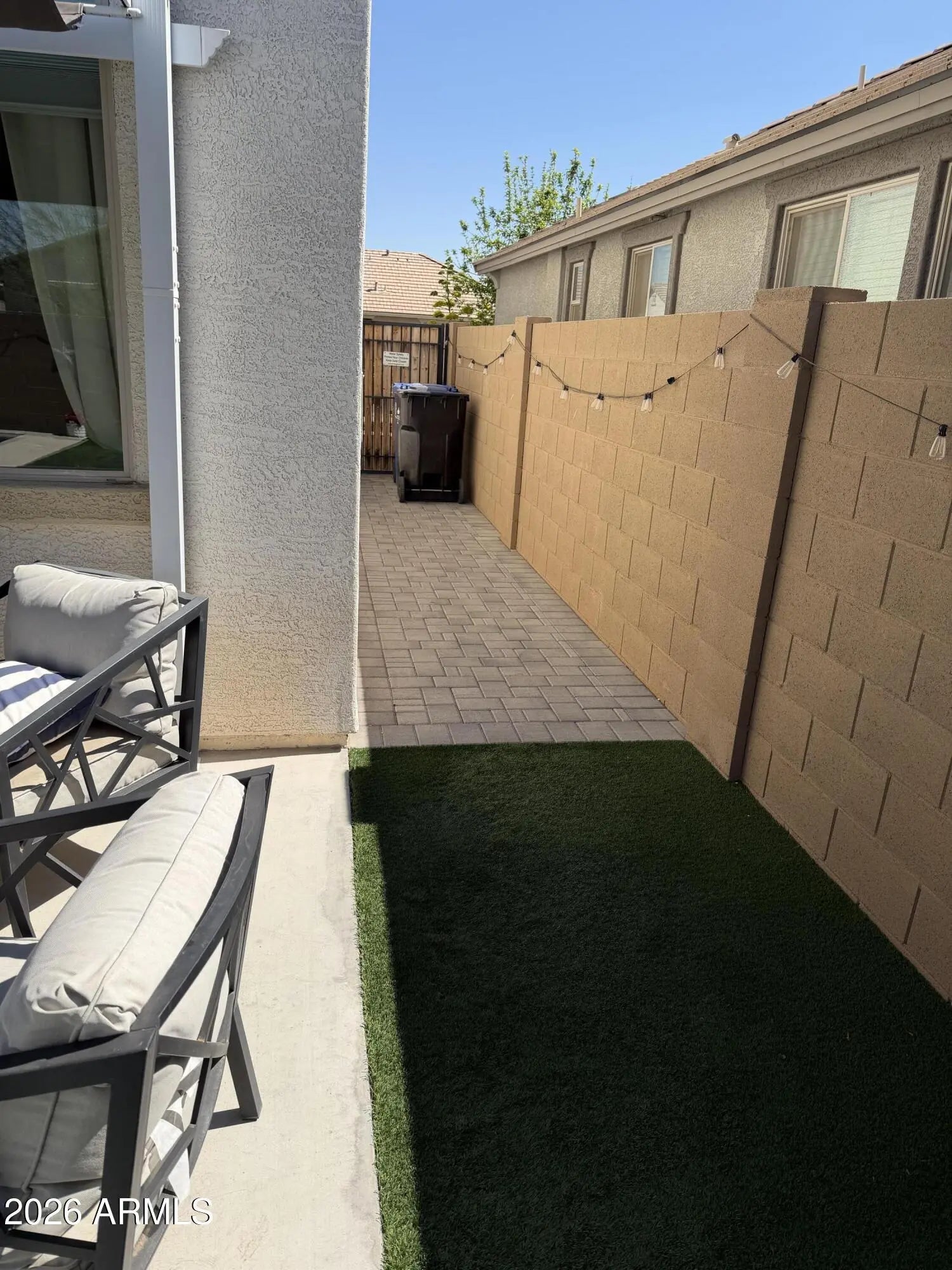Gravel/Stone Front, Synthetic Grass Back, Irrigation Front, Irrigation Back