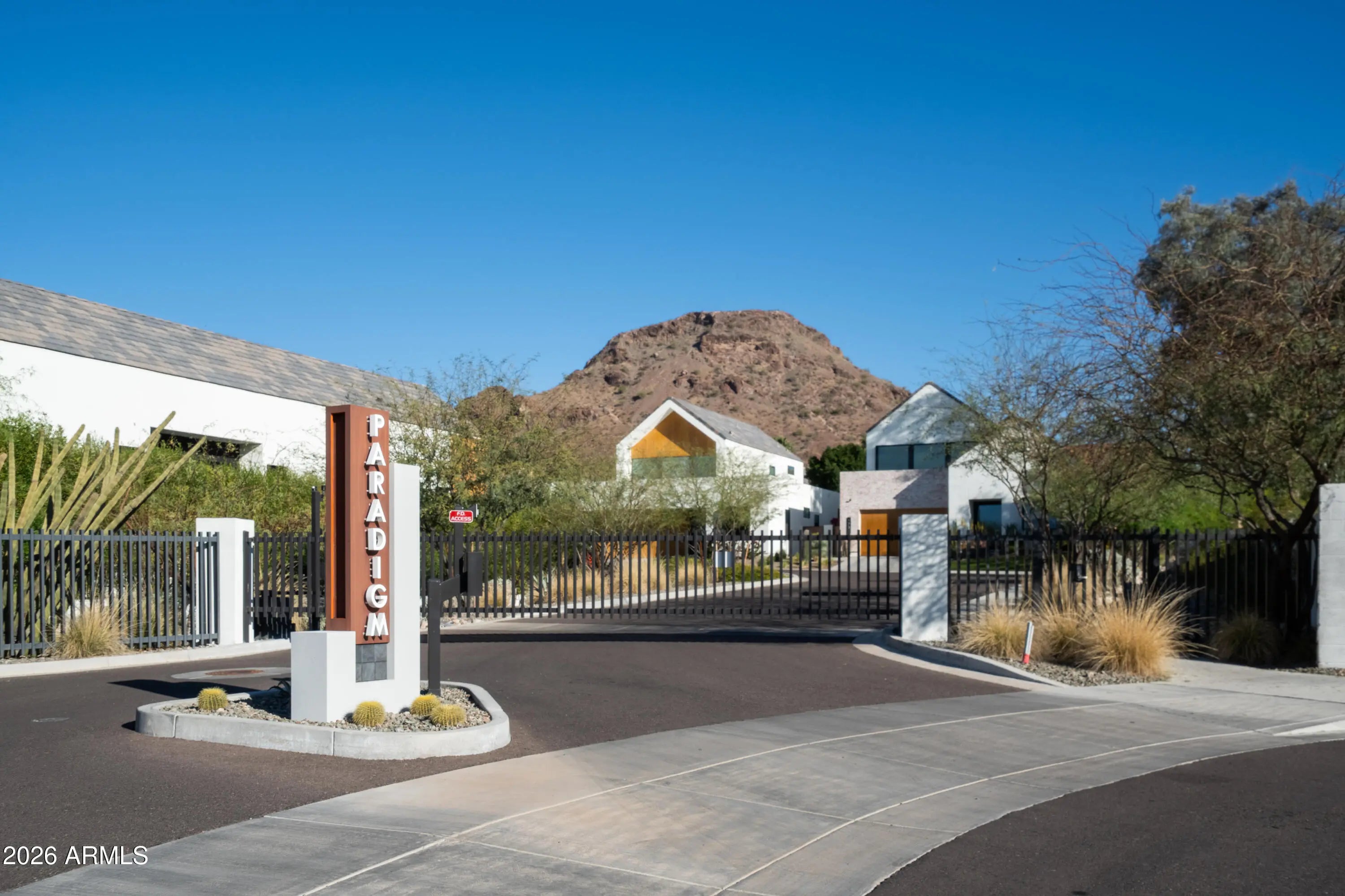 Hidden within the scenic foothills of Lookout Mountain Preserve, Paradigm is an intimate gated community of just 12 residences from Camelot Homes. Surrounded by miles of hiking trails and golf, this exclusive enclave offers a rare opportunity to experience modern desert living by award-winning local architecture firm The Ranch Mine. This residence was designed with an open floor plan that seamlessly blends indoor and outdoor living. Home features 10' ceilings, expansive 16' glass sliding doors in the family room that flows to a large covered patio, and sparkling heated swimming pool. Synthetic turf lawn, and lush landscaping create a peaceful oasis. The kitchen offers a spacious island with upgraded Granite slab counters, pull up breakfast bar seating, custom cabinetry, large walk-in pantry, Bosch appliances, and large walk in pantry. Designer light fixtures bring warmth & elegance to this home. Primary Suite offers a custom built-in closet, luxurious bathroom with soaking tub, large shower, and dual vanities, and polished chrome fixtures. 3 separate guest rooms on opposite for privacy. Residence is artfully crafted to embrace the desert environment, combining modern architecture, sophisticated finishes, and a strong connection to the surrounding preserve.