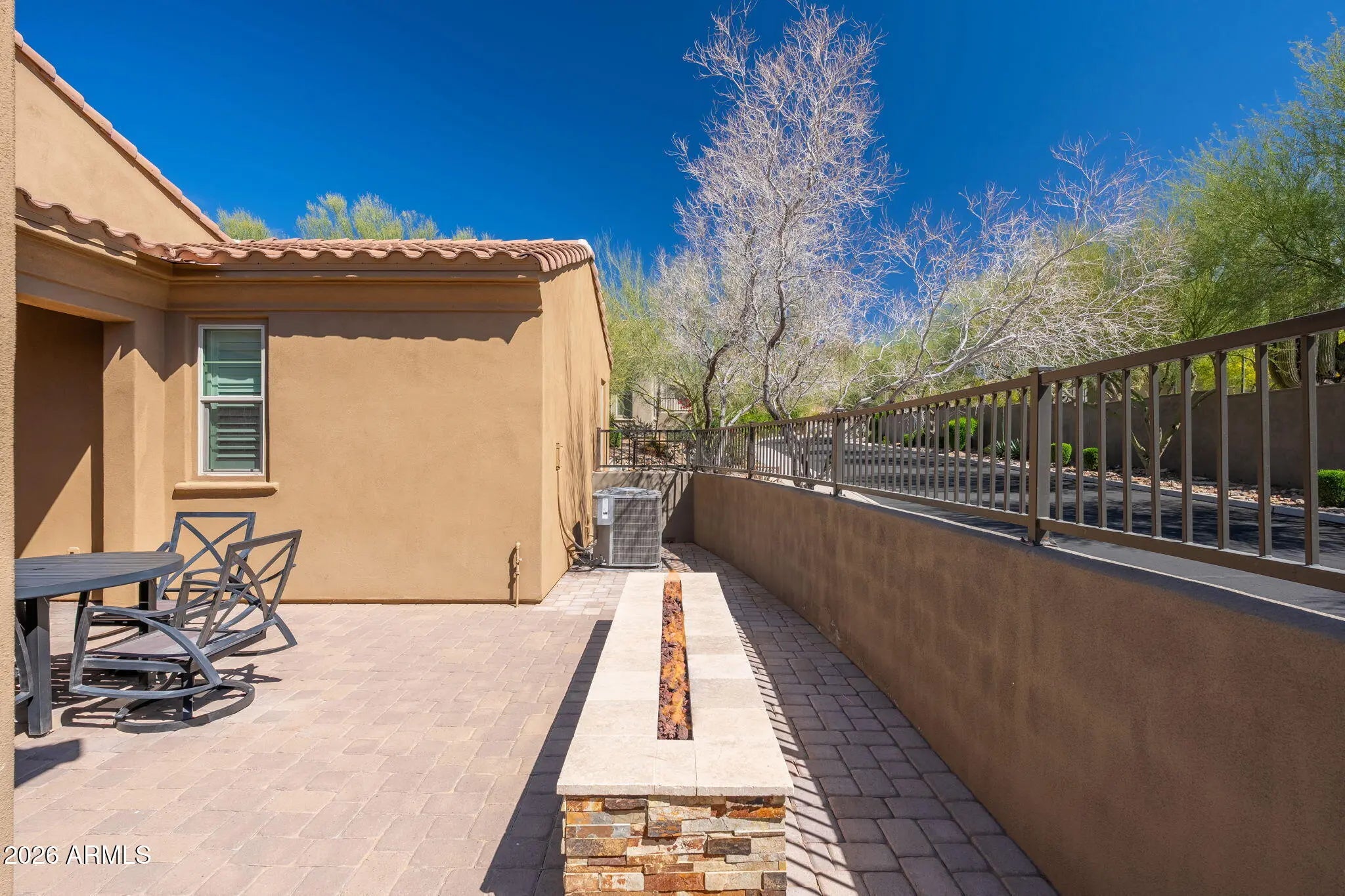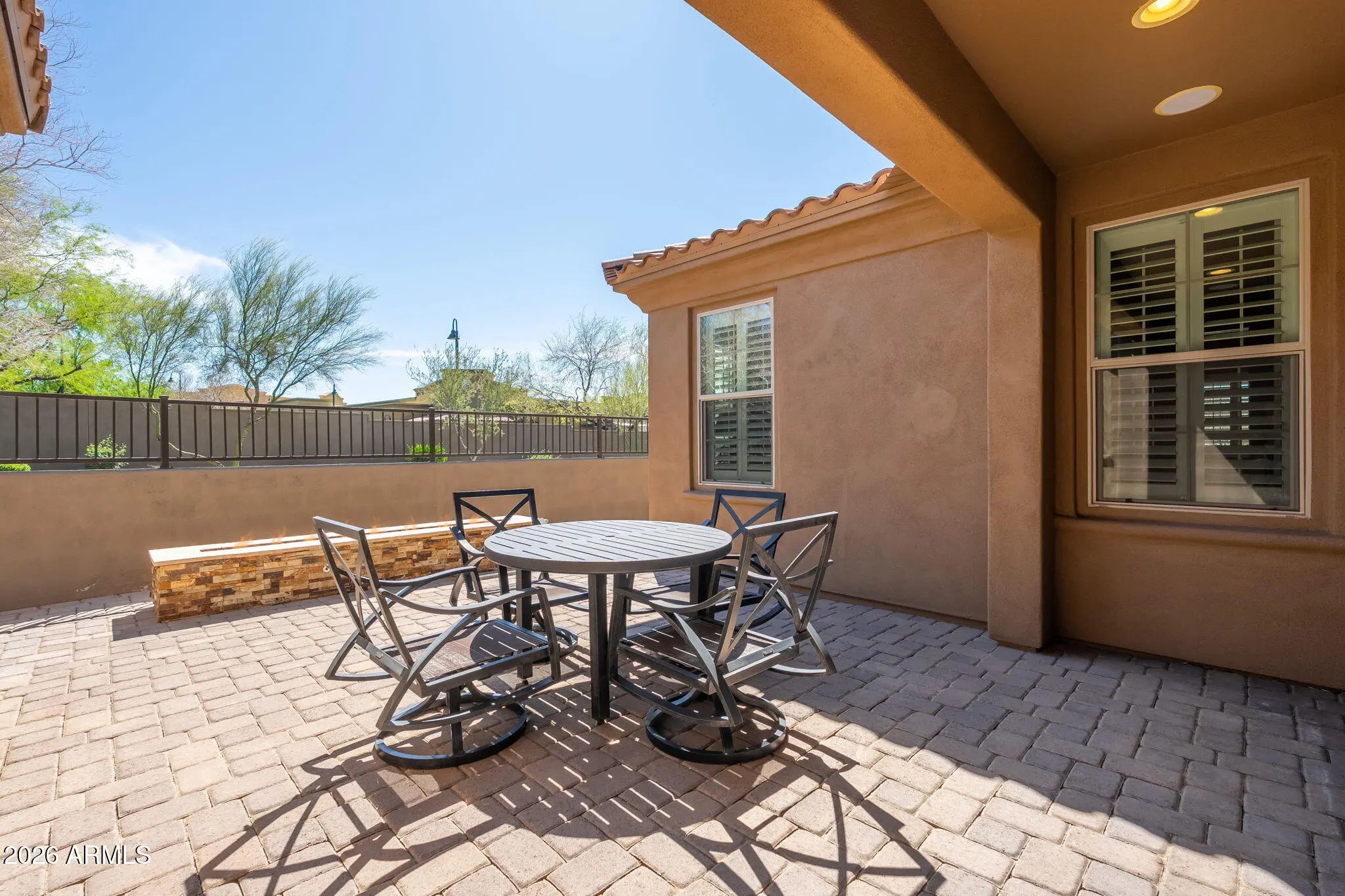 Rare opportunity in the gated enclave of Villa Altozano, where homes seldom come to market. Ideally located next to DC Ranch and Windgate Ranch, this intimate community of just 41 residences offers exceptional convenience. Enjoy walking distance to restaurants, coffee shops, and shopping, plus direct access to hiking and biking trails in the McDowell Mountain Preserve. The home features natural stone and quartz countertops, stainless steel appliances, solid wood floors, white cabinetry, and plantation shutters. The desirable end location is just steps away from the community pool, spa and walking trails. owner and has been meticulously cared for with recently painted interior, upgraded lighting and new carpet in 2025. Original owner, purchased from the builder and meticulously maintained.