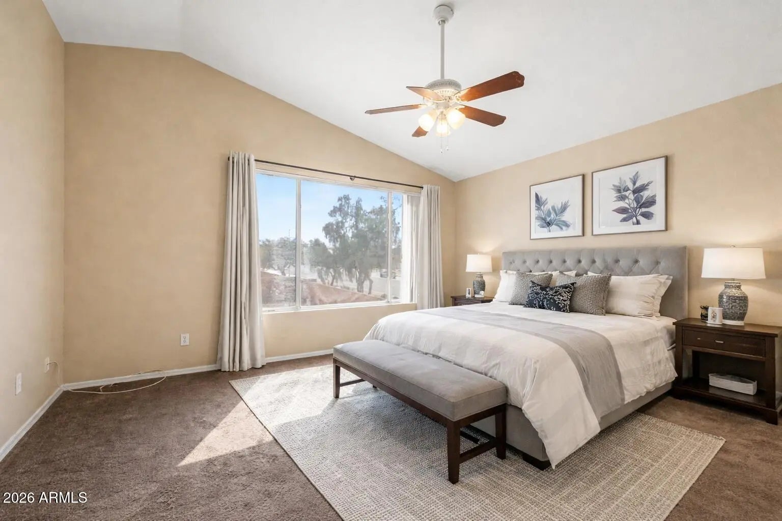 NEW AC 2024!! Charming home in a highly desirable North Glendale neighborhood, conveniently located just minutes from the Loop 101 freeway for easy commuting and access to shopping, dining, and entertainment. This well-maintained property features fresh interior paint and brand-new carpet, making it move-in ready and showing beautifully. The thoughtful floor plan offers all bedrooms upstairs, creating a comfortable separation between living and sleeping spaces. The kitchen opens to the dining area, providing a functional layout that is perfect for everyday living or entertaining. Enjoy the spacious feel of the vaulted ceilings, adding natural light and an airy atmosphere to the home. Step outside to a large backyard with a covered patio, ideal for relaxing, outdoor dining, or creating y outdoor dining, or creating your own desert oasis. Additional highlights include a new AC unit installed in September 2012. Great value for this location!!!!