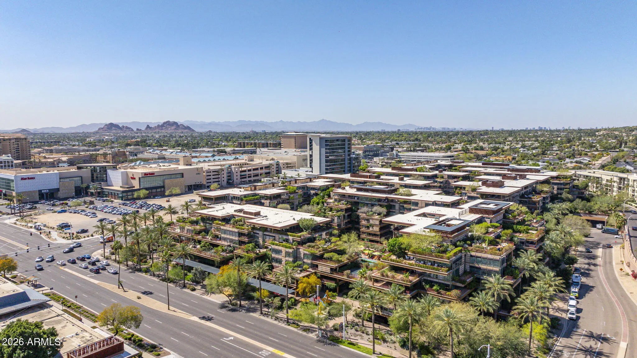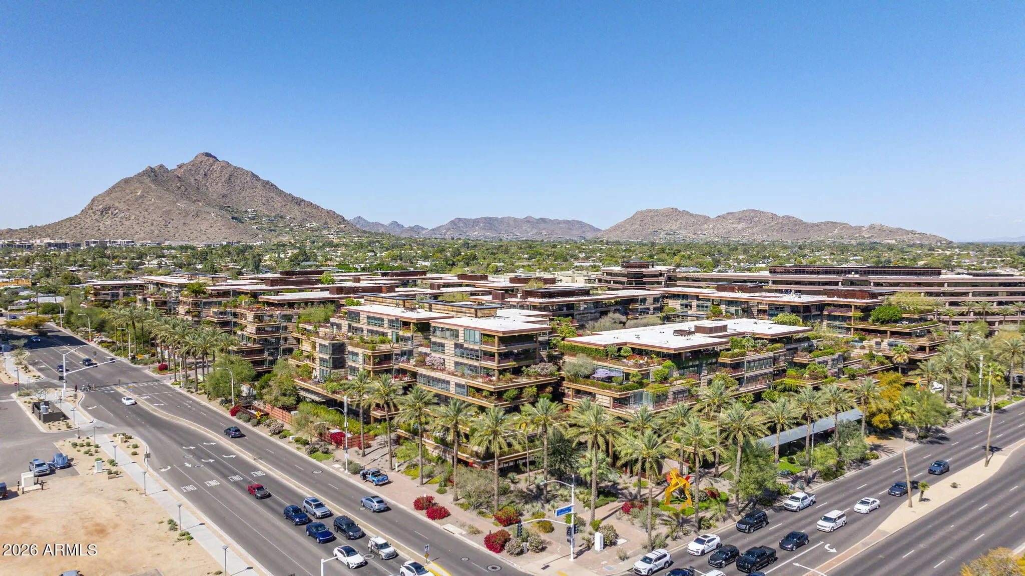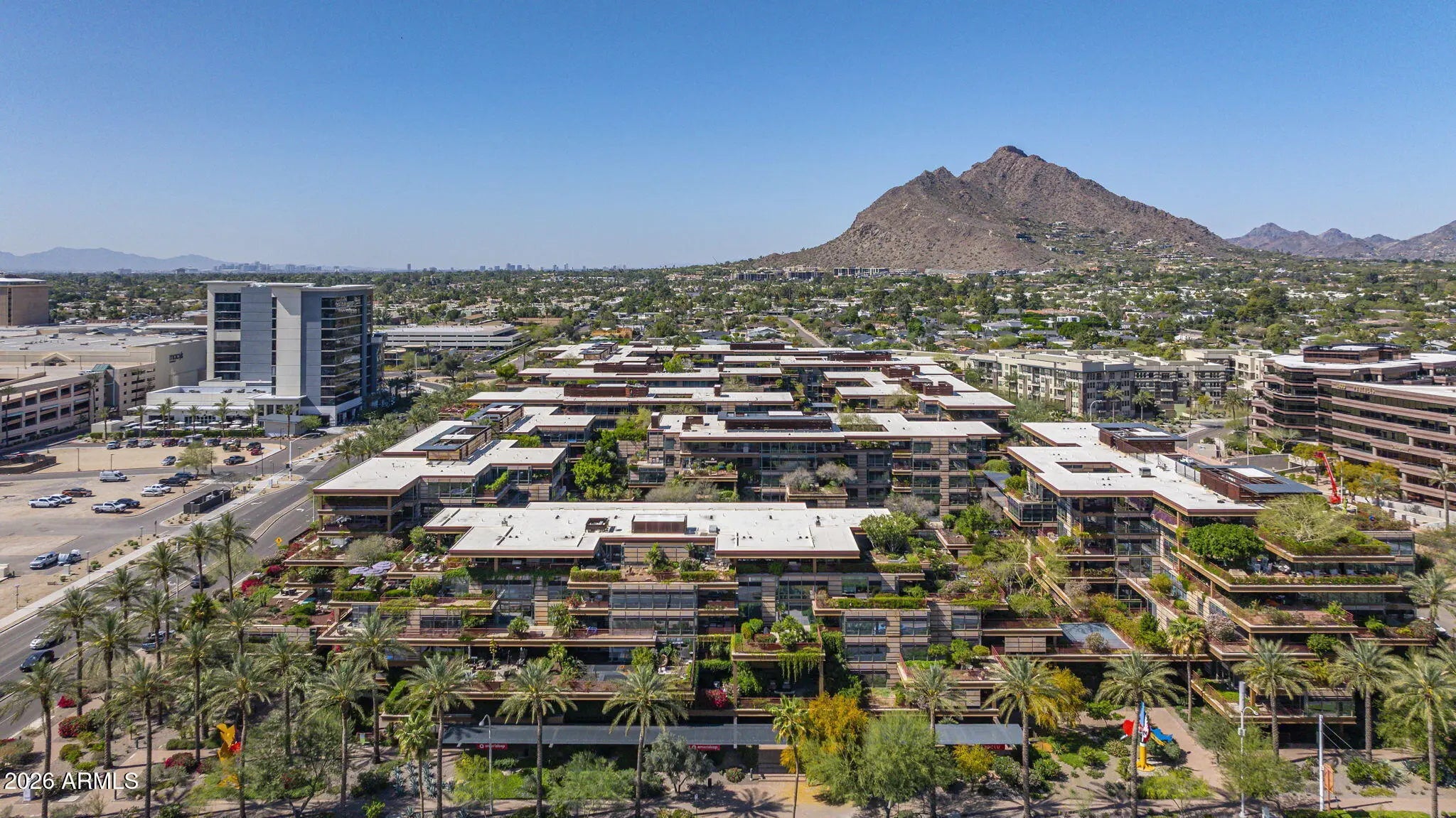 Corner unit with outdoor patio space wrapping the unit, which exceeds the indoor livable, and offers dramatic city views! Modern upscale complete renovation, including redesign of the main living space, kitchen, bathrooms and an expansive primary closet. Hardwood floors, custom cabinetry, beverage station, designer bath tile, custom doors, fixtures and lighting, creating the ultimate luxury urban residence. Camelview is the recipient of multiple international green design concept awards, including 2012 AIA National Housing Award, European Centre for Architecture 2010 International Sustainability Award, 2009 AIA The American Architecture Award, and the Crescorida 2008 Environmental Excellence Award. The innovative design has been immulated around the world. Lifestyle amenities includes 2 outdoor pools and spas, meandering green pathways, waterfalls and water features, green spaces and a world class workout facility, with an indoor lap pool and spa, fitness center yoga/aerobics room, basketball and handball courts, community clubhouse room and concierge office. This unit offers one of the most unique combinations of elevated views, expansive outdoor living and the ultimate urban lifestyle.