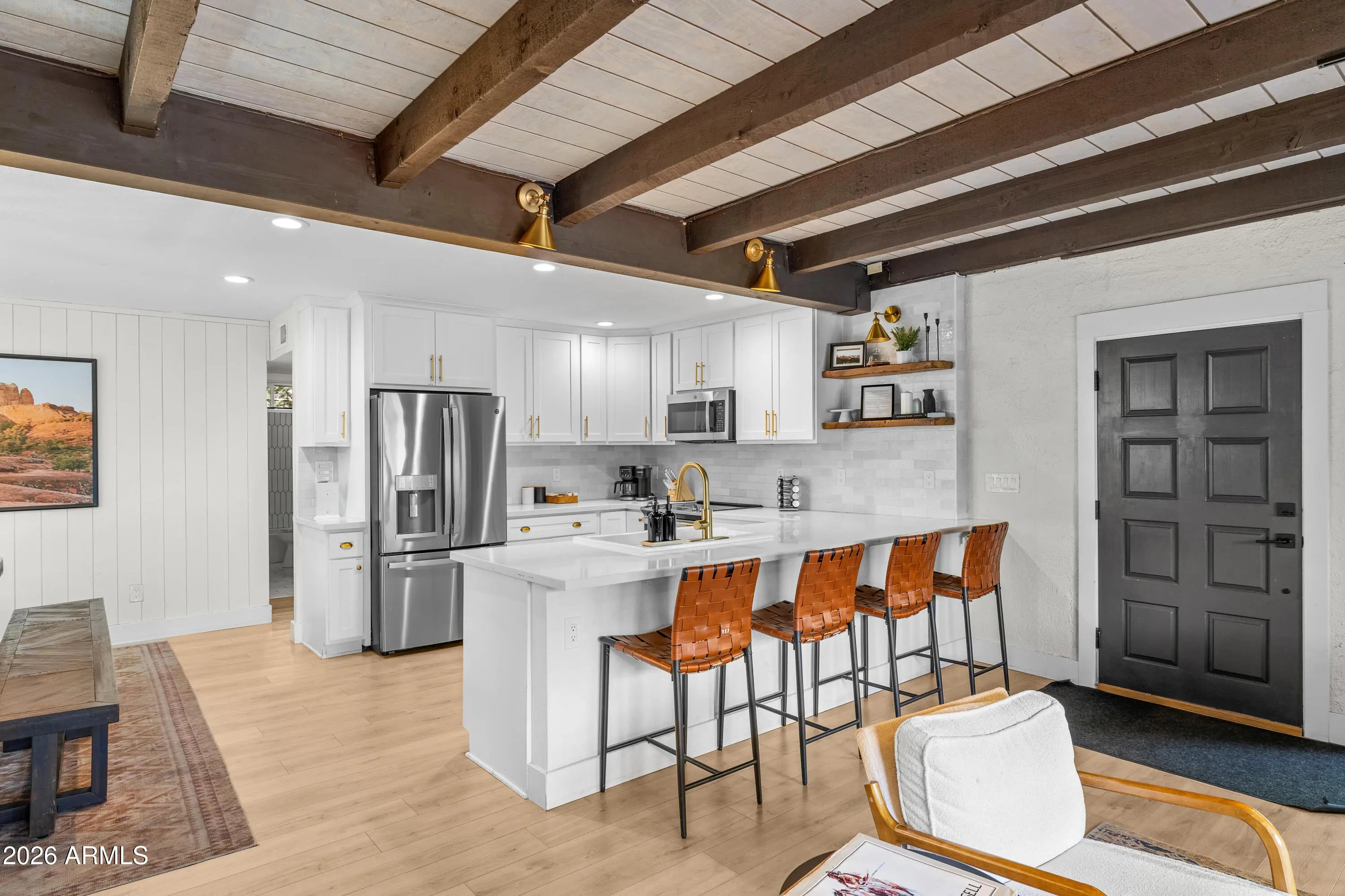 Turnkey West Sedona Active Short Term Rental - Over $200K in Recent Upgrades! Located in the prime West Sedona area, this beautifully renovated single-level home is a proven income-producing short-term rental generating over $100K annually. The property is offered fully furnished with nearly $80K in furnishings and a new Hot Tub. The interior has been completely updated, improvements include new LVP Flooring, Interior Paint, Kitchen w/ Quartz Countertops and New Appliances, Updated Bathrooms, New Water Heater, New Washer/Dryer, New Roof, Newly Landscaped Backyard. This is a great opportunity for someone looking to acquire an operating STR Business with the option of continuing with the current Management Company for a seamless transition or as an amazing second or full time residence.