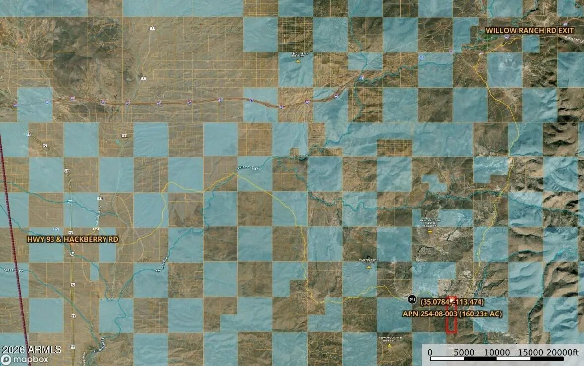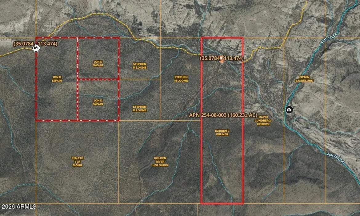 160± acres of scenic Arizona ranch land in the Fort Rock Ranches area of Mohave County (APN 254-08-003). This large parcel features a natural spring that attracts wildlife and enhances the property's recreational appeal. Located near Ash Creek, known for excellent fishing, and surrounded by wide-open landscapes and mountain views. Wildlife commonly seen in the area includes elk, mule deer, black bear, mountain lion and other native species. Zoned Rural Ag with no HOA. Ideal for hunting, recreation, off-grid living or long-term land investment. Access with routes from Willow Ranch Rd (I-40) or Ranch Creek Rd (US-93). Seller financing may be available. Property is in pre-foreclosure with trustee sale scheduled April 23, 2026 and is seeking to sell before that date. 160± acres of Northern Arizona ranch land located in the Fort Rock Ranches area of Mohave County (APN 254-08-003). This large parcel offers wide-open landscapes, rugged desert beauty, native vegetation, and expansive mountain views in a remote and private setting. A natural spring located on the property provides a valuable water source that attracts wildlife and enhances the property's recreational and long-term investment appeal. The property is also located near Ash Creek, a regional waterway known for excellent fishing opportunities and an important water source supporting wildlife throughout the surrounding ranch country. The Fort Rock Ranches area is well known among outdoor enthusiasts for its abundant wildlife habitat. Animals commonly seen in the region include elk, mule deer, black bear, mountain lion and other native game species, making the area attractive for hunting and recreational land ownership. PROPERTY FEATURES " 160± acres of contiguous land " Mohave County Assessor Parcel Number: 254-08-003 " Natural spring located on the property " Located near Ash Creek, known for fishing opportunities " Wildlife habitat including elk, mule deer, black bear, mountain lion and other native species " Located within the Fort Rock Ranches subdivision " Rural Agriculture (RA) zoning " No HOA restrictions " Panoramic desert and mountain views " Sloping terrain with native vegetation " Ideal for hunting, recreation, ranching, or off-grid living " Seller financing may be available ACCESS The property may be accessed via ranch roads in the area with routes from Willow Ranch Rd off Interstate 40 or Ranch Creek Rd off US Highway 93, generally traveling toward the Knight Creek Road area and the Fort Rock Ranches subdivision. UTILITIES This is a remote rural property. " Electric: None " Water: None installed (natural spring present) " Sewer: None ADDITIONAL PROPERTY INFORMATION Property Type: Vacant Land County: Mohave County, Arizona Subdivision: Fort Rock Ranches Elevation: Approximately 4,640± to 5,000± feet Annual Taxes: Approximately $392 (2025 assessment) IMPORTANT NOTICE Seller has advised that the property is currently in pre-foreclosure with a trustee sale scheduled for April 23, 2026. Seller intends to sell the property prior to that date and will consider serious offers. Buyers who are following the nearby Fort Rock Ranches land auction may also wish to consider this 160-acre parcel located nearby. With large acreage parcels becoming increasingly difficult to find in Northern Arizona, this property represents a rare opportunity to acquire 160± acres with natural water, abundant wildlife habitat, and nearby fishing in a private rural setting.