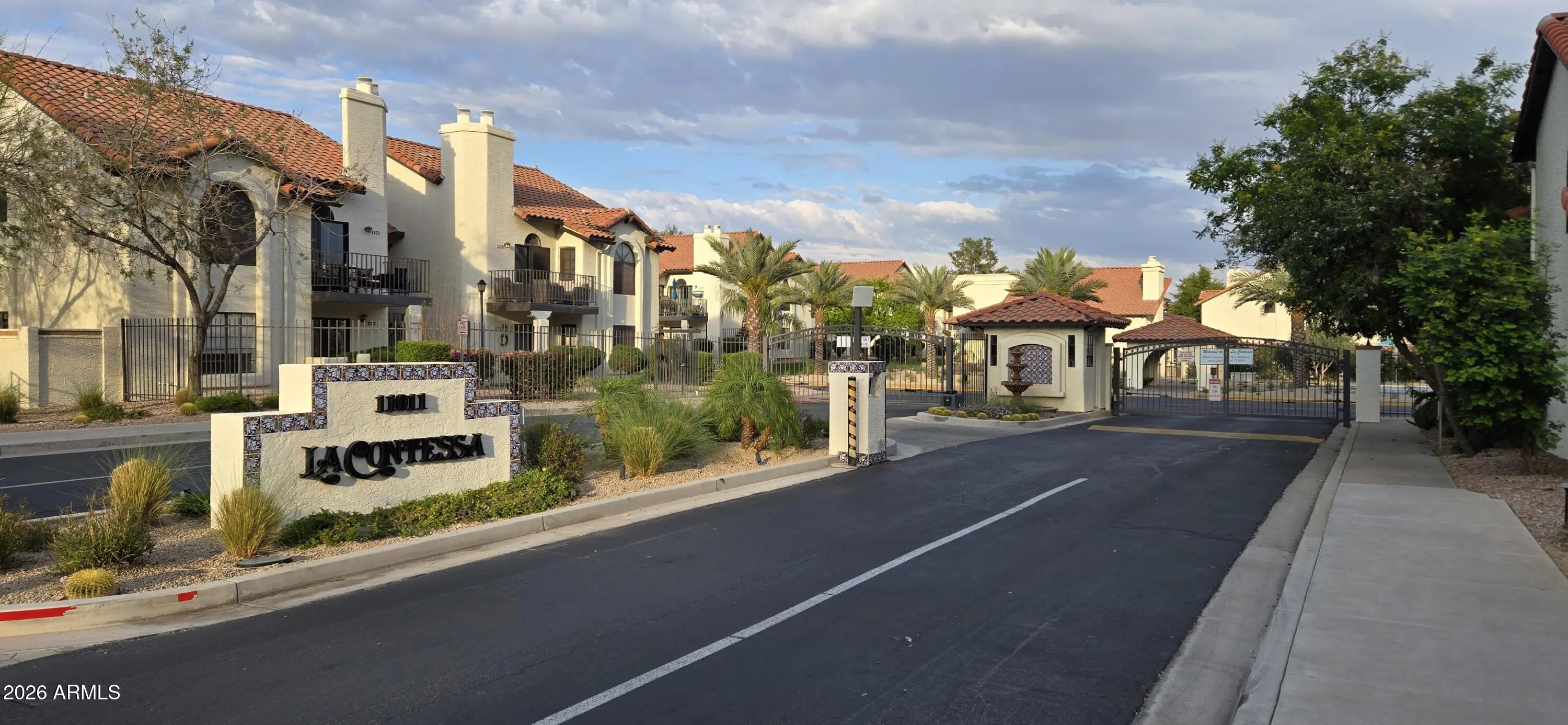 Rare Opportunity - Gated La Contessa. Single Level Townhome, 2 Beds/2 Baths, 1182 SF, Open Floor Plan, Special Warm Colors, Designer Touches, Wood Floors, Vaulted Ceiling, Cozy Fireplace, Plantation Shutters, Ceiling Fans, Many Windows for Natural Lighting, Pot Shelves. Kitchen with Corian Counters & Eat-In Area. Refrigerator, Washer & Dryer Stays! Private Front Courtyard. Private Backyard, Covered Patio. Ideal Location in Back of the Community and Borders Scottsdale Public Trails. Furniture stays, except for artwork & masted bed metal mirror. Ideal for Full-Time Living or a Lock-and-Leave Lifestyle. Amenities of La Contessa: Heated Pool, Heated Spa, Clubhouse, Fitness Center, Racquetball Court, Lighted Pickleball/Tennis Court. Superb Location close to Shopping, Dining, HonorHealth Scottsdale Medical Center, Mayo Clinic, Mustang Library and easy 101Freeway access. This townhome offers low-maintenance living and is move-in ready!!!