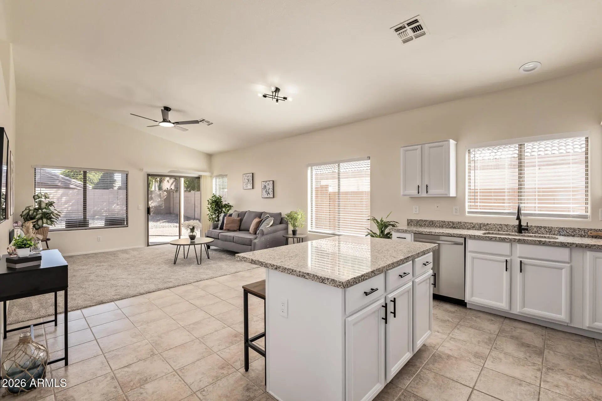 PRIME GILBERT LOCATION & TURN-KEY MODERN TOUCHES! This move-in ready Rancho Cimarron beauty has been recently updated with all-new interior paint and plush new carpet in all the right places. Standout features include stunning new granite countertops in the kitchen and both baths, and a brand-new Samsung stainless steel appliance package. Soaring vaulted ceilings complemented by new ceiling fans, and abundant natural light highlight the open layout. Complete with low maintenance front and backyards and a functional 2 car garage, this home is a rare gem. Enjoy Gilbert living near Discovery Park, SanTan Village, and the Downtown Heritage District. This pristine home is the perfect blend of location and value. Act quickly--homes in this condition at this price point do not stay on the market!