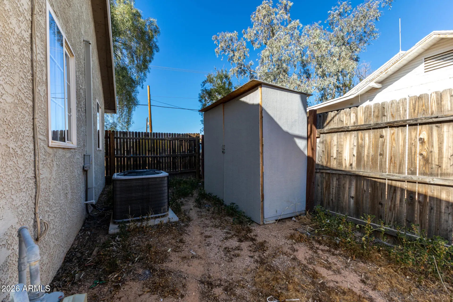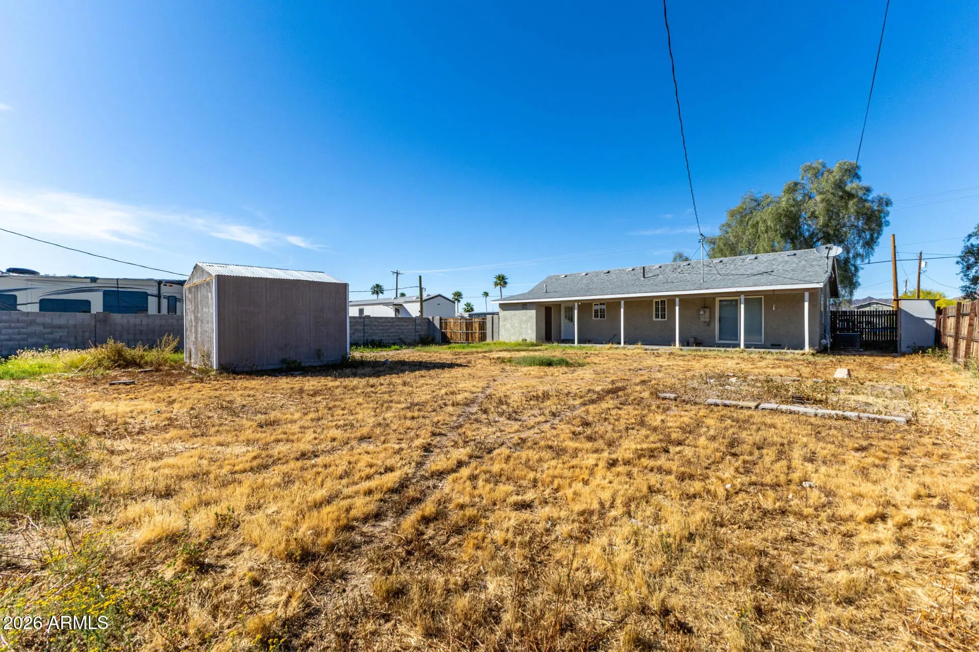 Welcome to this adorable 2-bedroom, 2-bath home set on a generously sized lot with no HOA. The property offers a cozy, inviting atmosphere and plenty of outdoor space to enjoy Arizona living. The backyard features a large storage shed for extra space, plus a separate outdoor laundry room with a secure locking door for added convenience. Whether you're looking for your first home, downsizing, or simply wanting room to spread out, this property offers comfort, charm, and endless possibilities.