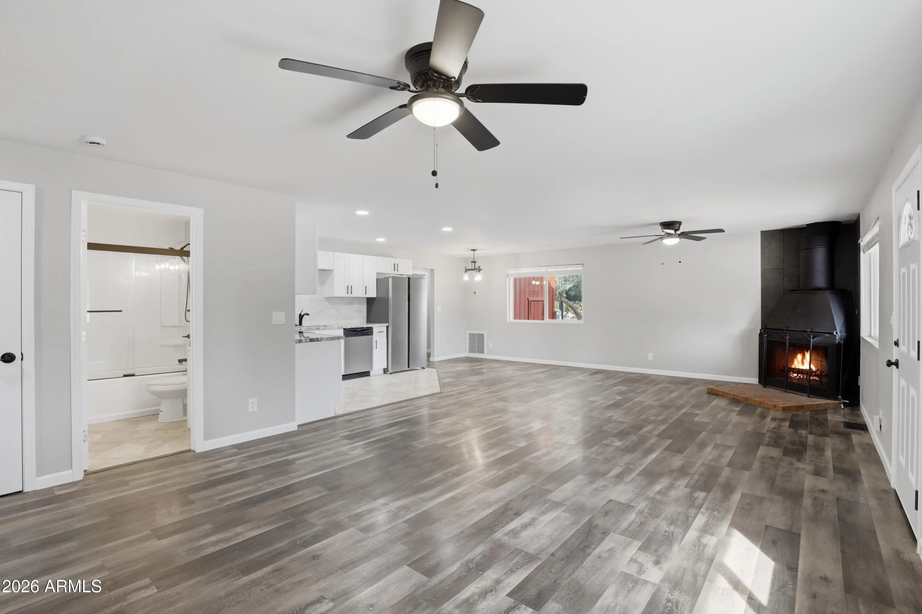 Welcome to this beautifully renovated 4-bedroom, 2-bath home in the scenic mountain town of Payson. This move-in-ready property has been thoughtfully upgraded with a brand-new roof, new windows, fresh interior and exterior paint, and modern finishes throughout. The cozy fireplace with stylish tile creates a warm focal point, while the updated kitchen features new cabinets and appliances for easy everyday living. Both bathrooms have been fully refreshed with new vanities, mirrors, and sliding glass doors. Additional upgrades include USB outlets, a new electrical box with full house rewiring, new skirting, a newly built back patio perfect for relaxing outdoors, and a side wood fence for added privacy. A wonderful opportunity for a full-time home, mountain getaway, or investment property.