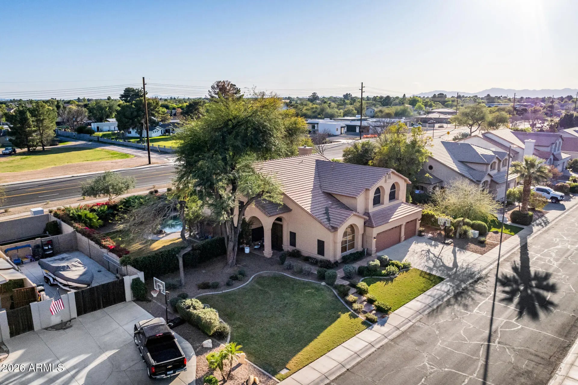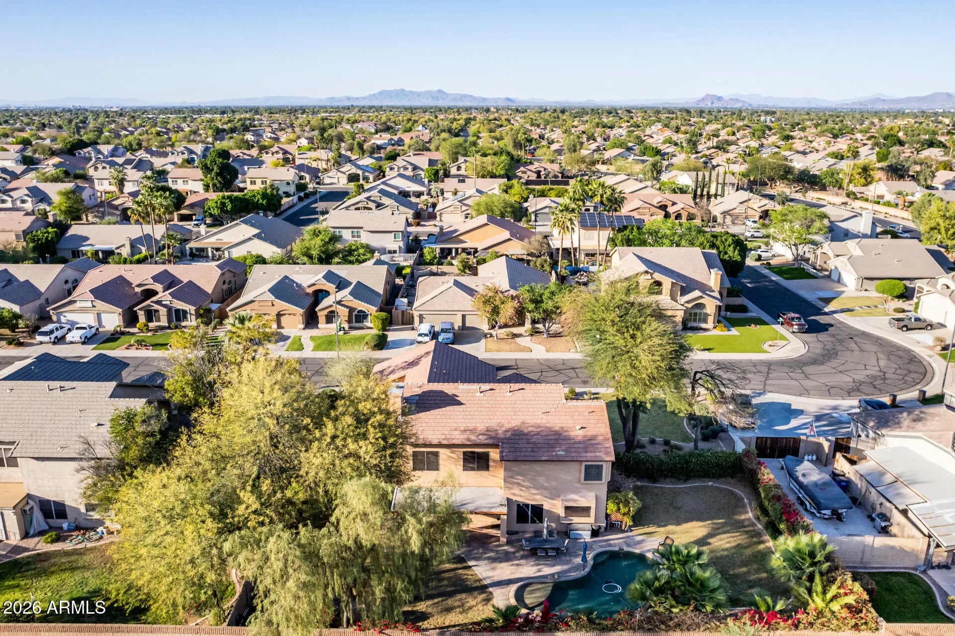 Welcome home to space, a large lot, and a backyard you may never want to leave. This beautiful 5-bedroom, 3 full bathroom home in Gilbert offers the perfect blend of comfort and room to grow. The downstairs bedroom is perfect for guests or a next gen space. This spacious and flexible floor plan, make it easy to gather, while still offering quiet corners to relax and unwind. Step outside and you'll discover what truly sets this home apart: a large lot with an oasis-like backyard designed for both entertaining and everyday enjoyment. If you've been looking for space, warmth, and a home in a prime Gilbert location, this is it!