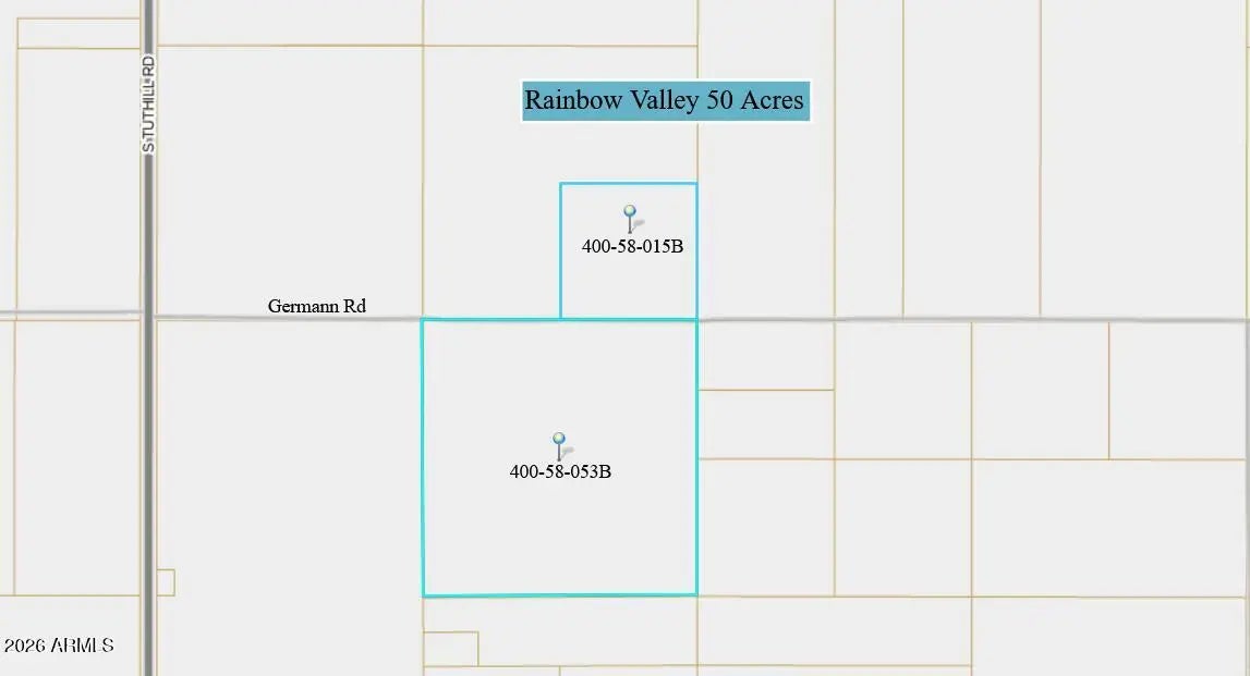 Own 50 acres in a prime area of Rainbow Valley - Buckeye. Excellent opportunity to own Arizona land in a growing rural area. Flat, usable parcel surrounded by agricultural land and open desert. Perfect for land investors, agricultural use, or long-term hold. This listing is for 2 parcels - 400-58-015B and 400-58-053B
