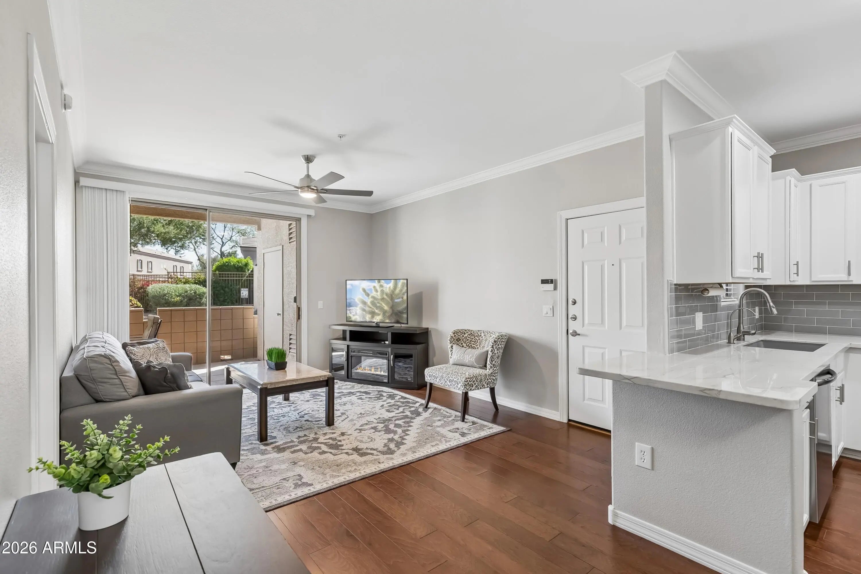 Highly desirable LOCK & LEAVE ground floor PREMIUM Greenbelt View Condominium with 1-CAR Covered Carport in the exclusive Tatum Ranch Community within walking distance to many NEARBY amenities and the Tatum Ranch Golf Club, Open Floorplan with 1 Bed and 1 Bath, Laundry with lots of Cabinetry Storage, Kitchen with Breakfast Bar, Quartz, Tile Backsplash, GAS Stove, Stainless Appliances with French Door Refrigerator, Great Room, Oversized View Windows, HardWood Flooring, Premium Upgraded Bath, Recessed LED Lighting, Nickel Hardware & Fixtures, Laundry with Extra Storage, Washer & Dryer Included & So much more! Enjoy Resort Style Living with Private Covered Patio with Greenbelt Community Views featuring Heated Pool & SPA, Business & Fitness Centers, & Close to Everything Exciting - MUST SEE!