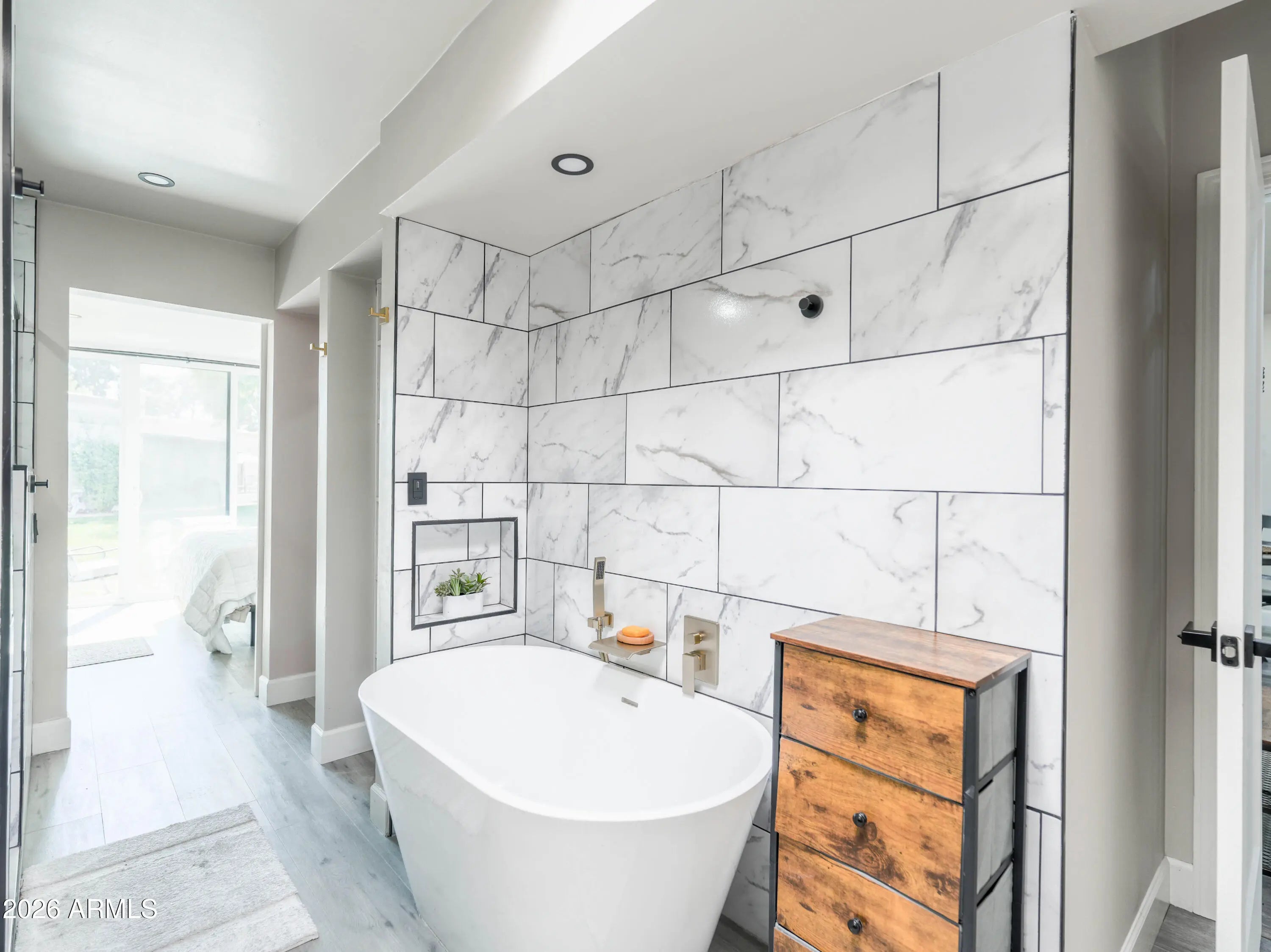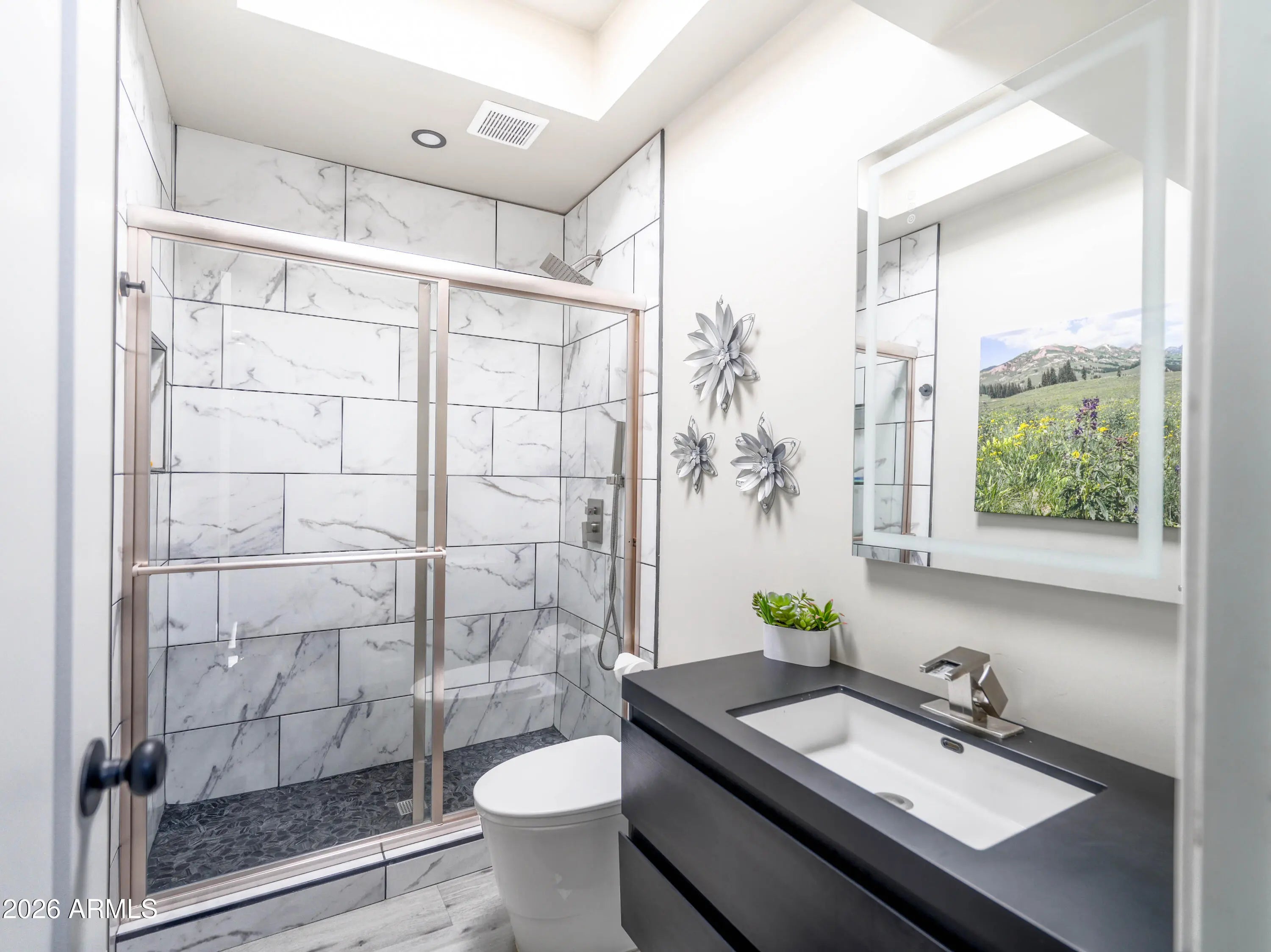 This beautifully renovated 2-bedroom, 2-bath townhouse in Scottsdale blends modern finishes with effortless comfort. The bright, open layout features fresh updates throughout, including quartz countertops, white shaker-style cabinets, and stylish tile showers. The kitchen's clean, contemporary design flows seamlessly into the living space, creating an inviting atmosphere for everyday living or entertaining. The primary suite offers a spa-like retreat with a standalone soaking tub, elegant tilework, and updated fixtures. A second full bath mirrors the same modern aesthetic. With thoughtful upgrades in every room, this home delivers turnkey convenience in a highly desirable Scottsdale location.