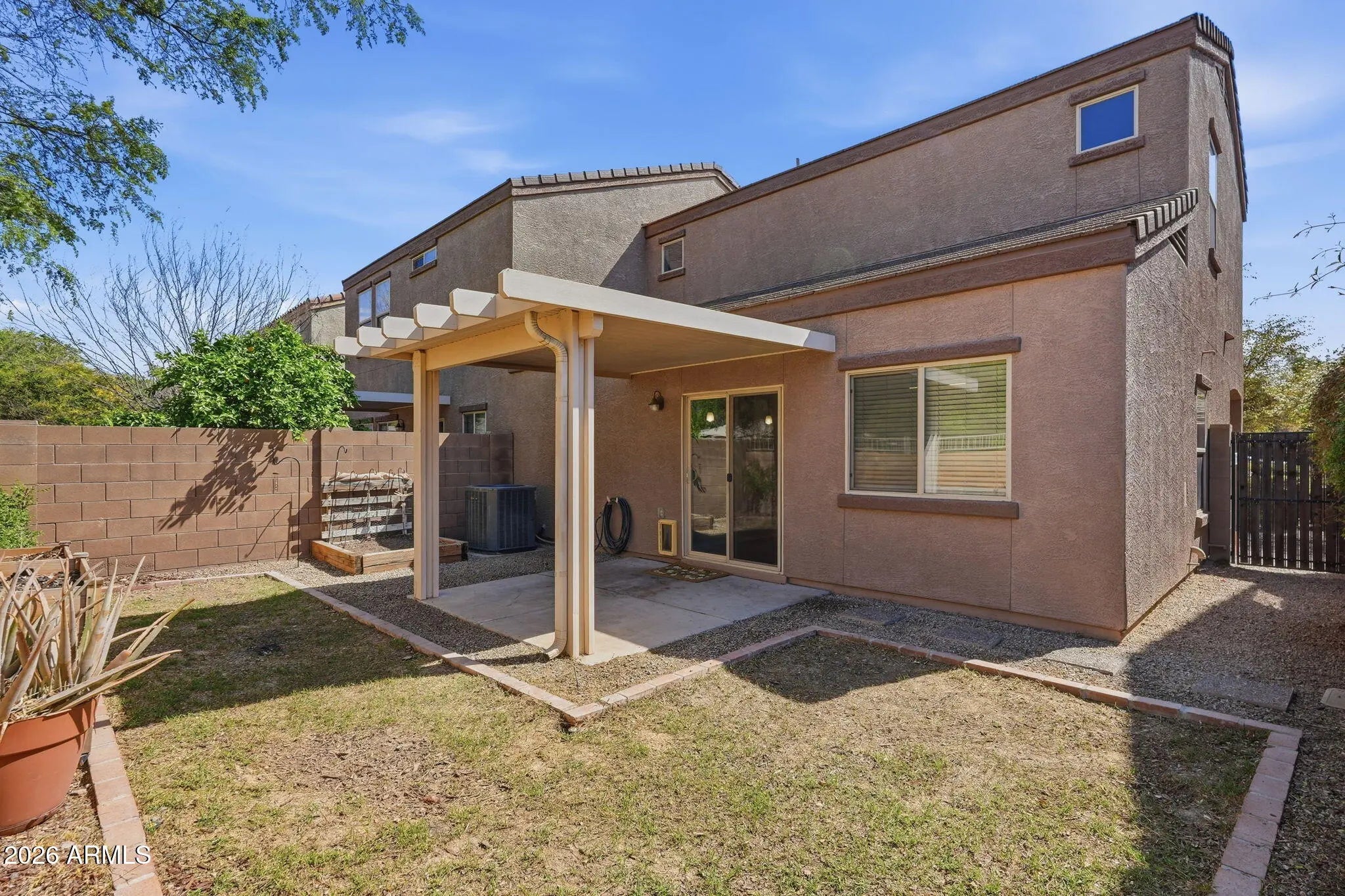 New paint, new carpet, and squeaky clean! The sellers put a lot of work into getting this home turnkey ready for you to enjoy! In the coveted, quiet, gated community, Sweetwater Heights. Private backyard, shade from neighboring trees and alumawood pergola, dedicated real grass area, with no house behind. All tile downstairs. Nice brown cabinets, granite counters, and sleek black appliances in the kitchen. Ceiling fans throughout to stay cool. Two car garage with overhead storage rack. Washer and dryer included! Welcome to Peoria - this area is booming with enterprise!