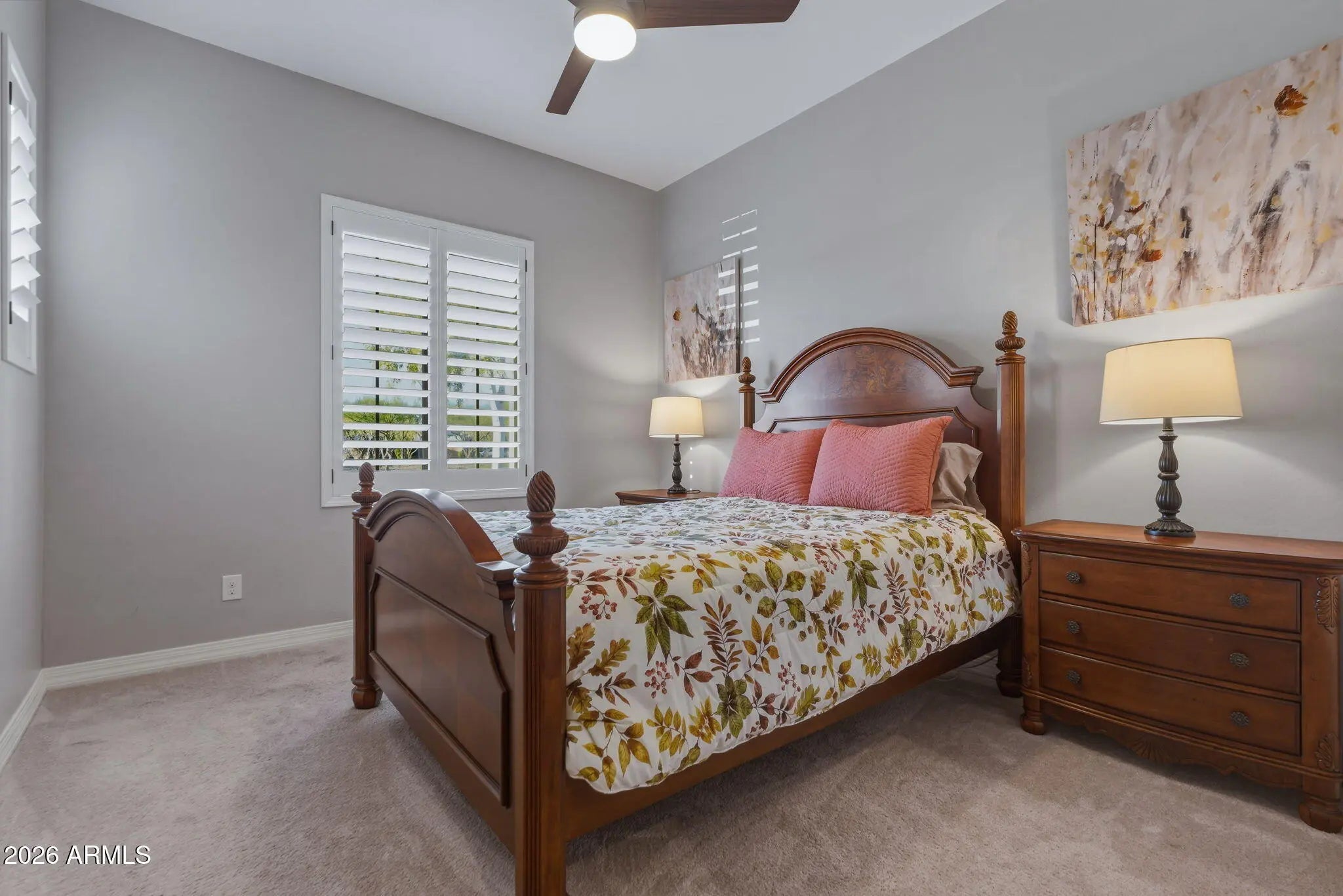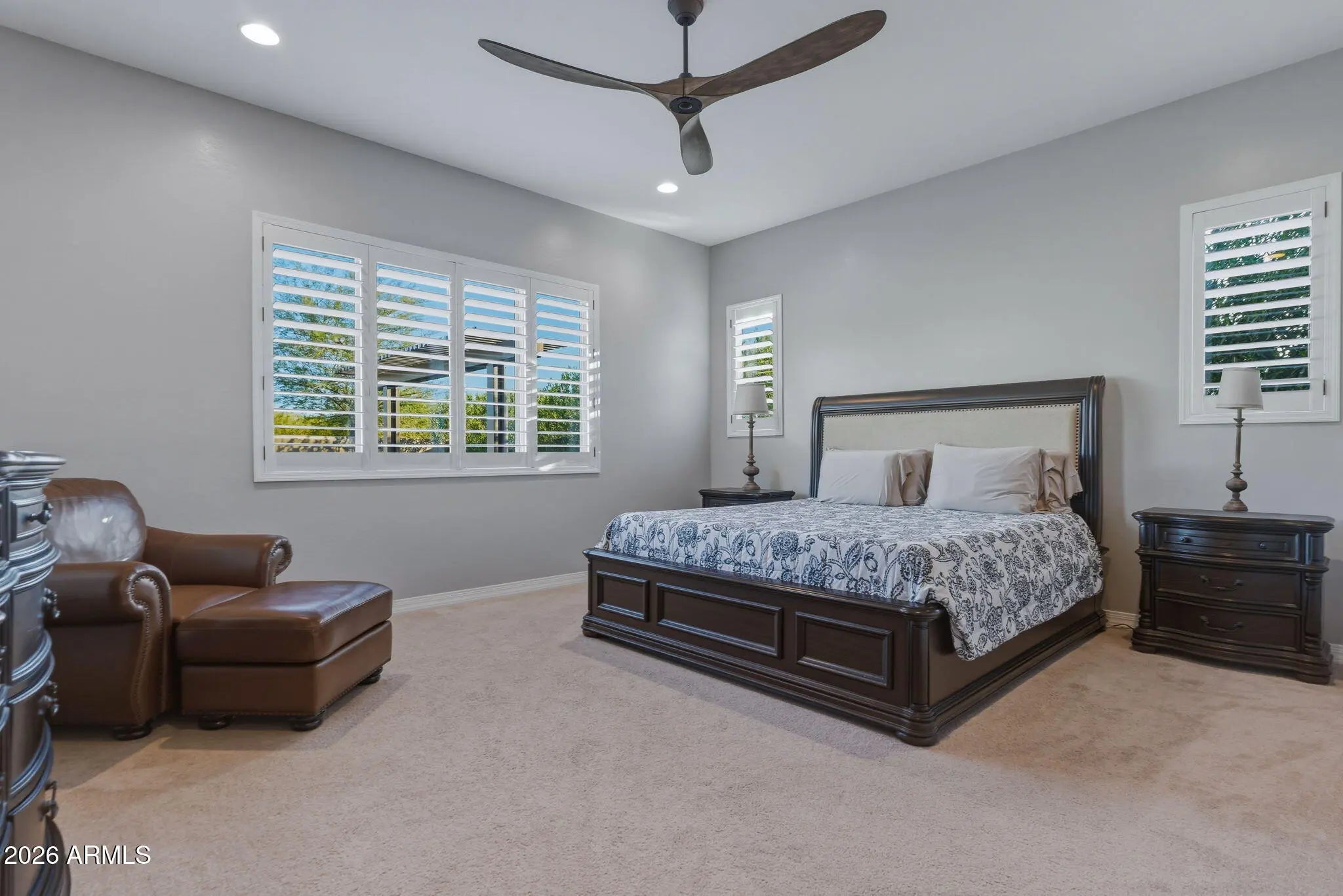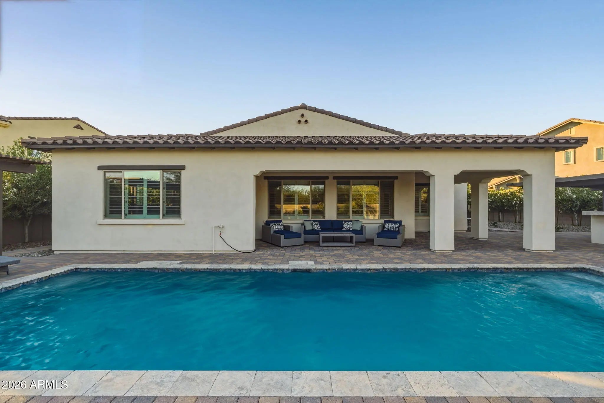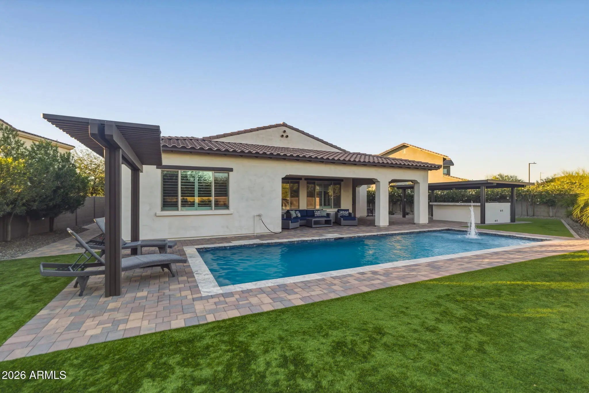 Discover exceptional desert living in this beautifully upgraded semi-custom home built by Cachet Homes, ideally positioned on a premium oversized lot in one of the community's most desirable and established areas. Located in the quieter, original phase of the neighborhood, facing a small community park and backing to open green space, this home offers added privacy and serenity while remaining close to everything that makes this area so sought after. Designed with thoughtful corner-lot articulation, the home features over 100 additional square feet of living space and an open-concept layout that seamlessly connects the great room, dining area, and kitchen while maintaining distinct spaces for everyday living and entertaining. The customized chef's kitchen is truly the heart of the home, featuring stacked cabinetry for extra storage, a 36-inch gas range, double ovens, a drawer microwave, and premium appliances, including an upgraded Sub-Zero refrigerator and Bosch dishwasher. Double islands maximizes both workspace and entertaining options, complemented by quartz and granite countertops and soft-close cabinetry throughout the home. Luxury vinyl plank flooring runs through the main living areas, with plush carpet in the bedrooms and elegant tile in the primary bath. Custom wood shutters add timeless style throughout the home, while powered blackout shades in the primary bedroom create the perfect retreat. The well-designed split floor plan offers four bedrooms and three and a half baths, providing flexibility for a variety of living arrangements. The private primary suite is separated from the rest of the home, while a secondary guest suite includes its own ensuite bath. An additional wing hosts two guest bedrooms and a full bath, plus a convenient powder room for visitors. Functionality continues with an oversized laundry room complete with extensive cabinetry, generous counter space, and a large granite sink, with room for a secondary refrigerator or additional storage. Step outside to a true backyard oasis designed for Arizona living. The expansive yard features custom pavers and turf thoughtfully arranged to maximize usability and comfort. A large, covered patio and adjacent ramada provide shaded gathering areas, while the impressive 38-by-13-foot pool features a spacious baja shelf and built-in water feature for resort-style relaxation. The outdoor kitchen is fully equipped with a built-in gas grill connected to a mainline, prep sink, under-counter refrigerator, and beautiful travertine countertops with bar seating--perfect for entertaining year-round. A custom-designed Tuff Shed blends seamlessly with the home while providing valuable additional storage. Additional upgrades add convenience and efficiency, including a 240-volt outlet in the garage ready for an EV fast charger, a fully owned oversized solar system that helps offset annual APS energy costs, and a whole-home water softener system with reverse osmosis at the kitchen sink. Combining luxury finishes, thoughtful design, and an unbeatable location in one of North Phoenix's fastest-growing areas, this exceptional home offers the perfect blend of comfort, style, and convenience. Residents enjoy access to outstanding community amenities, including scenic parks, a dog park, clubhouse, pickleball and basketball courts, and a resort-style pool complete with cabanas and Wi-Fi. Even more exciting, the community continues to grow with new restaurants currently under construction, additional shopping, and a future grocery store planned for upcoming phases. The location is truly unbeatable, with quick access to major freeways including Interstate 17, Loop 101, and Loop 303, placing you just minutes from the premier dining and shopping at Desert Ridge Marketplace, the expanding Taiwan Semiconductor Manufacturing Company campus, and everything the valley has to offer.