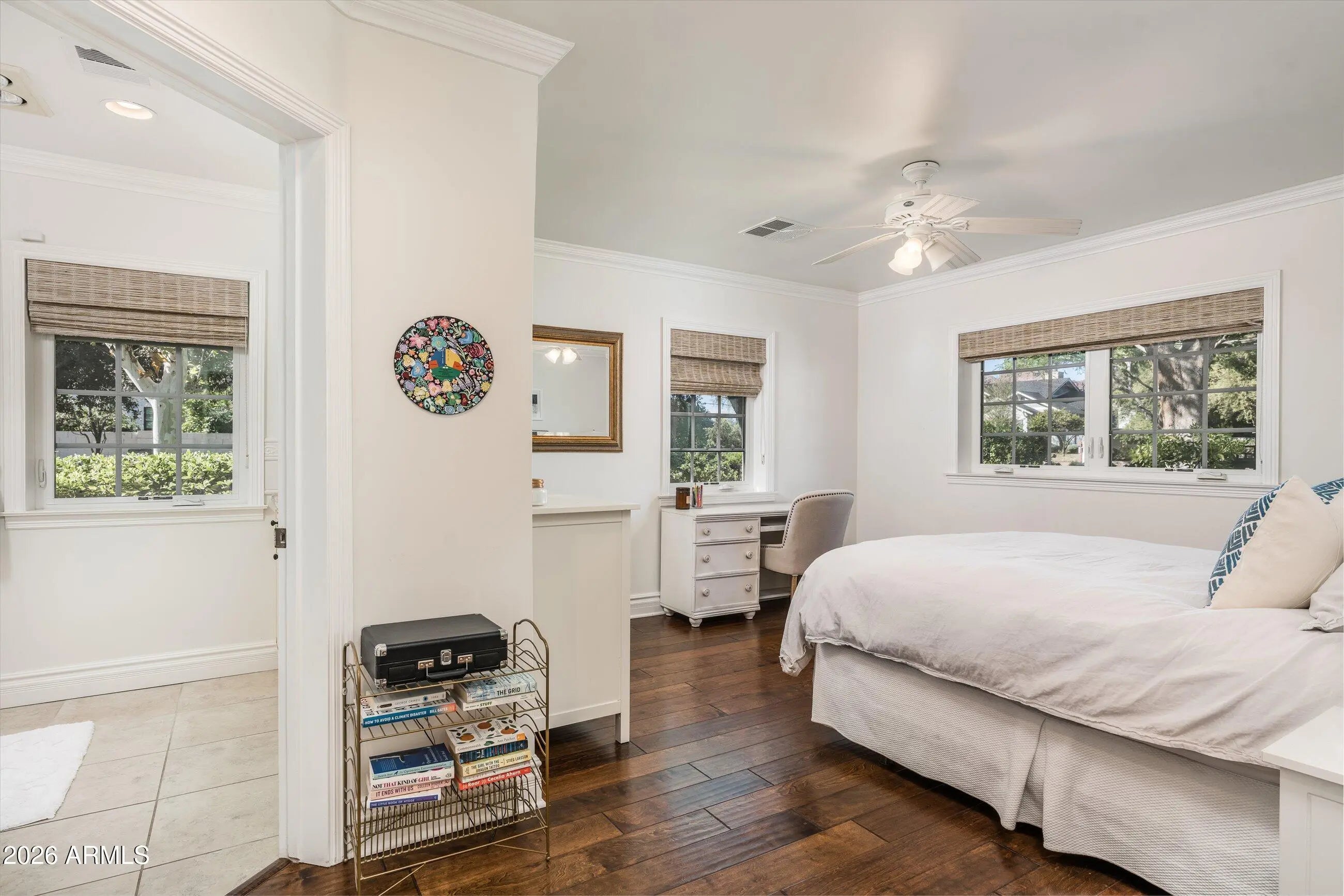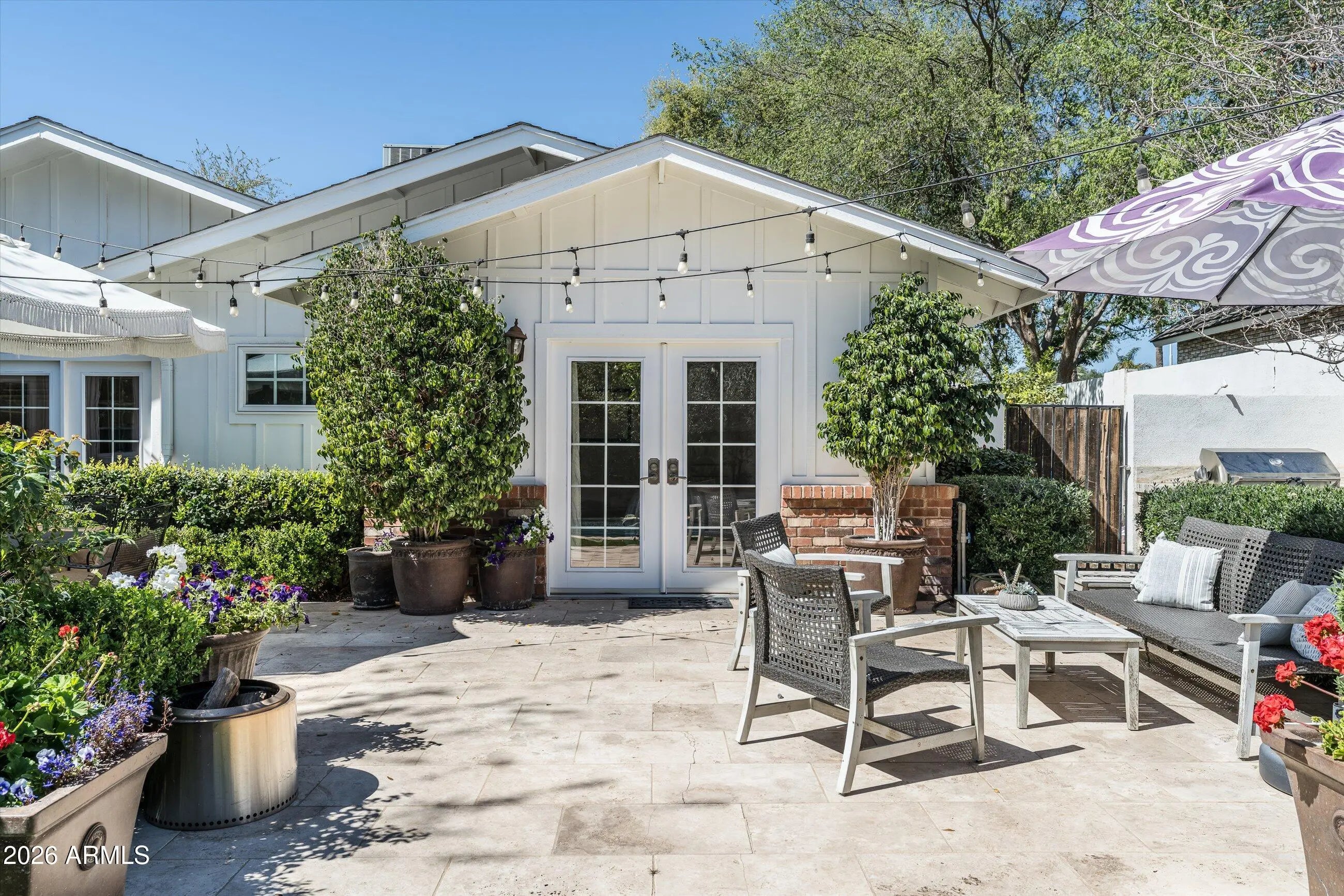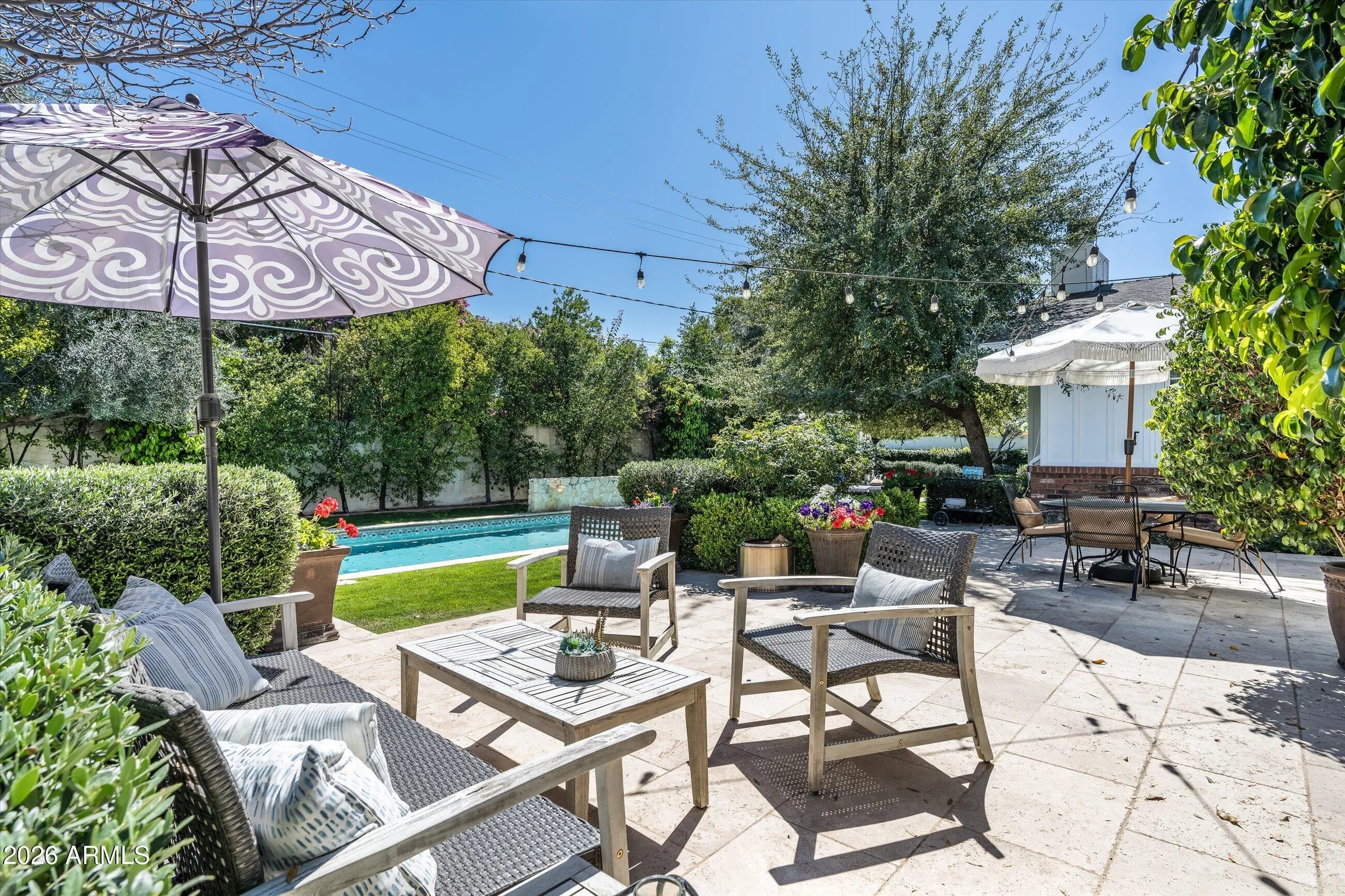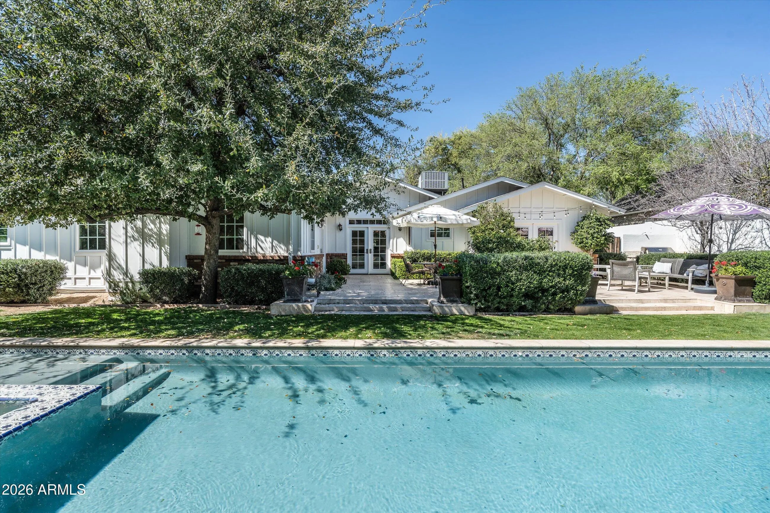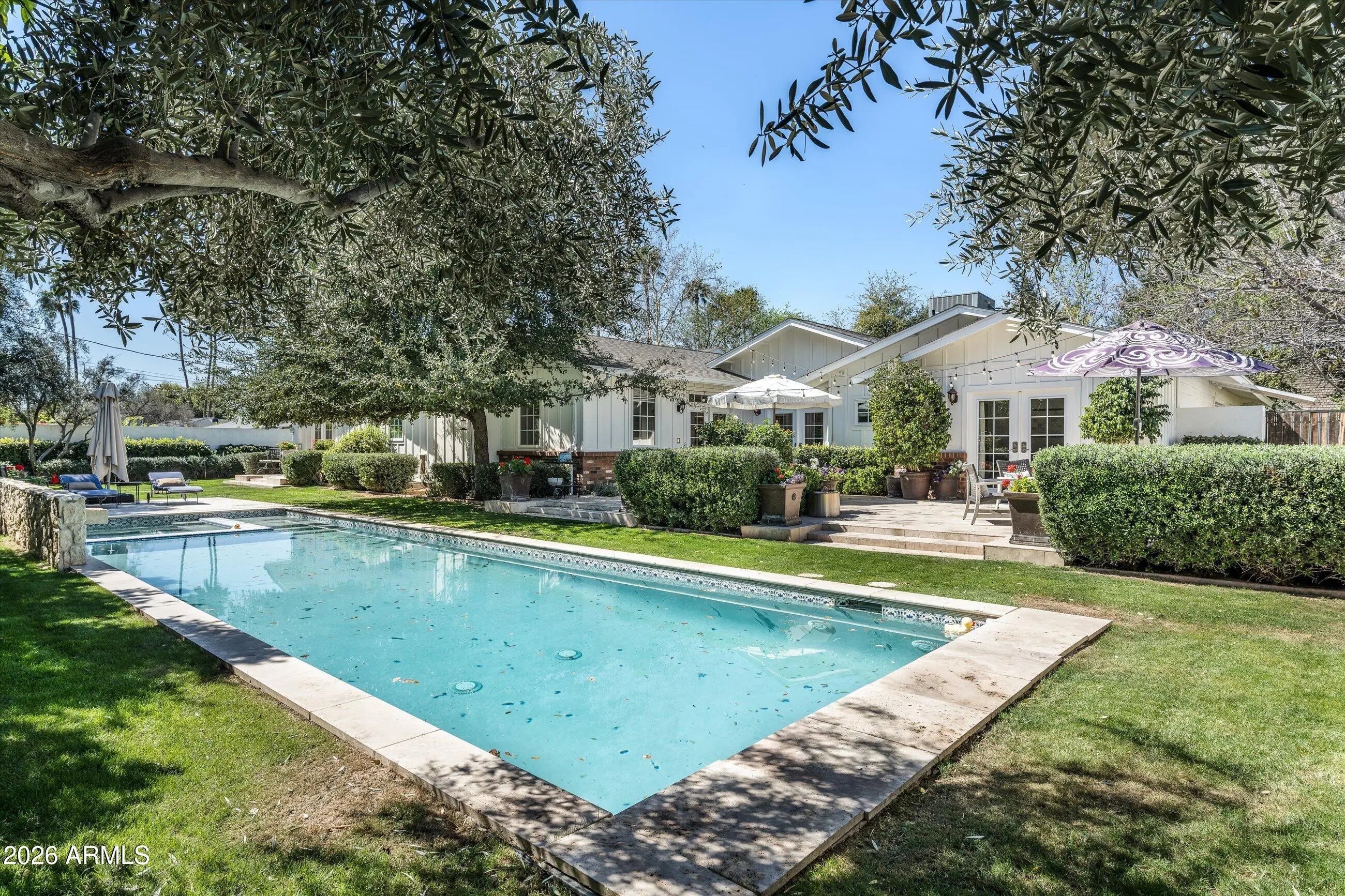 Located in the heart of Arcadia Proper, this beautiful 3,586 sq ft residence blends timeless design with modern comfort. The thoughtfully designed split floor plan features 4 bedrooms plus a dedicated office or flex room (optional 5th bedroom) and 3.5 baths, all complemented by soaring 10-foot ceilings and rich wood flooring throughout. The open great room floor plan is ideal for both everyday living and entertaining, filled with abundant natural light. The chef's kitchen is appointed with Wolf and Sub-Zero appliances, a walk-in pantry, and seamless flow into the main living areas. A spacious mudroom adds everyday functionality and organization. The professionally designed backyard by Berghoff Landscaping offers a private retreat with lush landscaping, a classic lap pool spa, and built-in BBQ - perfect for embracing Arizona's indoor-outdoor lifestyle. Inviting front and back patios provide additional outdoor living spaces. Situated in one of Arcadia's most sought-after neighborhoods, this home offers the character, quality, and lifestyle that define Arcadia living.