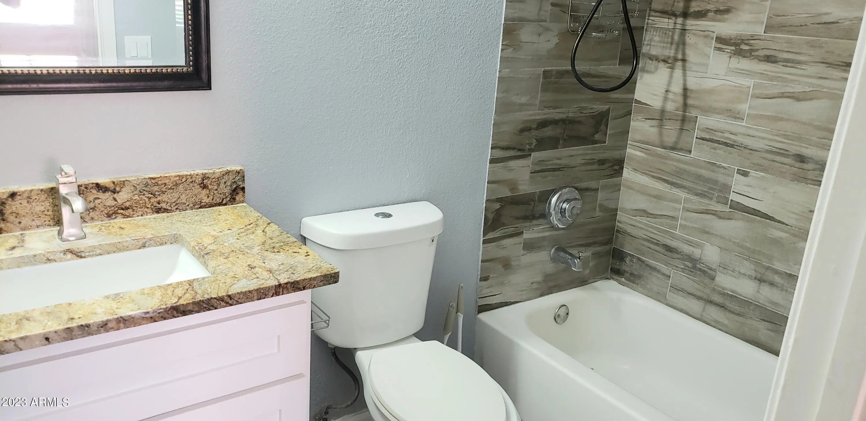 Welcome to the Community of Shadow Mountain Villas, surrounded by breathtaking Mountain Views. Beautifully remodeled Condo with contemporary palette, gorgeous wood ''look'' tile floor throughout, ceiling fans, cozy brick fireplace, and window blinds. Granite kitchen counters, stainless steel appliances and white wood cabinets with hardware. 2 Upscale baths with designer tile, mirrors, lighting, and fixtures. Generous size bedrooms and ample closets. Enjoy the Community Pools & Spa. Close to I-10, Airport, Tempe, & more. Credit under 600 pays 1.5 times rent as security deposit. Pets on approval.