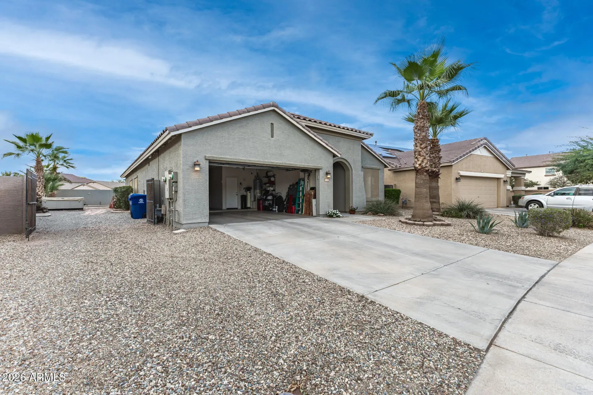 Introducing this energy-efficient 3-bedroom home, thoughtfully designed with comfort & style in mind! Featuring a 3-car garage w/ separate mini-split a/c, RV gate, & a low-maintenance front yard. Be greeted by the welcoming living room with wood flooring, neutral palette, & abundant natural light. Continue into the desirable great room, centered around a cozy fireplace, perfect for relaxing evenings. Lovely kitchen displays recessed lighting, tile backsplash, ample cabinets, stainless steel appliances including newer fridge & dishwasher, a pantry, granite counters, & a center island with a breakfast bar. Impeccable main bedroom with walk-in closet offers a private bathroom with two vessel sinks & soaking tub. Enjoy outdoor living in the large backyard, complete w/ a covered patio, gazebo, refreshing pebbletec pool & spa & above ground hot tub. Don't miss this amazing deal!
