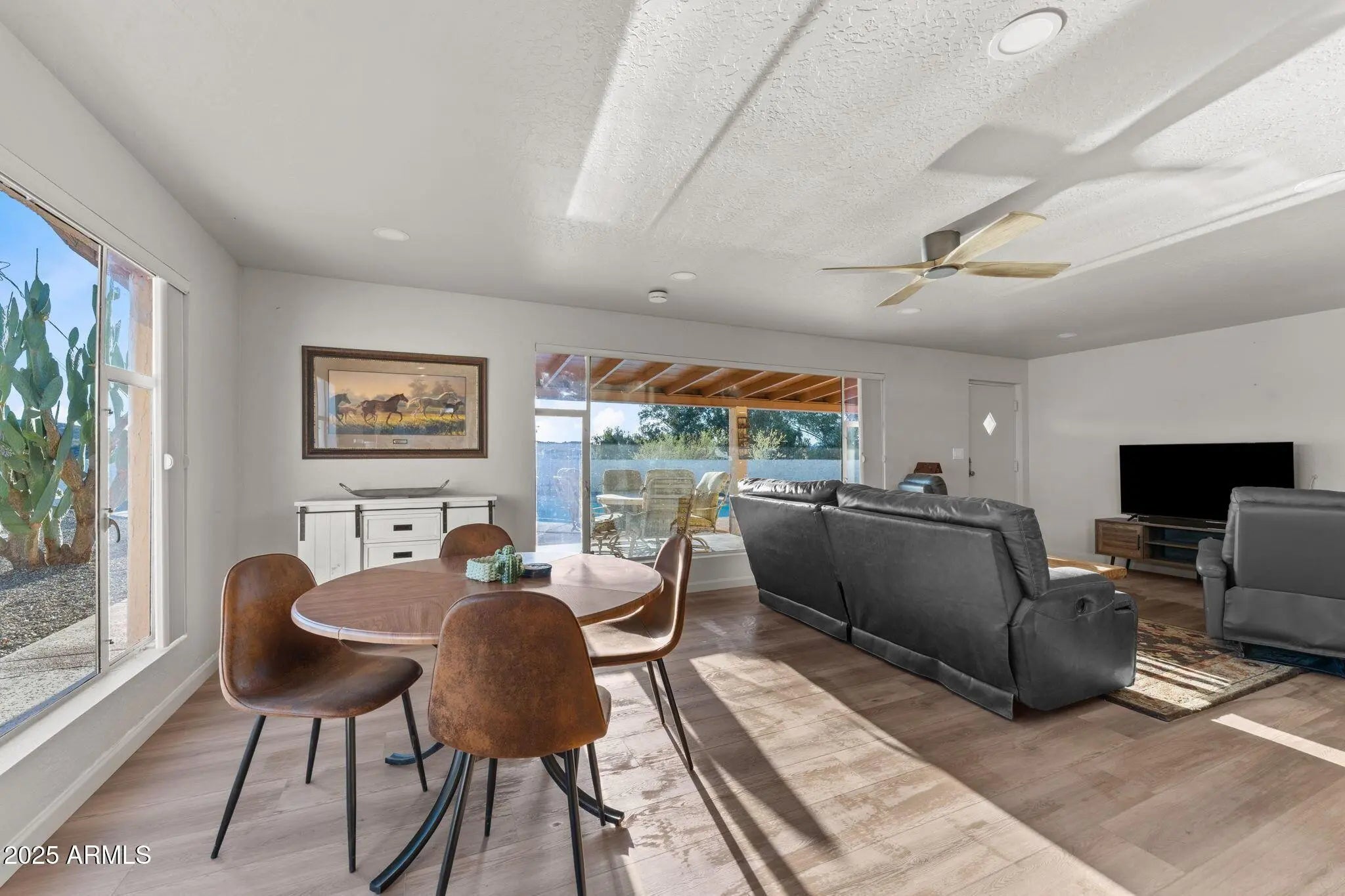 Toothbrush? Check. Suitcase? Check. Horses? Check. That's all you need. Step inside and you'll find a bright, fully furnished 2-bedroom, 1-bath home with a bonus room and a full kitchen that's ready to go. The flow is simple and functional -- living, dining, cooking, relaxing -- already set up so you can just move in and start living. Out back, the western lifestyle takes over: two stalls with room for up to 2 horses (additional fee) and a fully fenced pool area that's as ready for cannonballs as it is for quiet desert sunsets. Saddle up in the morning, swim away the afternoon, and wind down under star-filled skies. This rental isn't just a place to stay -- it's an Arizona experience, fully loaded and waiting for you.