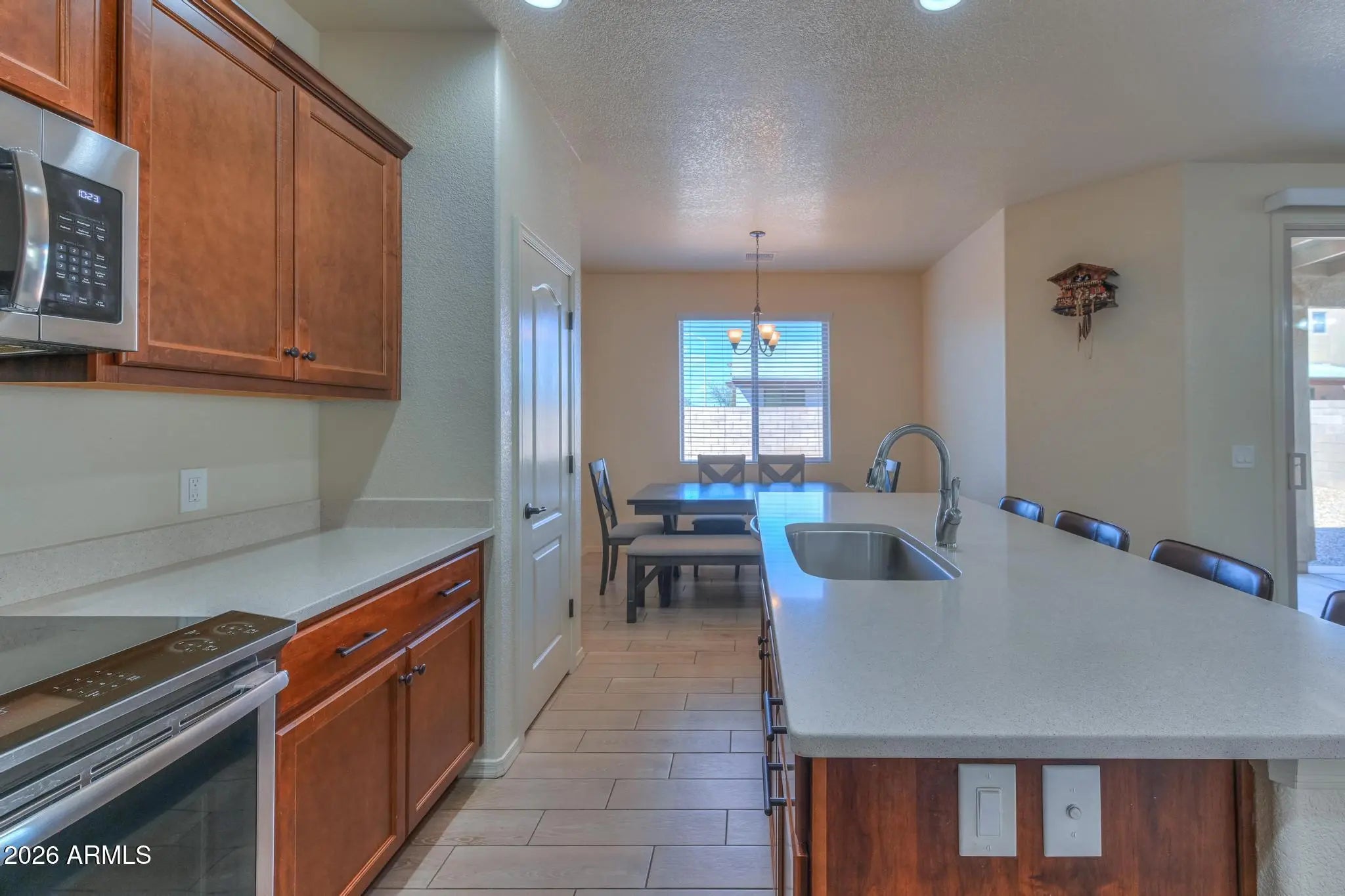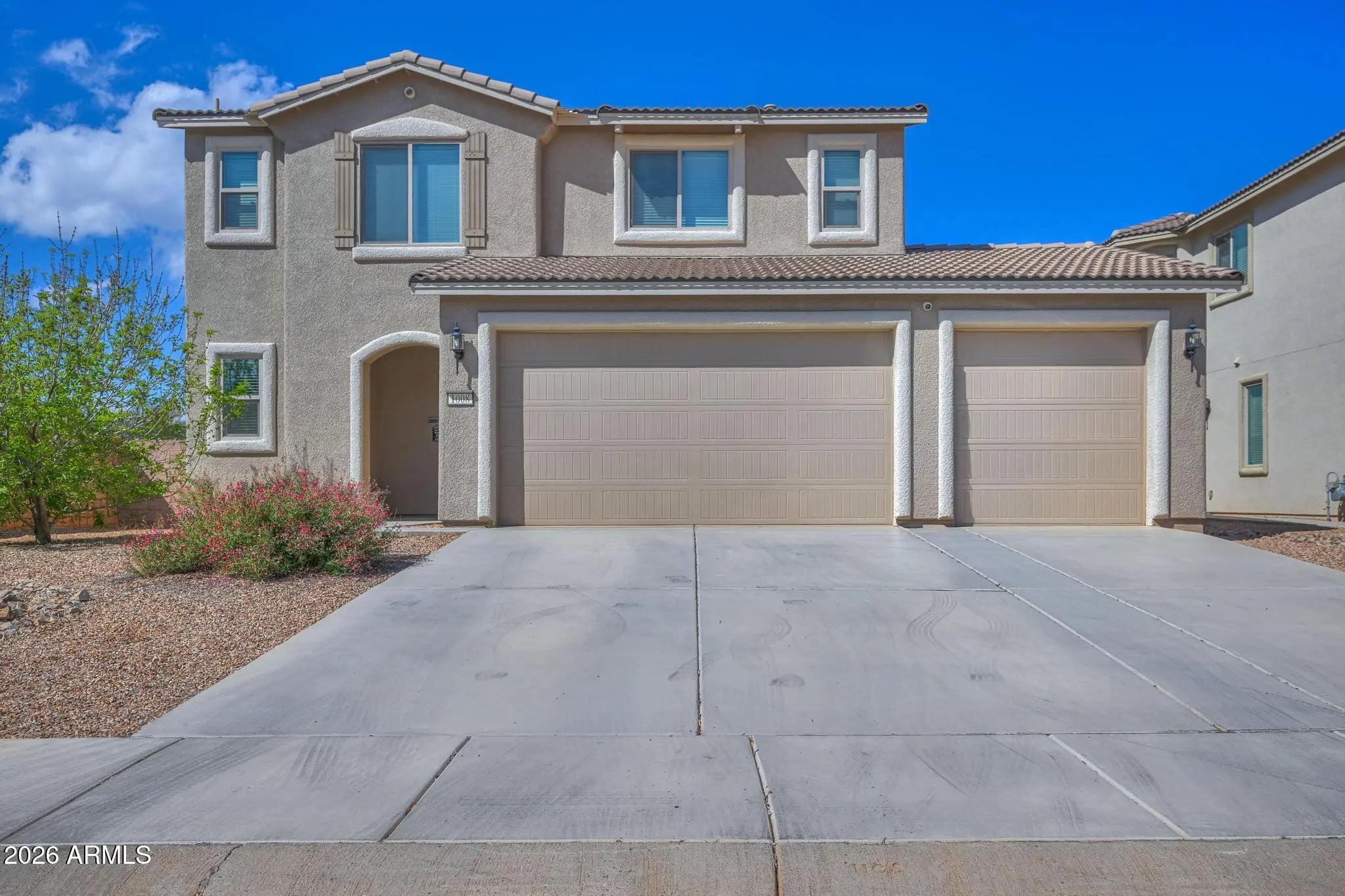 Beautiful 2-story R.L. Workman home built in 2019 offering 4BR/2.5BA and 2,401 sq. ft. of quality construction and modern style. This home features beautiful tile, plush carpet, and Energy Star Low-E windows for comfort/efficiency. The spacious primary suite includes ensuite bath w/dual granite vanity, separate tub and shower, water closet, and walk-in closet. The updated eat-in kitchen (2024) showcases gorgeous granite counters, rich wood cabinetry, stainless appliances, pantry, island, and breakfast bar. Enjoy a second living area or formal dining space plus three additional bedrooms and full bath upstairs. Includes upstairs washer/dryer, covered patio, block-fenced yard, water softener, 3-car garage, and wide driveway. Conveniently close to shopping, restaurants, Ft. Huachuca.