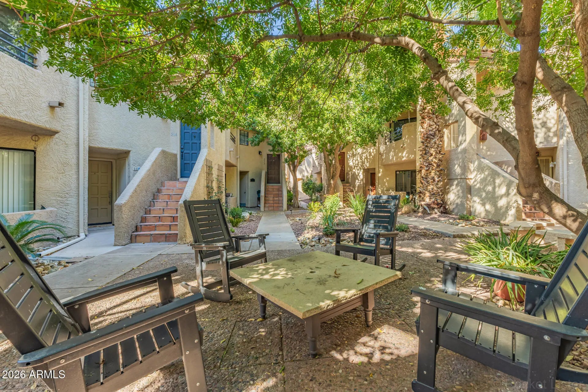 Experience elevated living in this beautifully maintained second-floor condo in the desirable Paradise Valley area. This spacious single-level floor plan offers 2 bedrooms and 2 bathrooms with vaulted ceilings that create a bright and open feel. The updated kitchen features granite countertops, painted cabinetry, and stainless-steel appliances. The inviting living room includes a fireplace and access to a private balcony. The spacious primary suite offers a walk-in closet, balcony access, and an ensuite bathroom with dual sinks and a walk-in shower. Move-in ready and ideally located just steps from the community pool--perfect for relaxing and enjoying Arizona living.