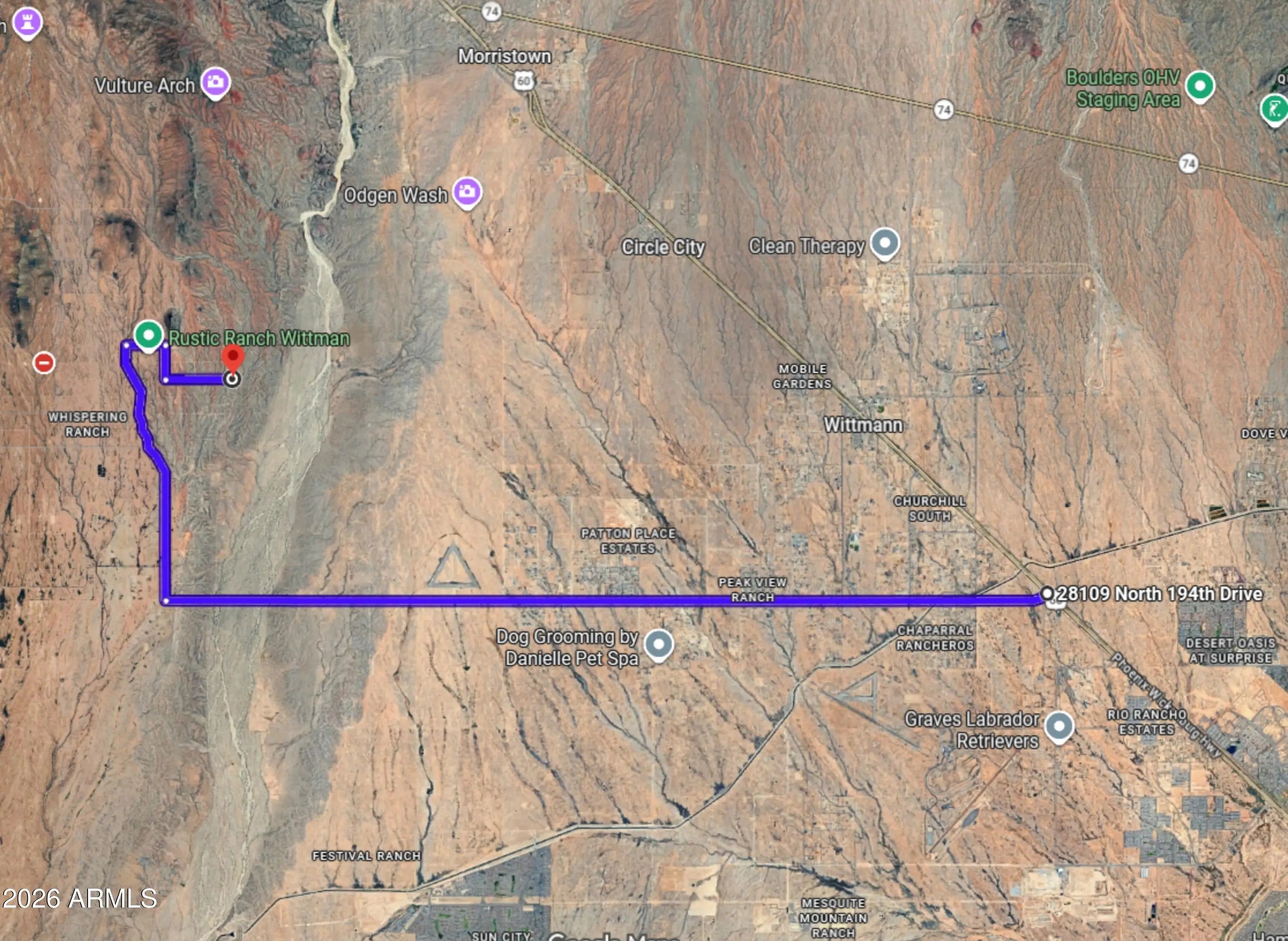 Builders and developers! Rare package of six abutting 20-acre parcels on the east side of Whispering Ranch. Located in an unincorporated area & optimally positioned just across the Hassayampa River from a significant privately held land area in Buckeye. Festival Ranch is just 7 miles south on Sun Valley Parkway. The south and west boundaries are on a section line, with the south boundary planned to be a 4 lane road, Dove Valley Parkway. A portion of the property is flood zone impacted, but most is not. Sellers will consider financing with the right offer. Secure your investment before values in the Northwest Valley rise any further.