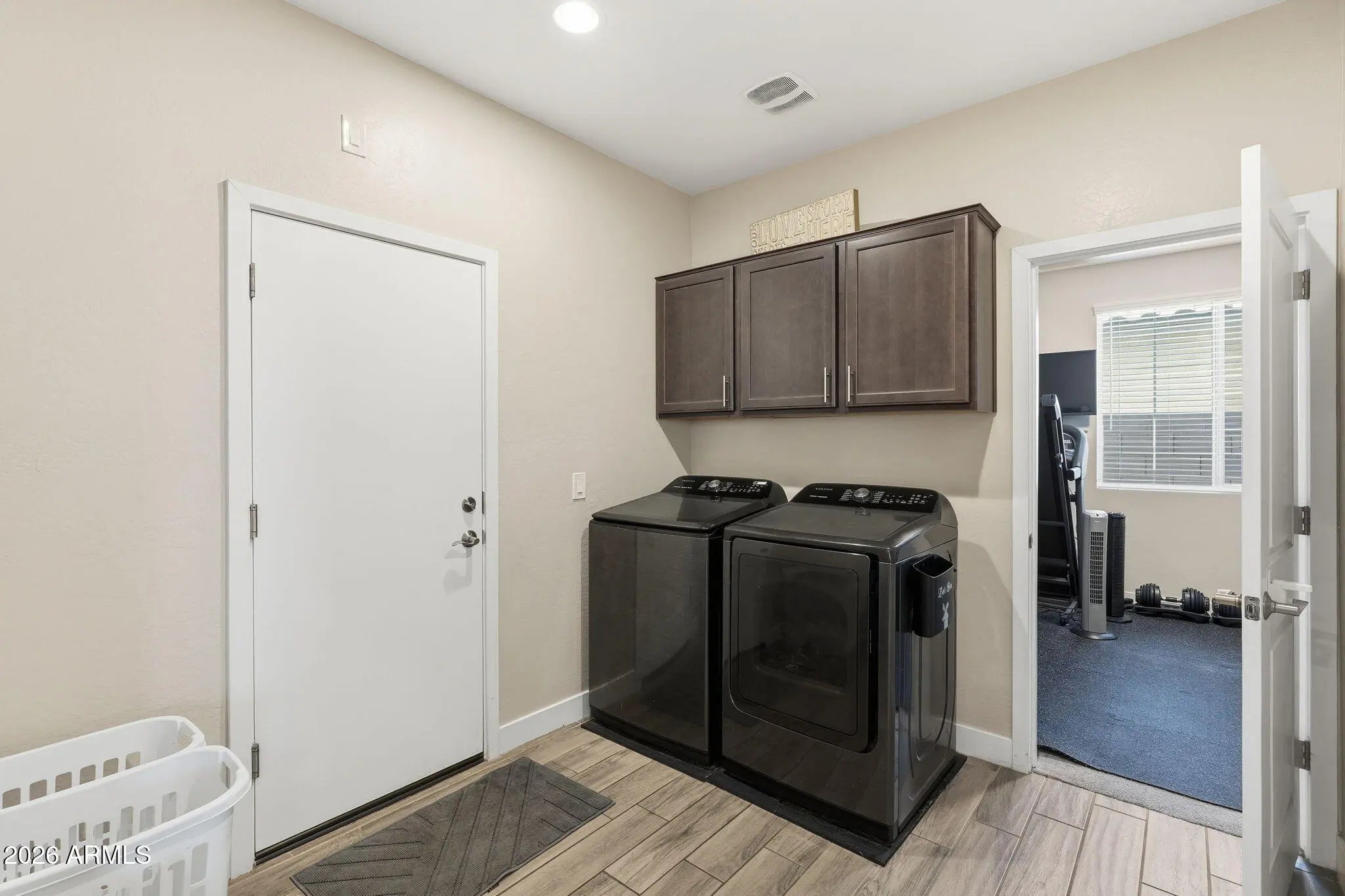 Welcome to Victoria Heights, a community minutes to Queen Creek Marketplace..This home offers upgraded wood plank flooring, quartz counters & stainless steel appliances. Large laundry room leads to a flex room. Full bathroom and bedroom located downstairs.Upstairs find a loft and 4 more bedrooms with 2 full baths.Primary bedroom is split from others and offers large walk-in shower & closet. All bedrooms are great sizes with one offering a walk-in closet as well.Storage closets throughout. Ceiling fans, faux wood blinds, additional insulation, tankless water heater, epoxy floors in garage, and more features to discover.Backyard offers extended paver patio, turf yard and dog run. Tall baseboards, two tone paint, alarm system, the features are too many to list!