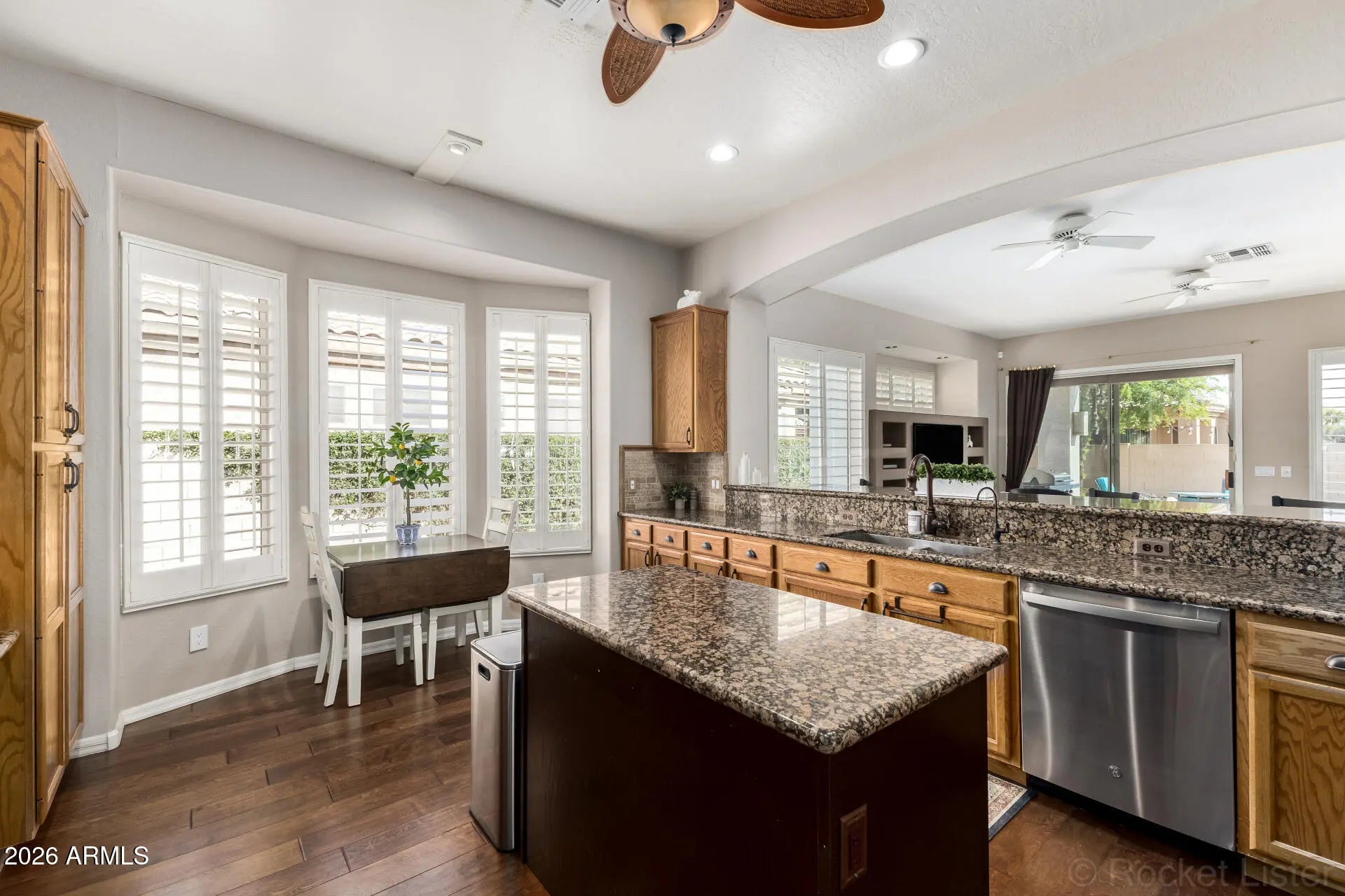 Tucked inside the gated community of La Vista, inside Carino Estates, this beautifully maintained Chandler home offers the perfect blend of comfort, privacy, and Arizona outdoor living. Major recent updates provide peace of mind, including a high-efficiency 18 SEER HVAC system (2022), tankless water heater (2024), variable-speed pool pump (2023), reverse osmosis system (2024), water softener (2021), new gas range (2023), and fresh exterior paint (2025). This thoughtfully designed 1,753 sq ft home features 2 bedrooms, 2.5 bathrooms, plus a versatile den that can easily function as a potential 3rd bedroom, home office or media room. The split floor plan includes two spacious bedrooms, each with its own private en-suite bath, and an extended 2 car garage offering add'l storage or workspace. Step inside to discover rich wood flooring, plantation shutters throughout, and an inviting open layout filled with natural light. The spacious kitchen is ideal for both everyday living and entertaining, featuring granite countertops, stainless steel appliances, abundant cabinetry, a center island, and breakfast bar seating that opens seamlessly to the living and dining areas. The primary suite offers a peaceful retreat with backyard views and direct patio access, along with a generous en-suite bath featuring dual sinks, a soaking tub, separate shower, and a large walk-in closet. The secondary bedroom also enjoys its own private bath, creating an ideal guest suite. Step outside to your private backyard oasis, complete with a sparkling pool, expansive paver patio, and covered patio area--perfect for relaxing evenings, entertaining friends, or enjoying Chandler's beautiful weather year-round. Located in the highly desirable gated community of Carino Estates, this home offers convenient access to shopping, dining, parks, and all that Chandler has to offer.