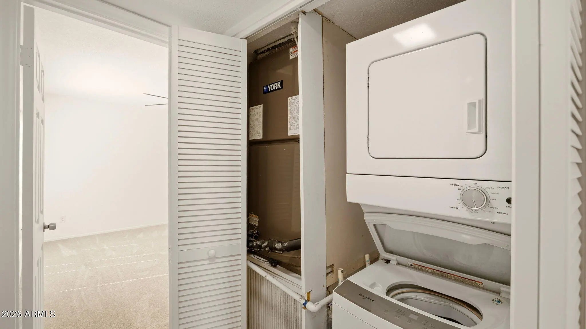 Stacked Washer/Dryer, Dryer, Refrigerator, Built-in Microwave, Dishwasher, Disposal, Electric Range