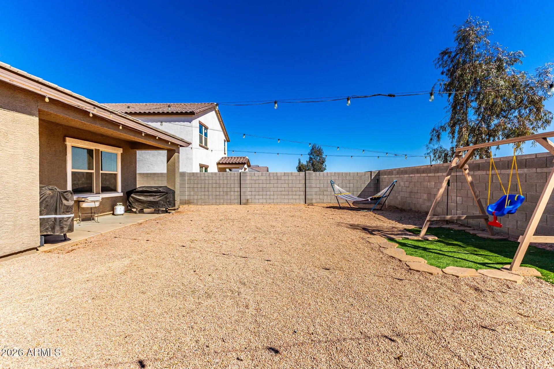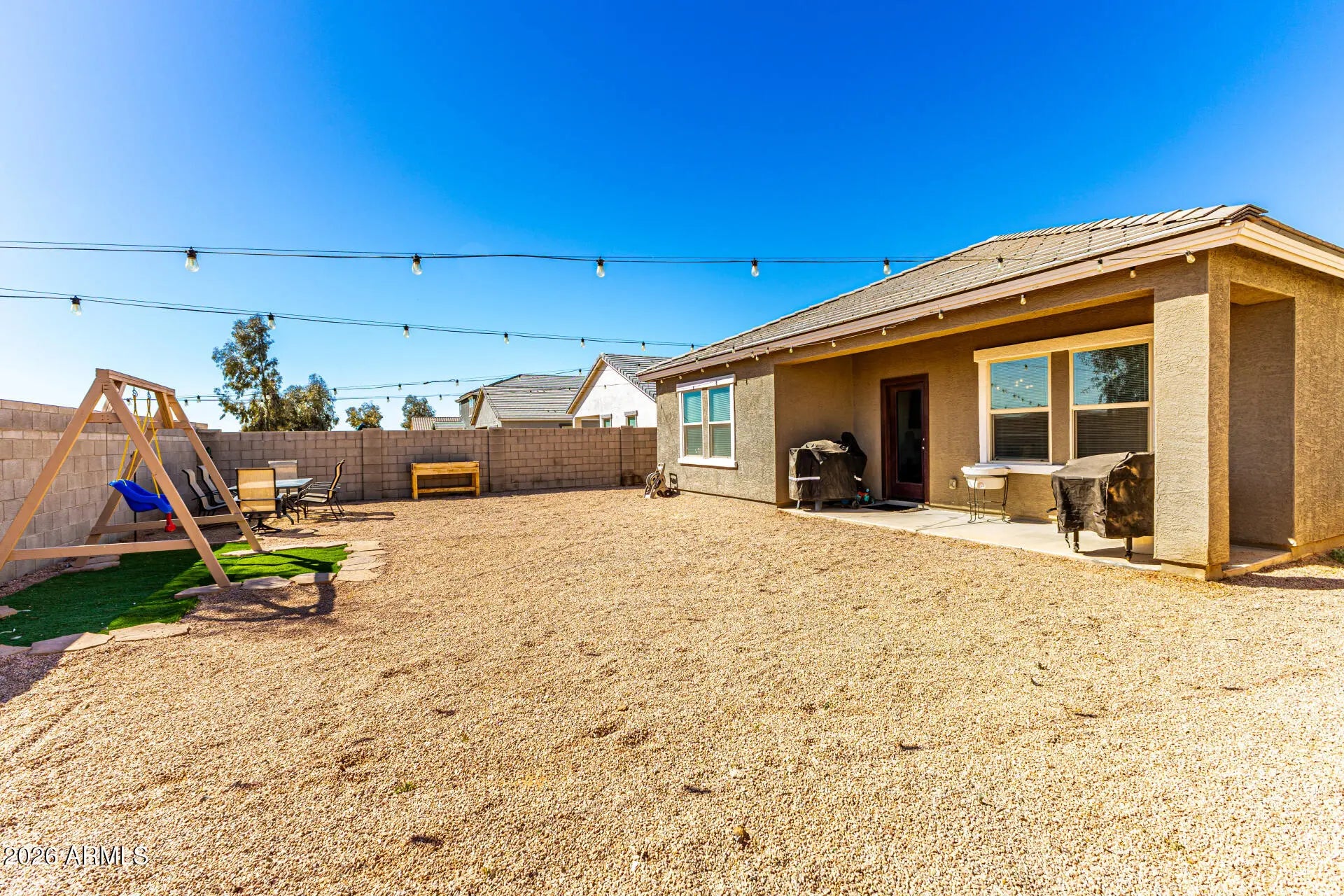 Borders Common Area, North/South Exposure, Sprinklers In Front, Gravel/Stone Front, Gravel/Stone Back, Synthetic Grass Back